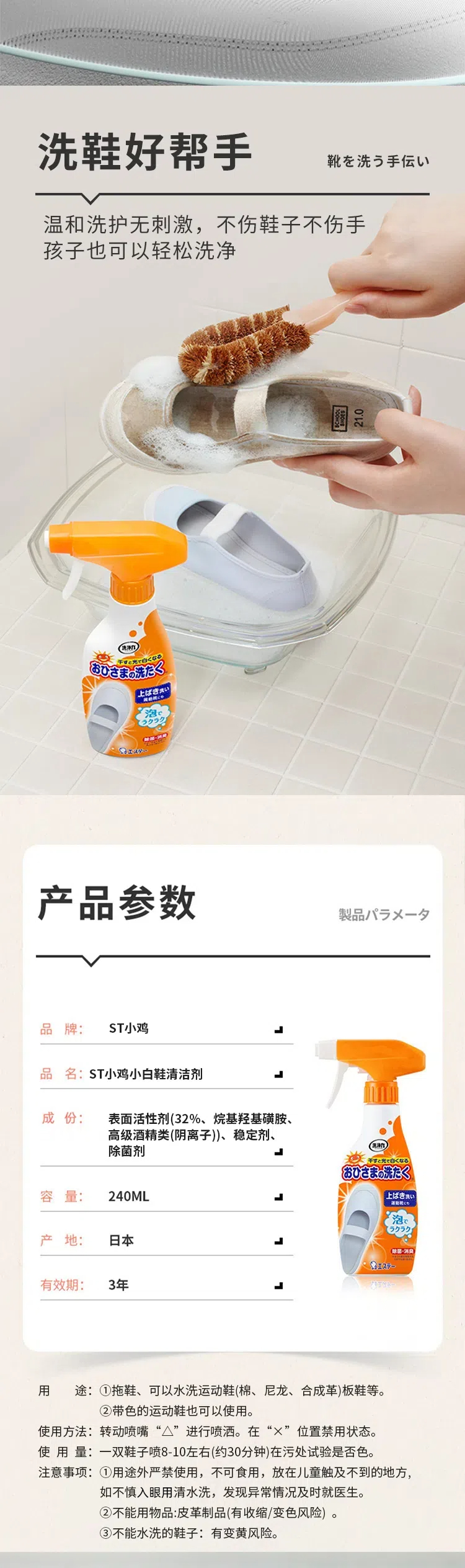 日本进口ST小鸡小白鞋清洁剂240ml