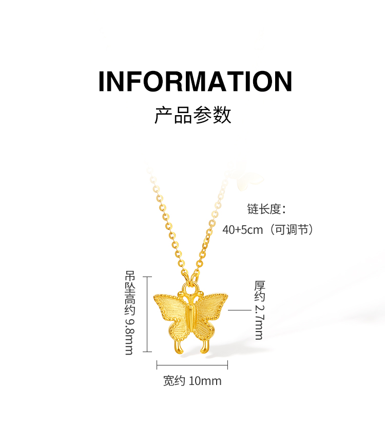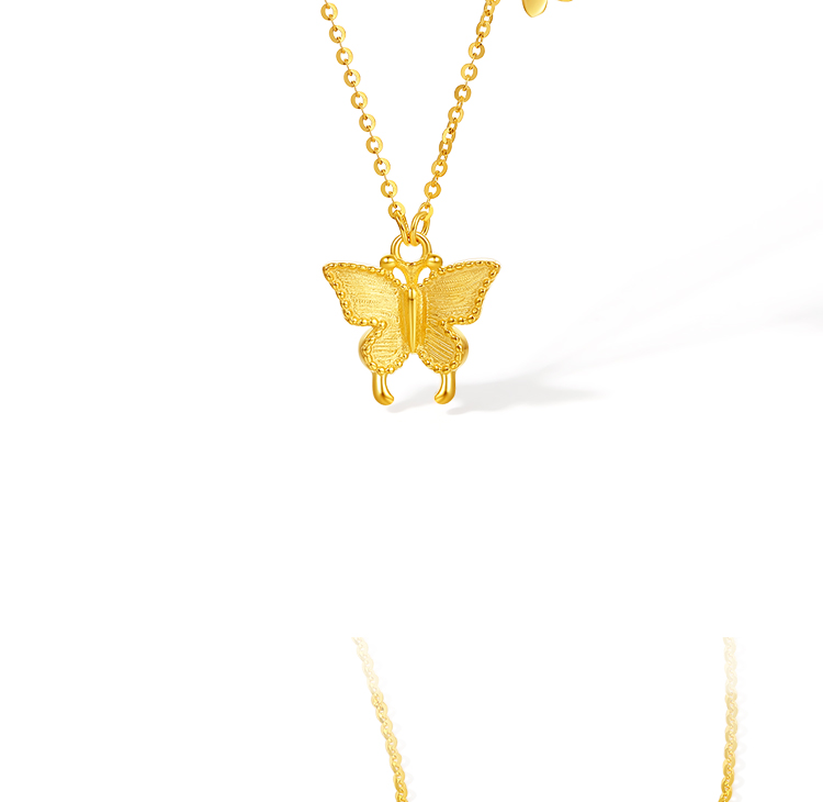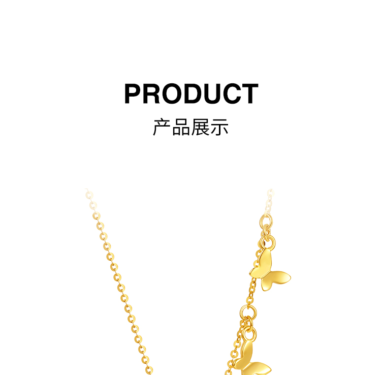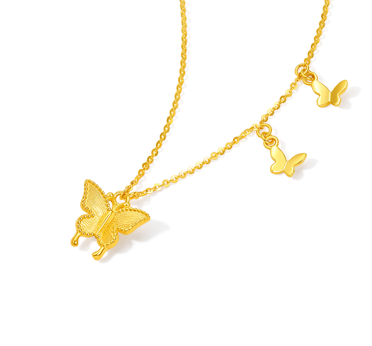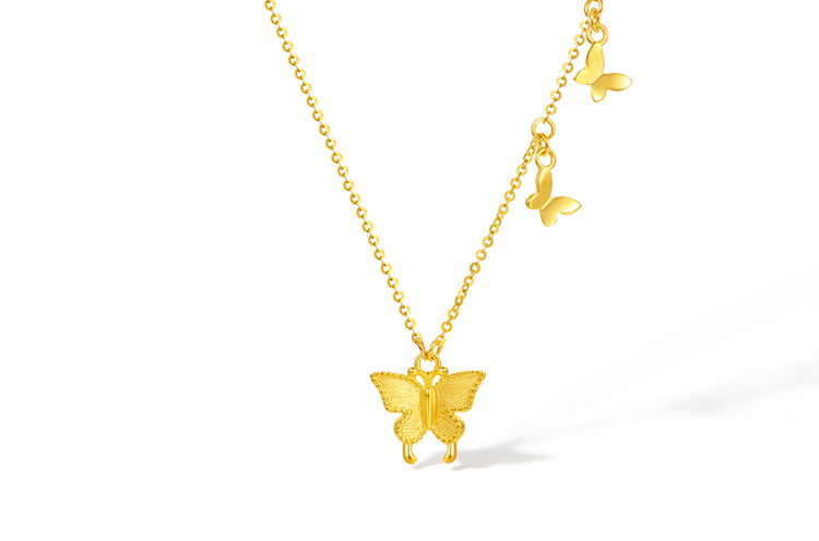 周六福黄18K金项链女蝴蝶结链坠AU750多彩金送礼