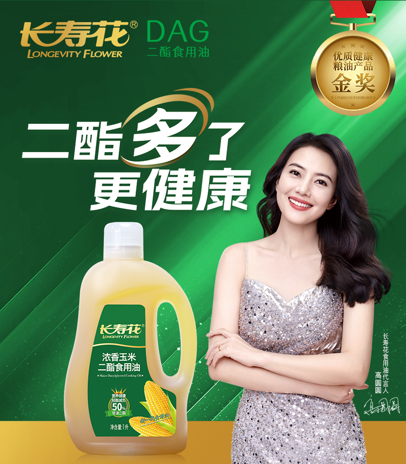 长寿花浓香玉米二酯食用油1L*5瓶 甘油二酯含量50%