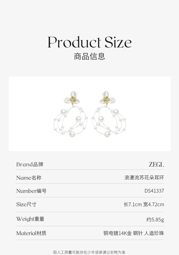 ZEGL设计师初夏物语系列满天星珍珠耳环女轻奢高级感耳钉法式耳饰