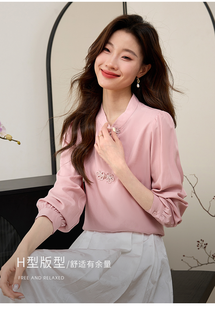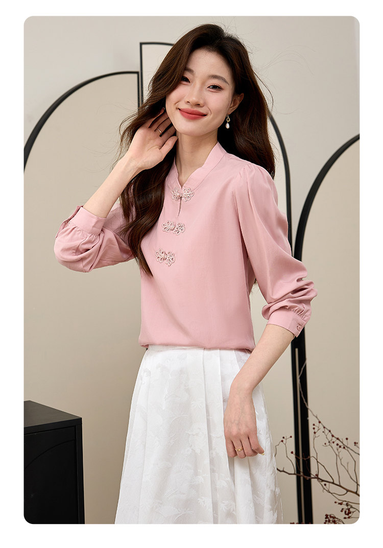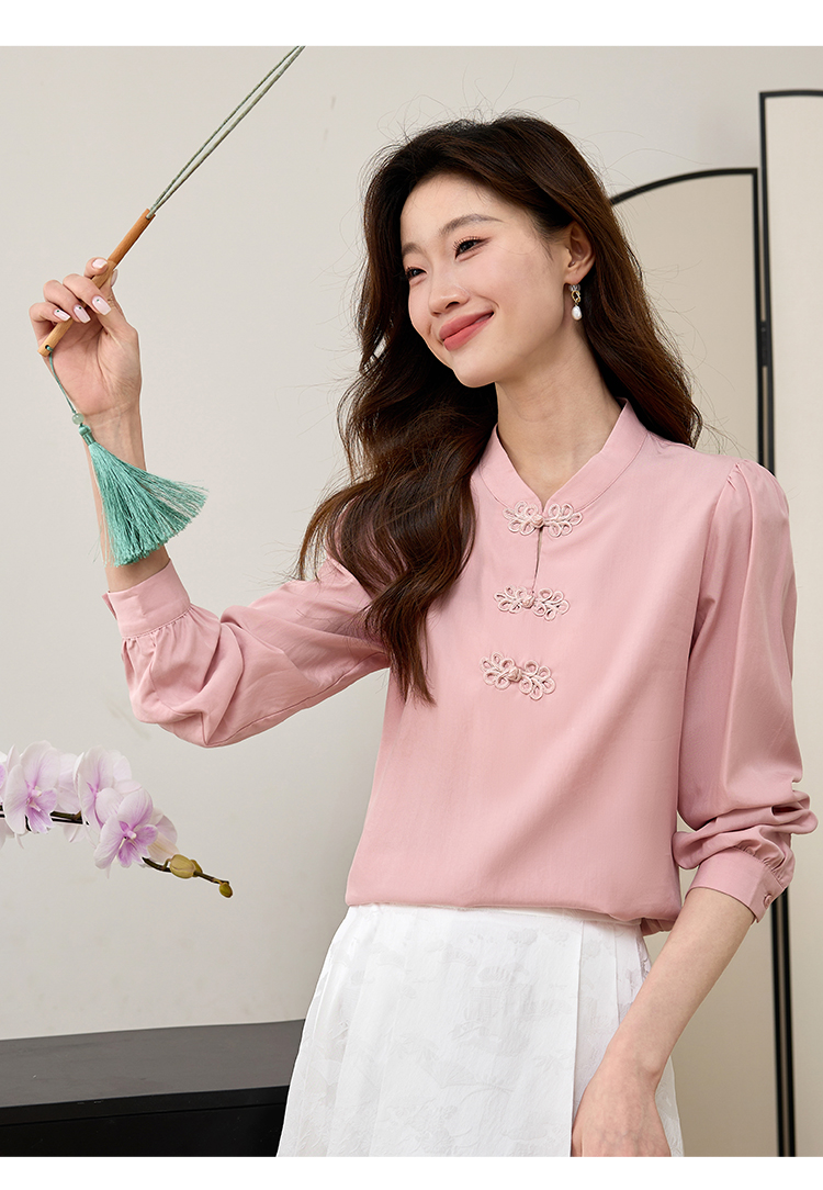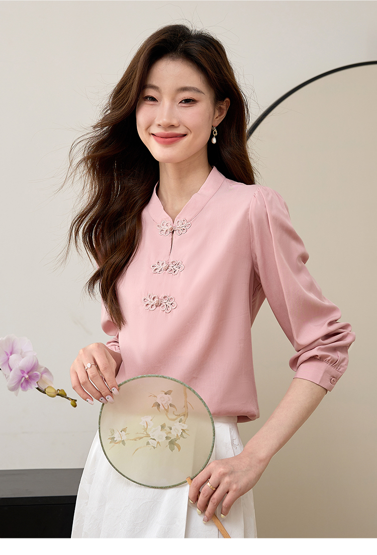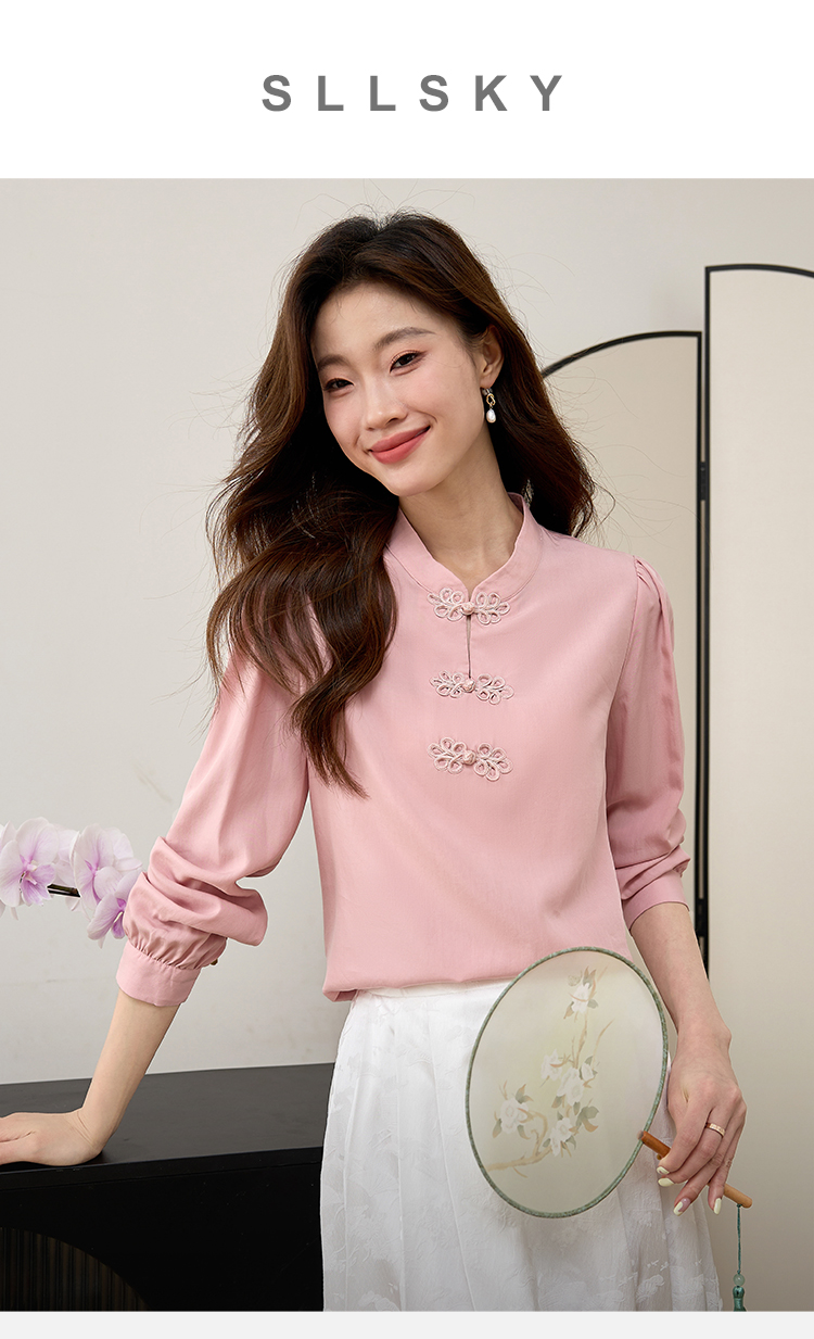 【年终特卖】熙世界新中式旗袍衬衫女士春夏衬衣国风天丝改良版盘扣衬衫