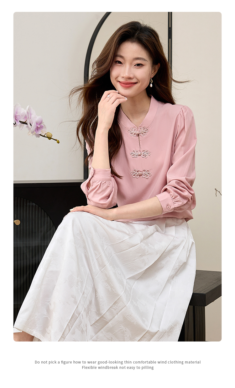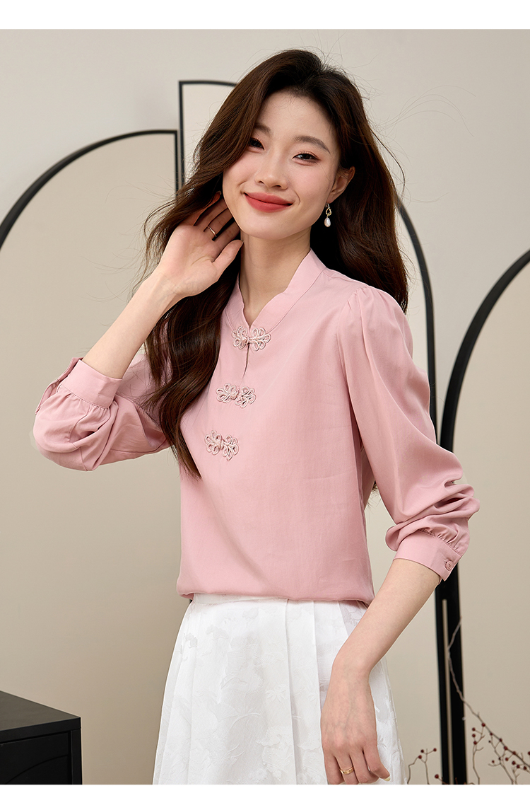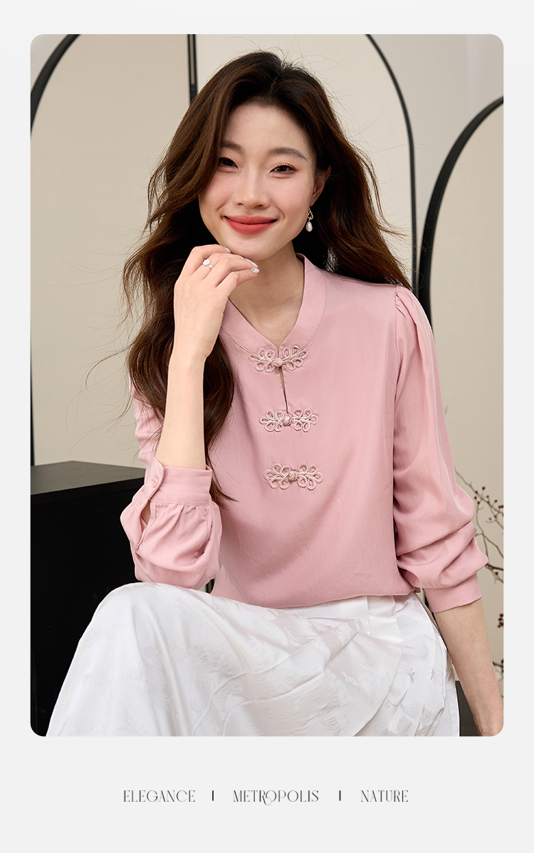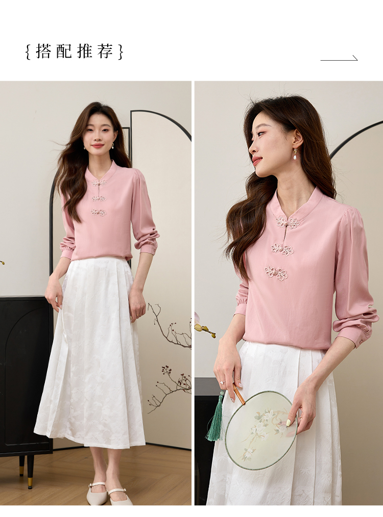 【年终特卖】熙世界新中式旗袍衬衫女士春夏衬衣国风天丝改良版盘扣衬衫
