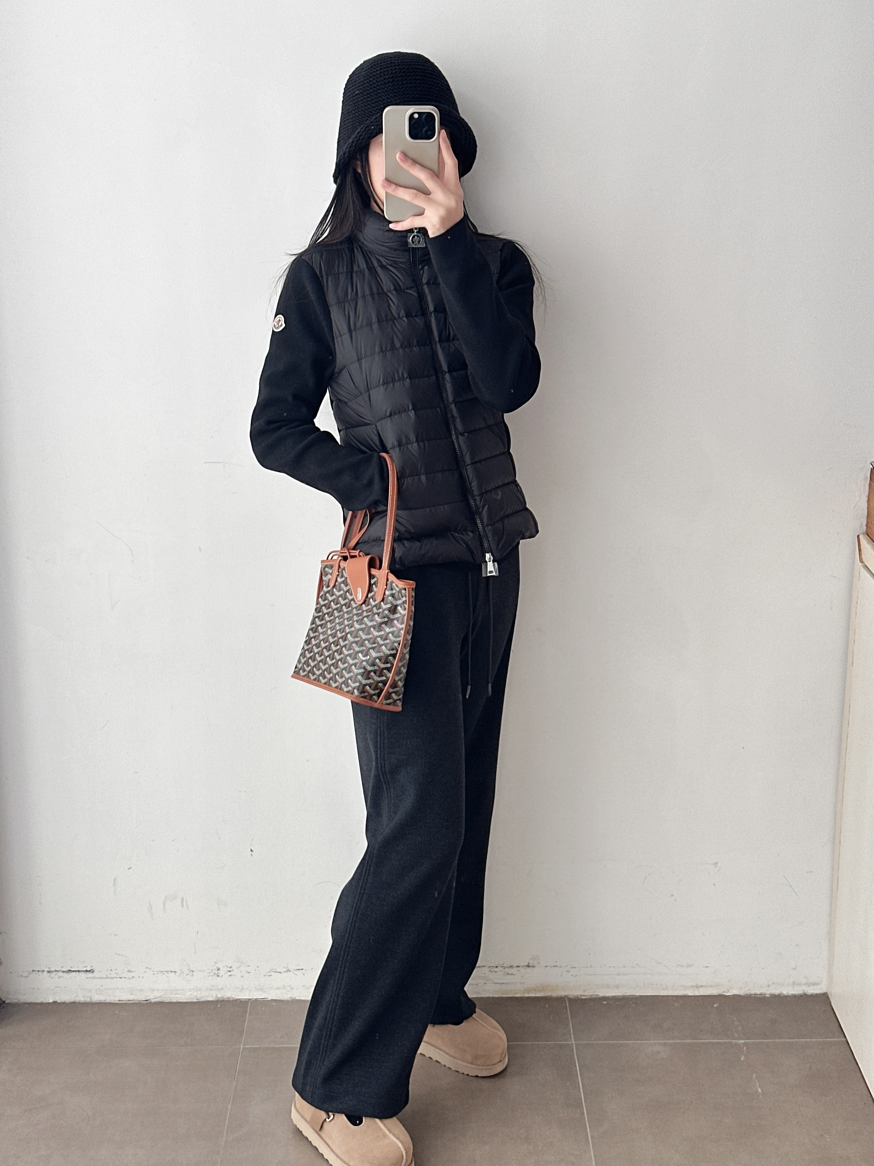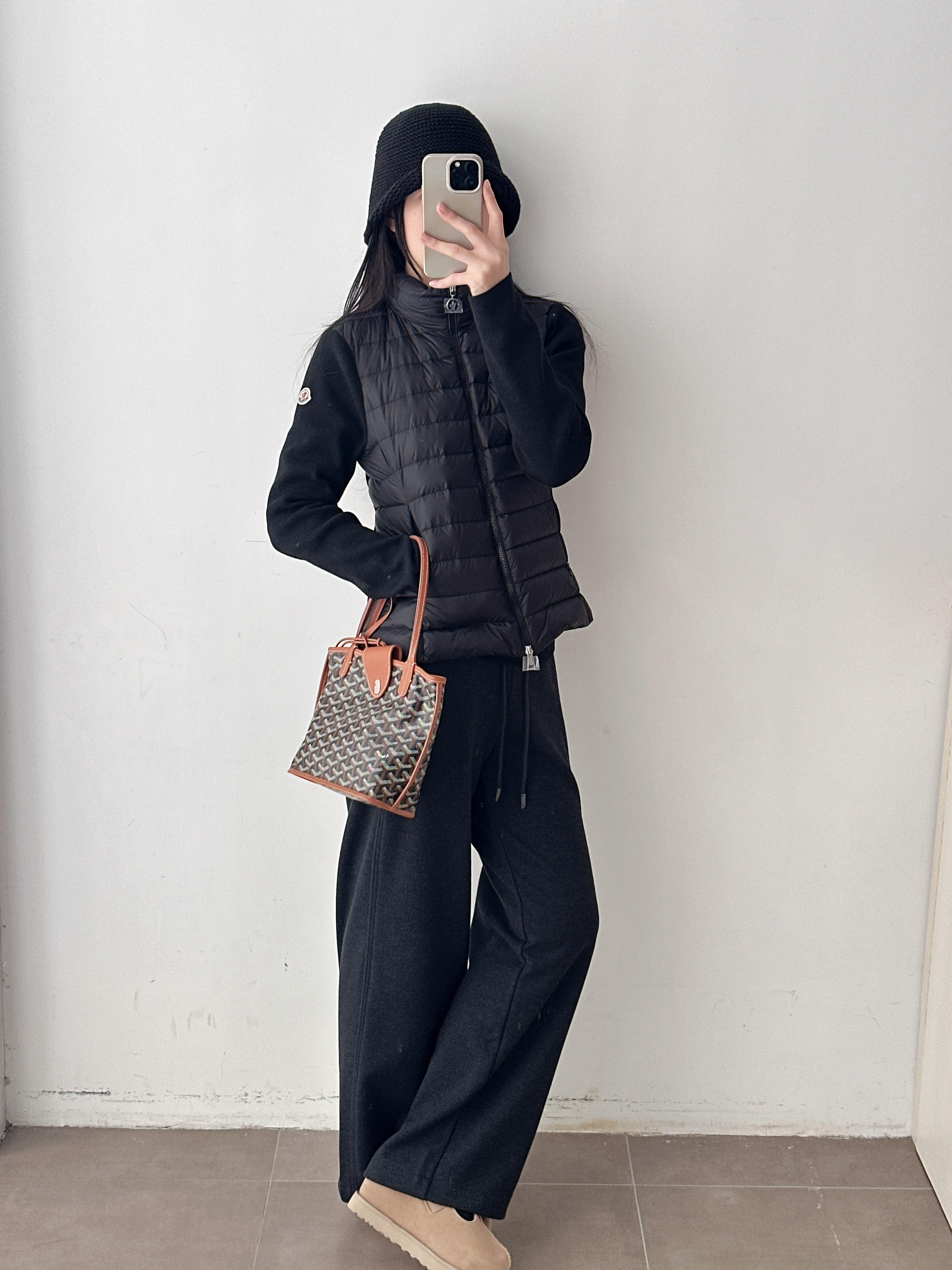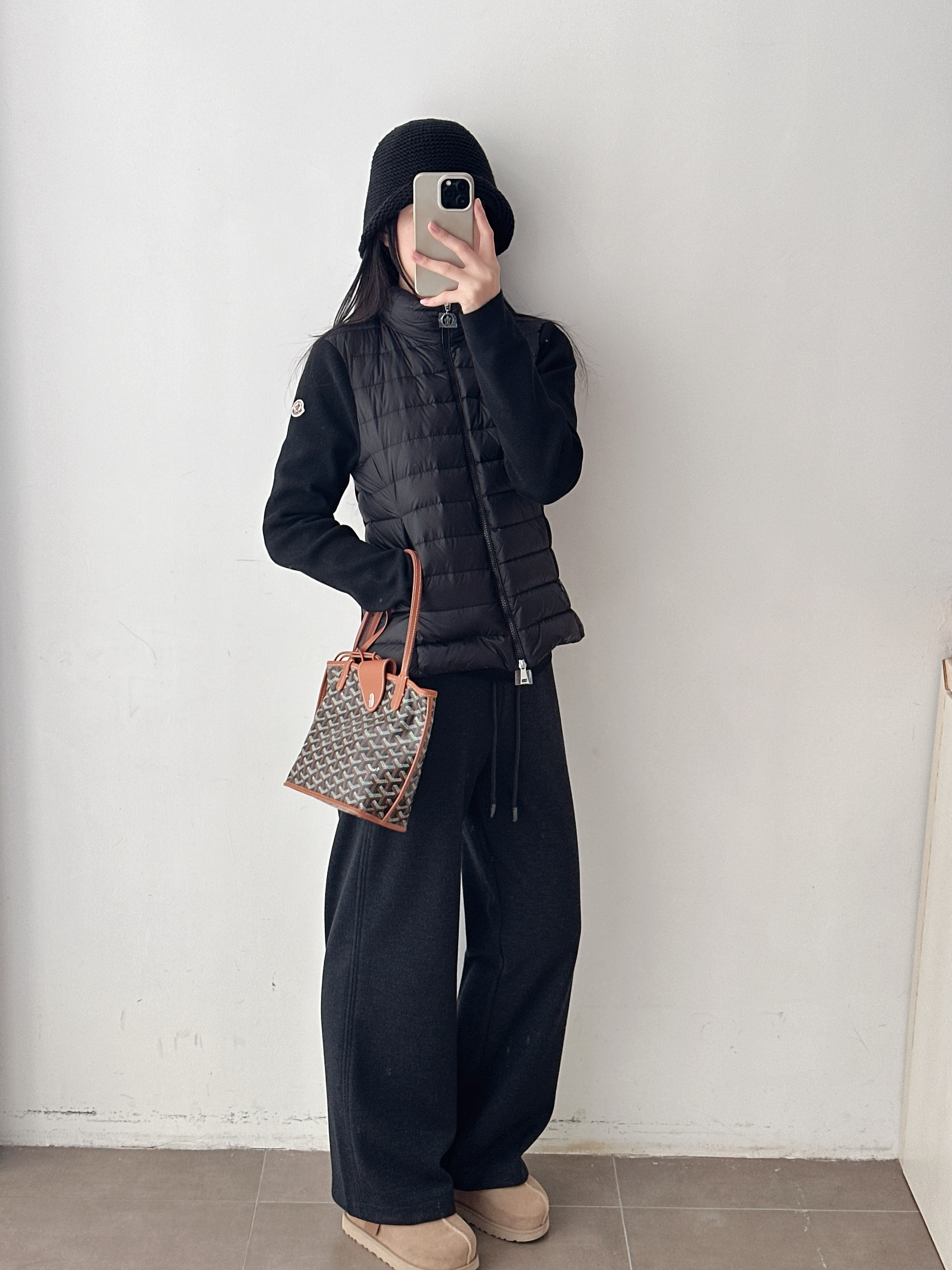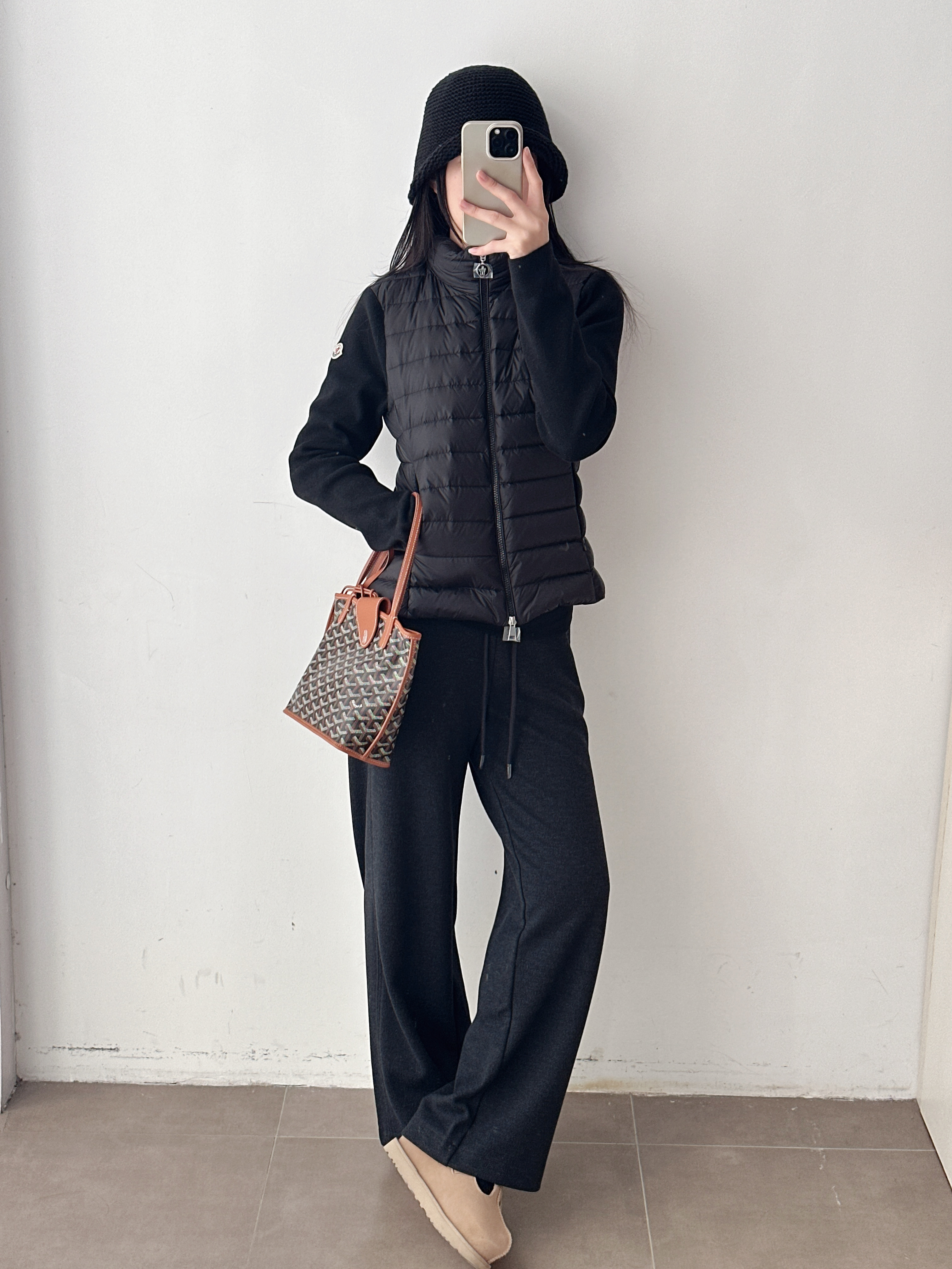 针织拼接翻领立领两穿修身羽绒服外套