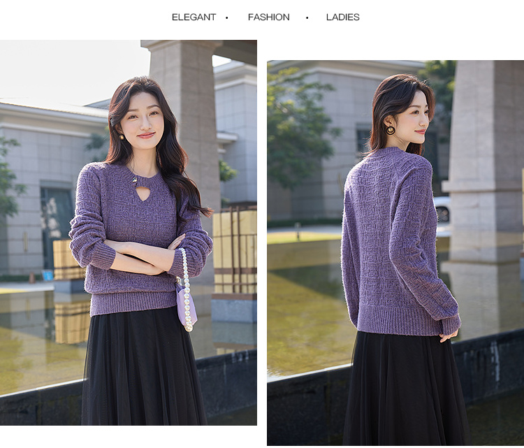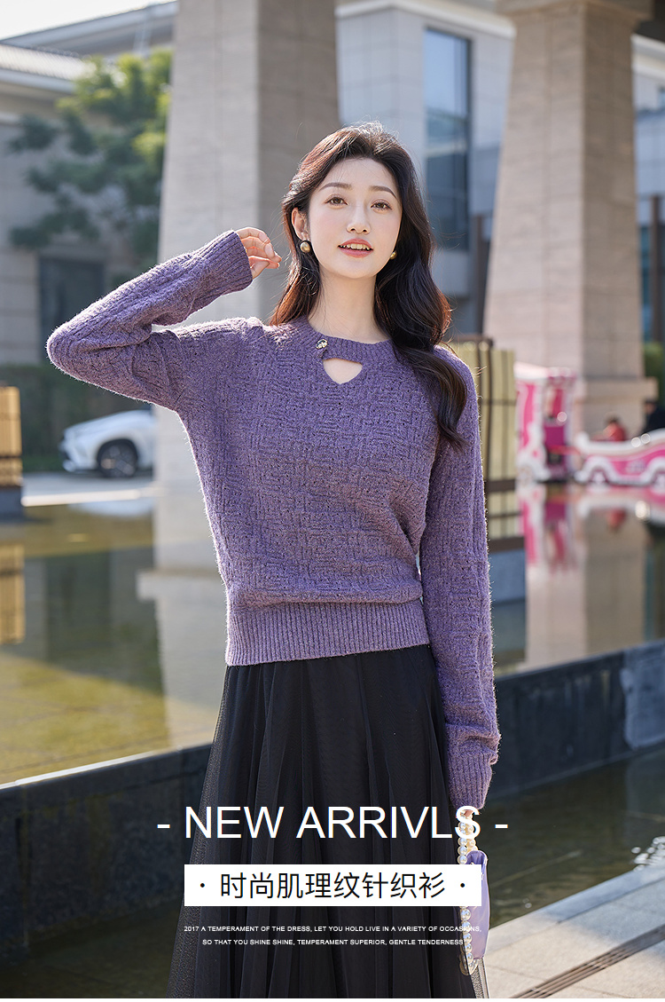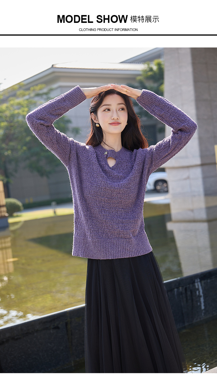 奢姿大码女装2025冬季胖妹妹时尚肌理针织衫气质优雅简约休闲上衣9854669966