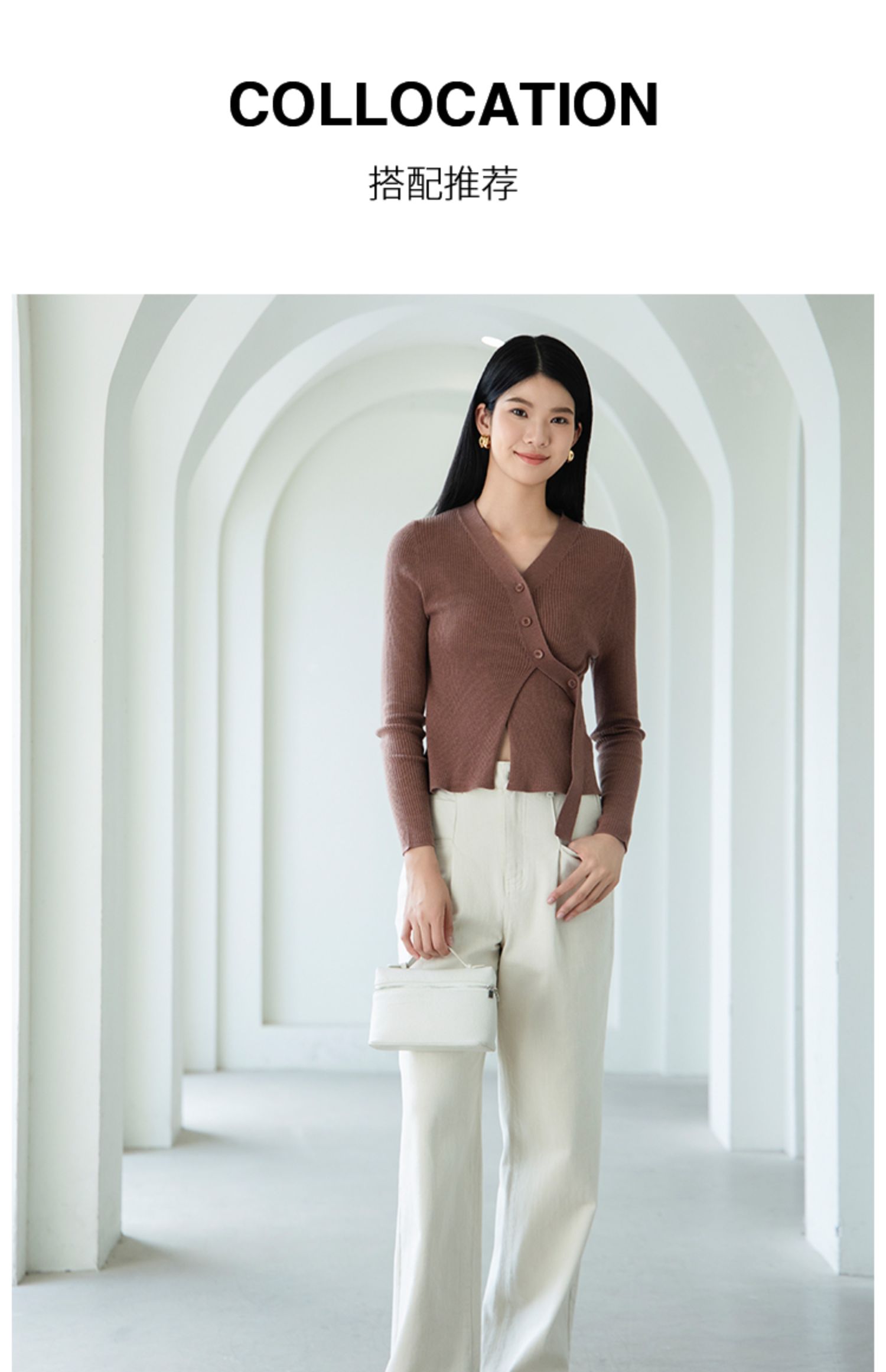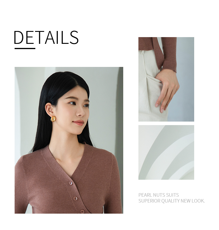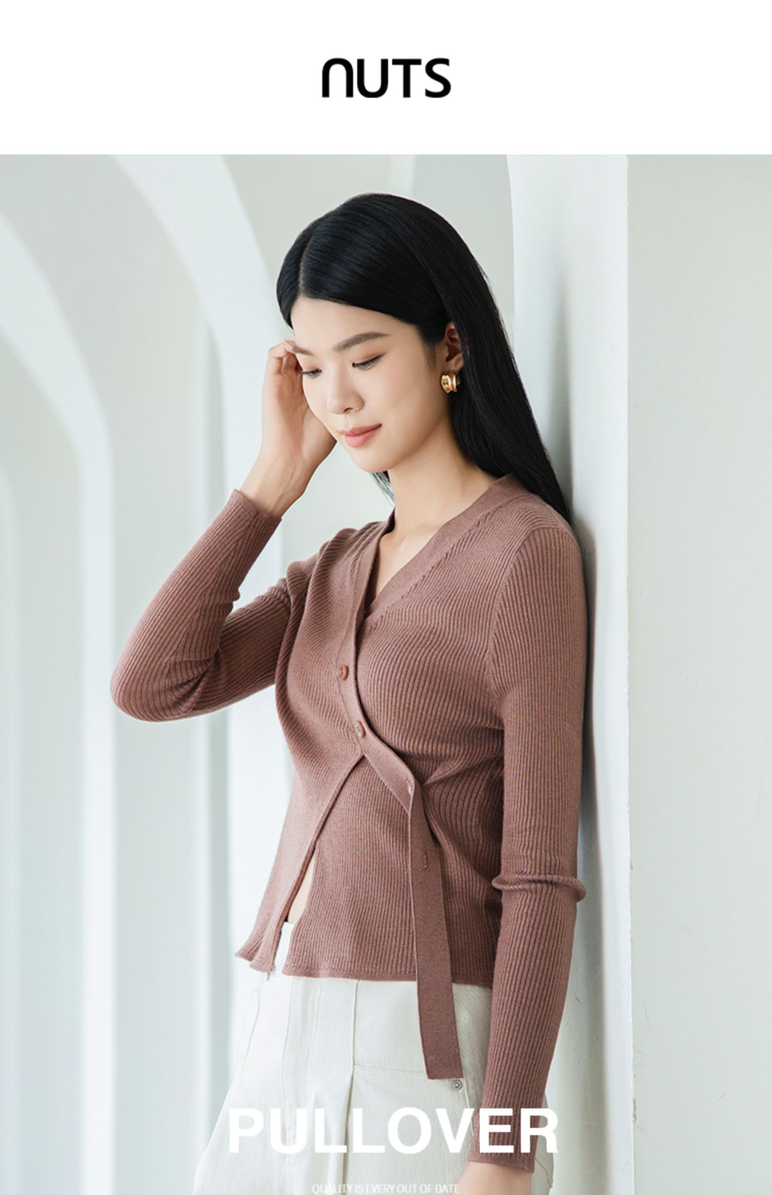 NUTS商场同款春秋款V领设计感修身显瘦套头衫女4390506A1