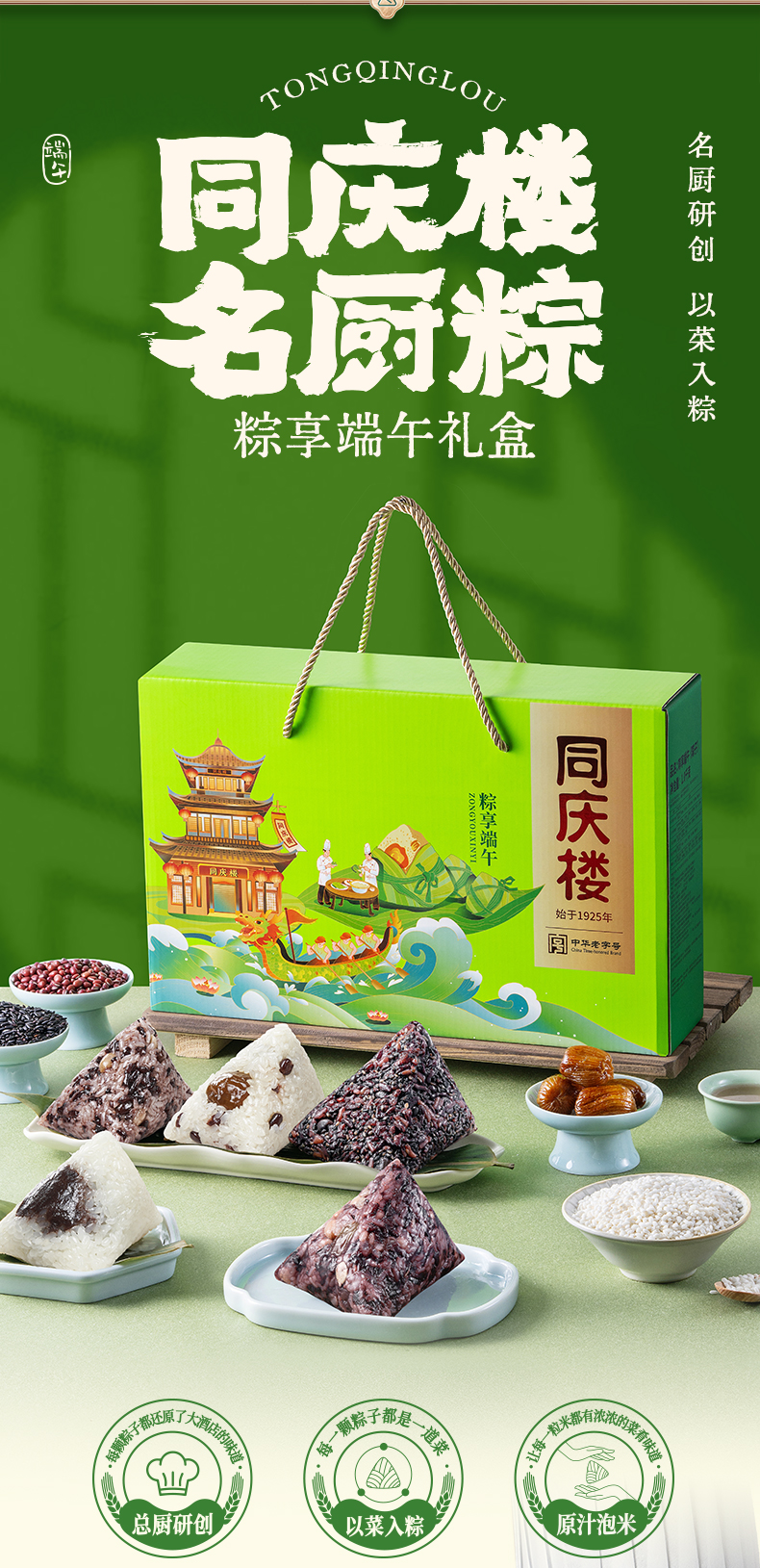 同庆楼 粽享端午礼盒(素粽)1000g 5味10棕 端午粽子 香甜软糯 72小时发货