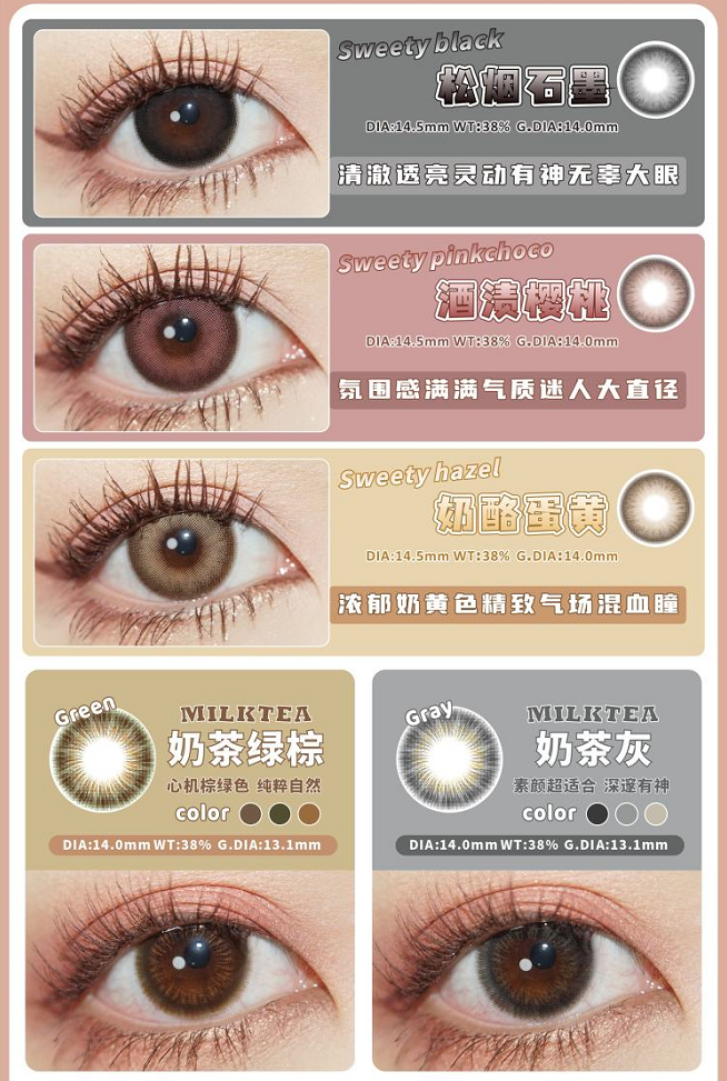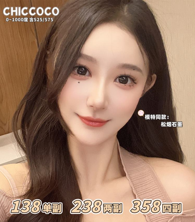 【小红书推荐款】chic coco 奶茶灰,年抛/直径14.0/着色13.1,138/一副,238/两副,358/四副,最高度数有1000