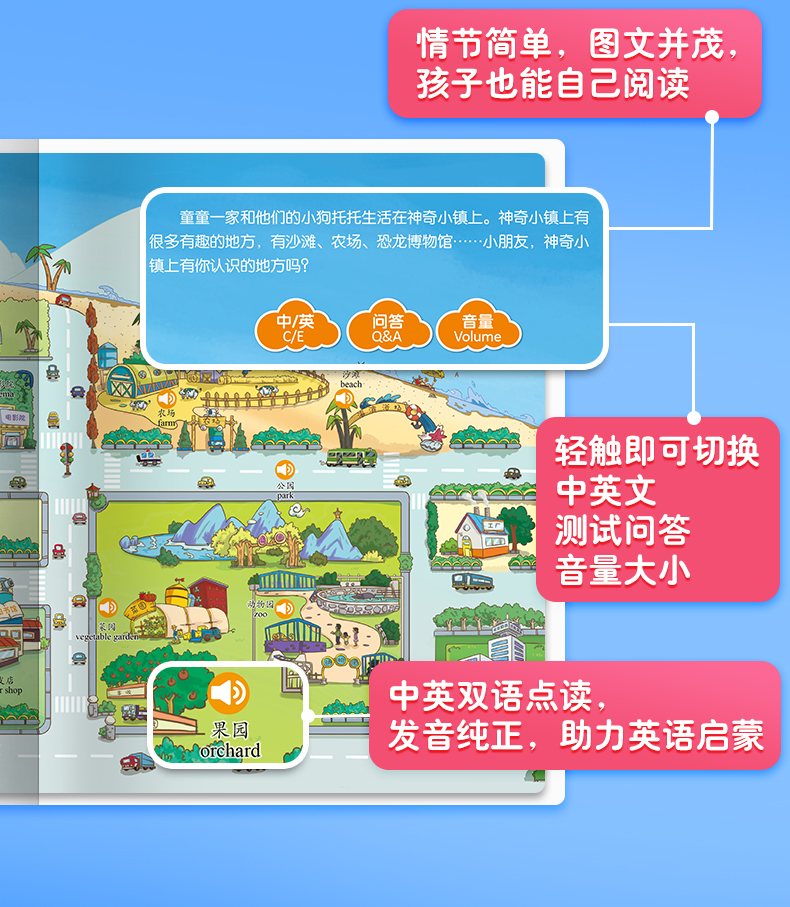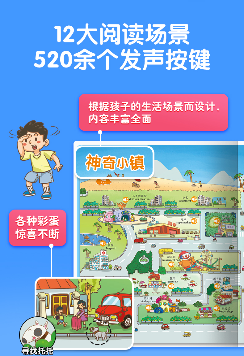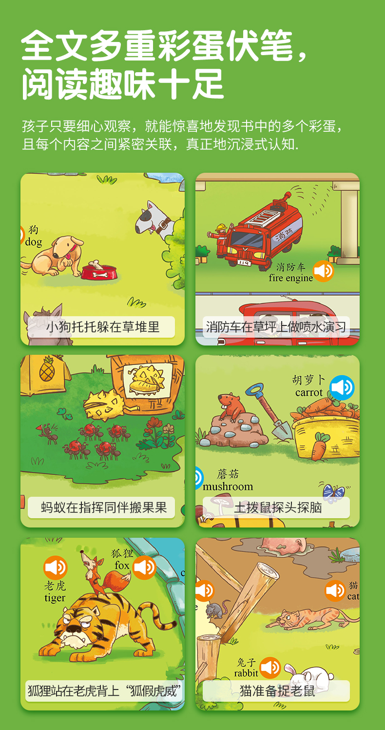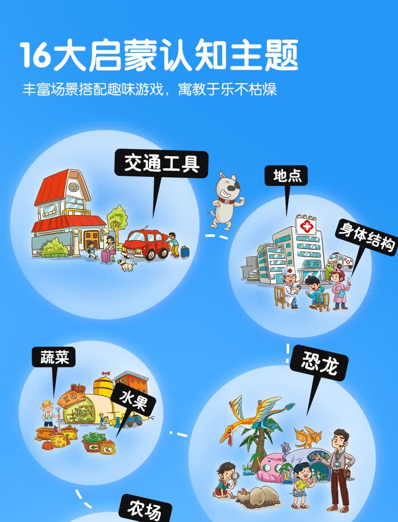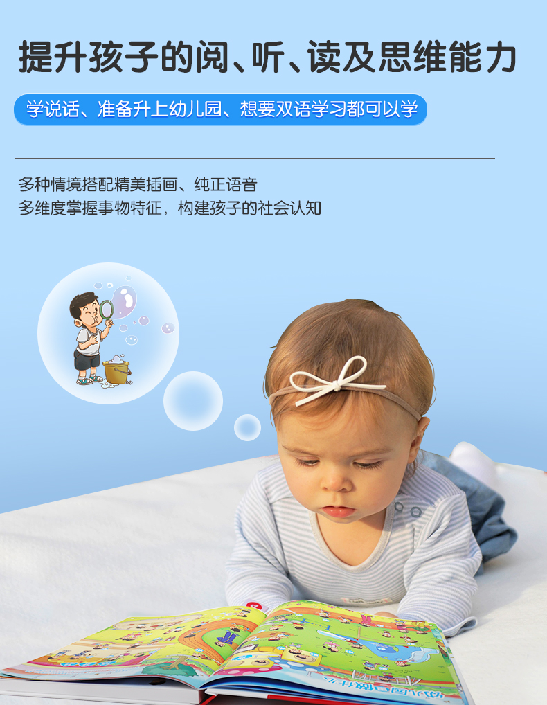 通过发声的方式提供多场景的学习,让宝宝身临其境,更快速的学习到知识。