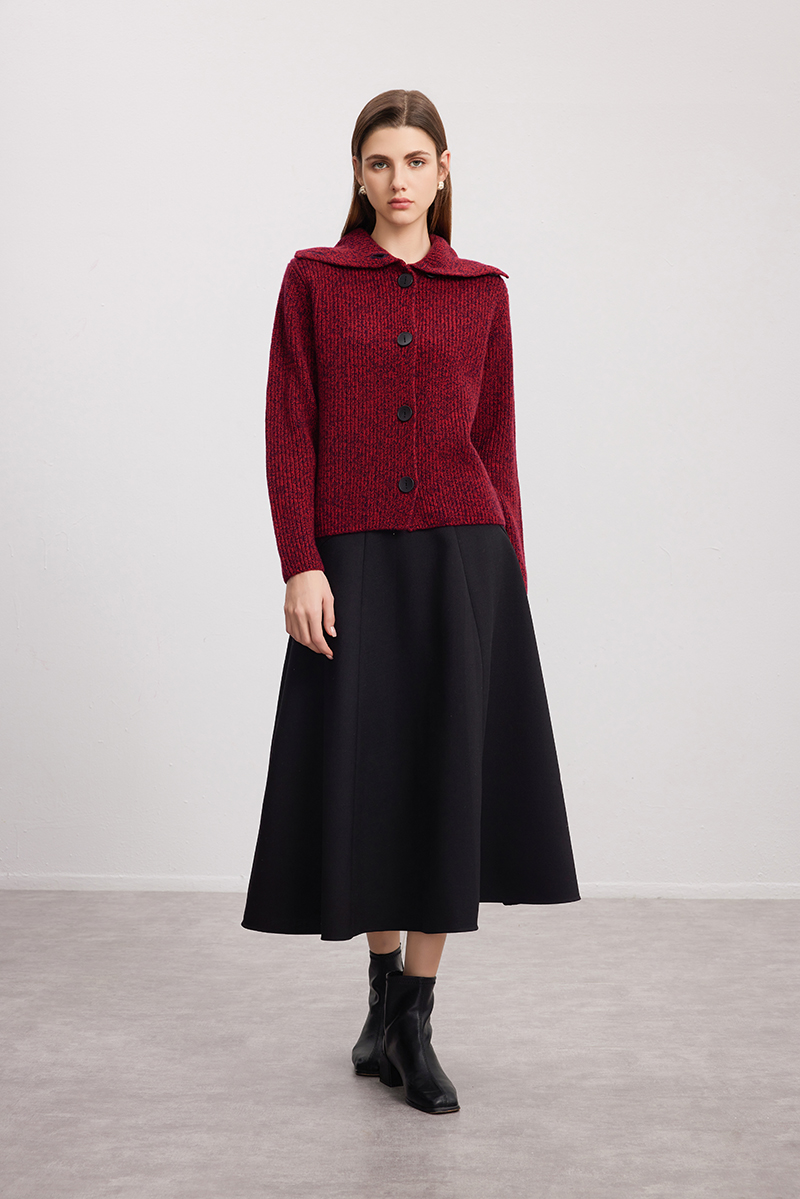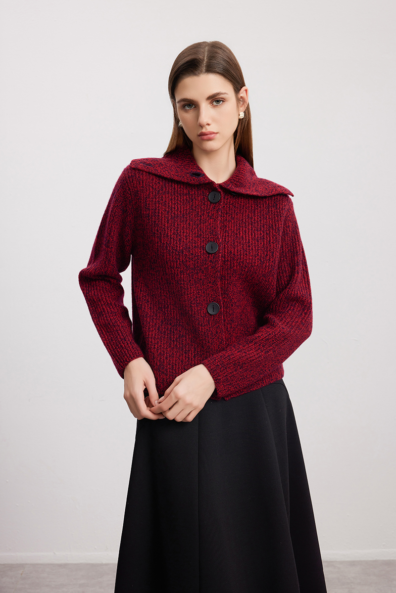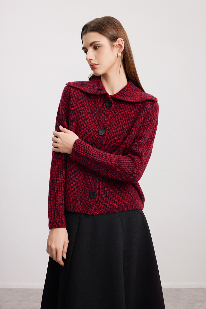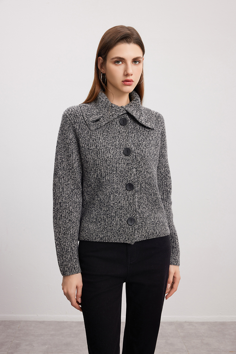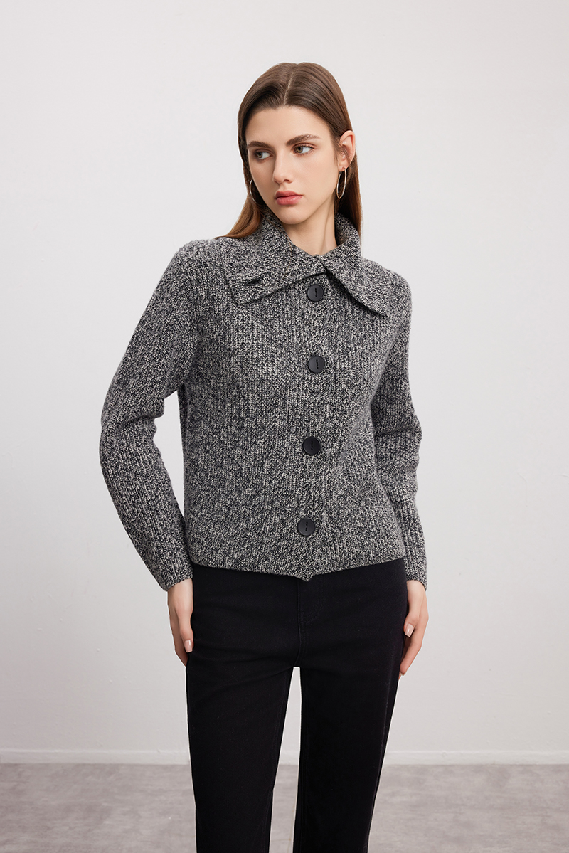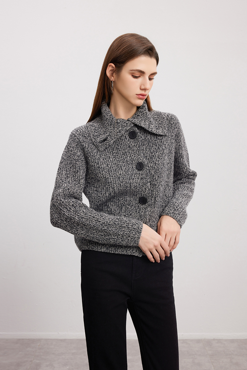 【大翻领混色羊绒开衫】羊绒世家秋冬新品女士100%山羊绒加厚保暖针织外套