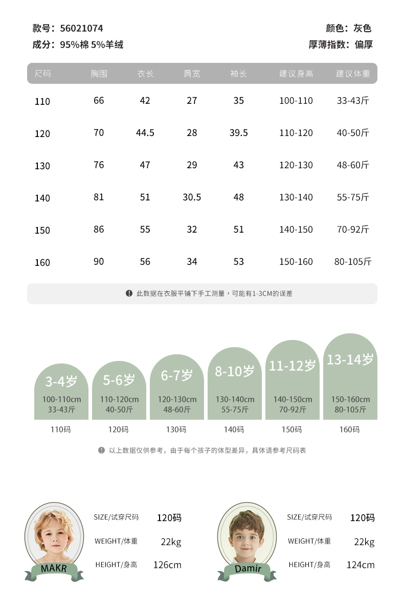 | 安全等级: B类 | 材质成分: 棉95% 山羊绒(羊绒)5% |