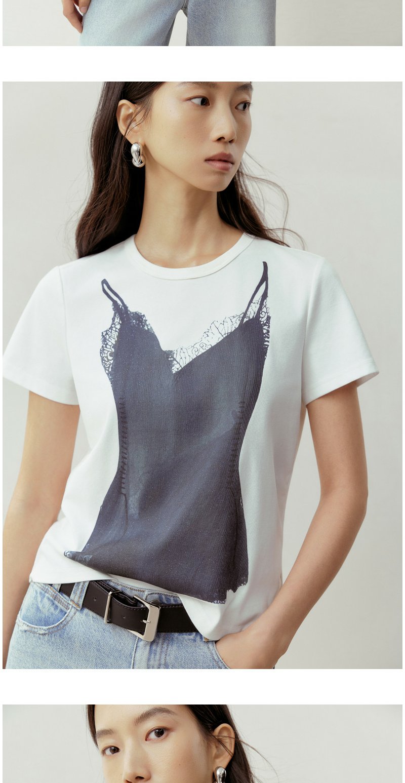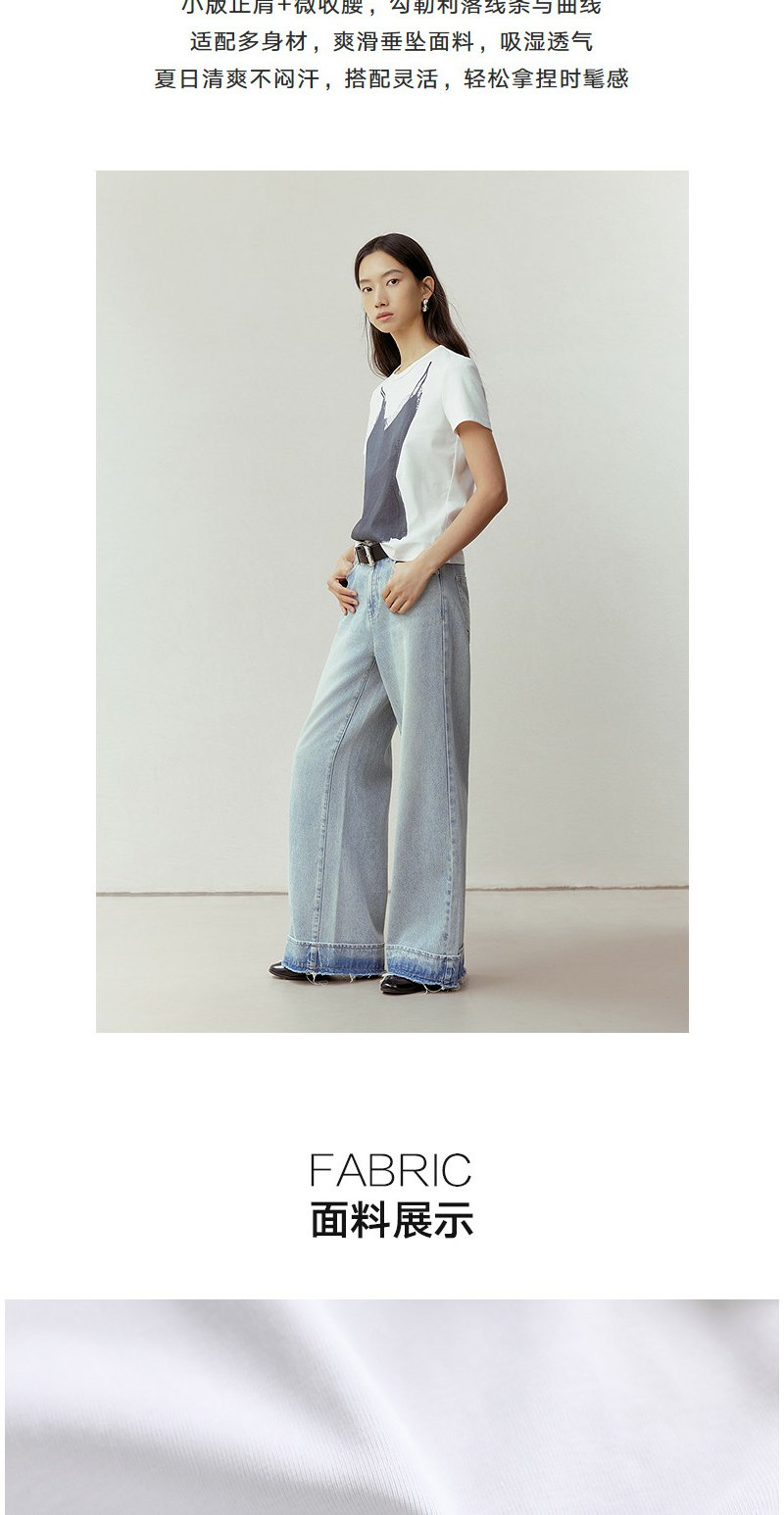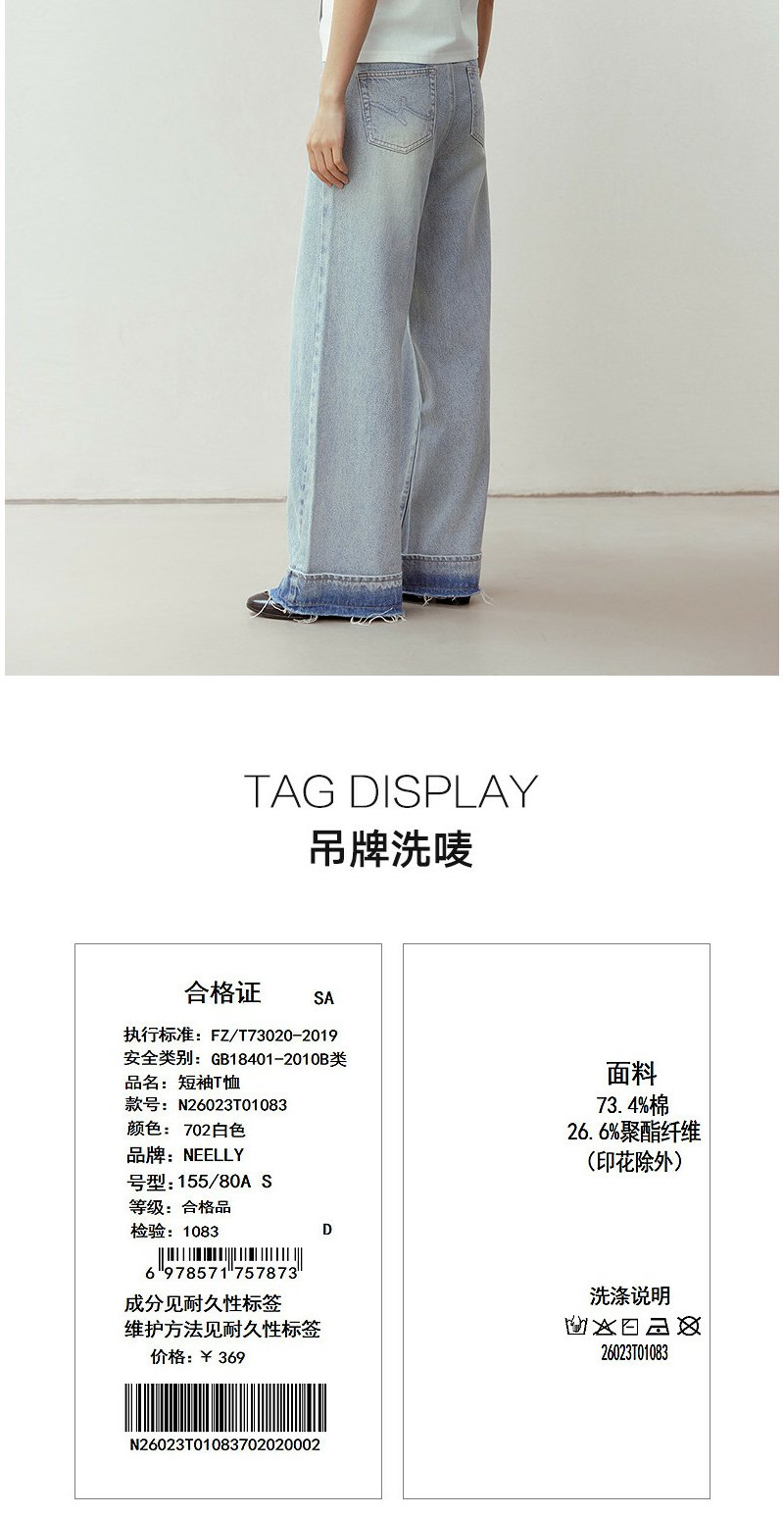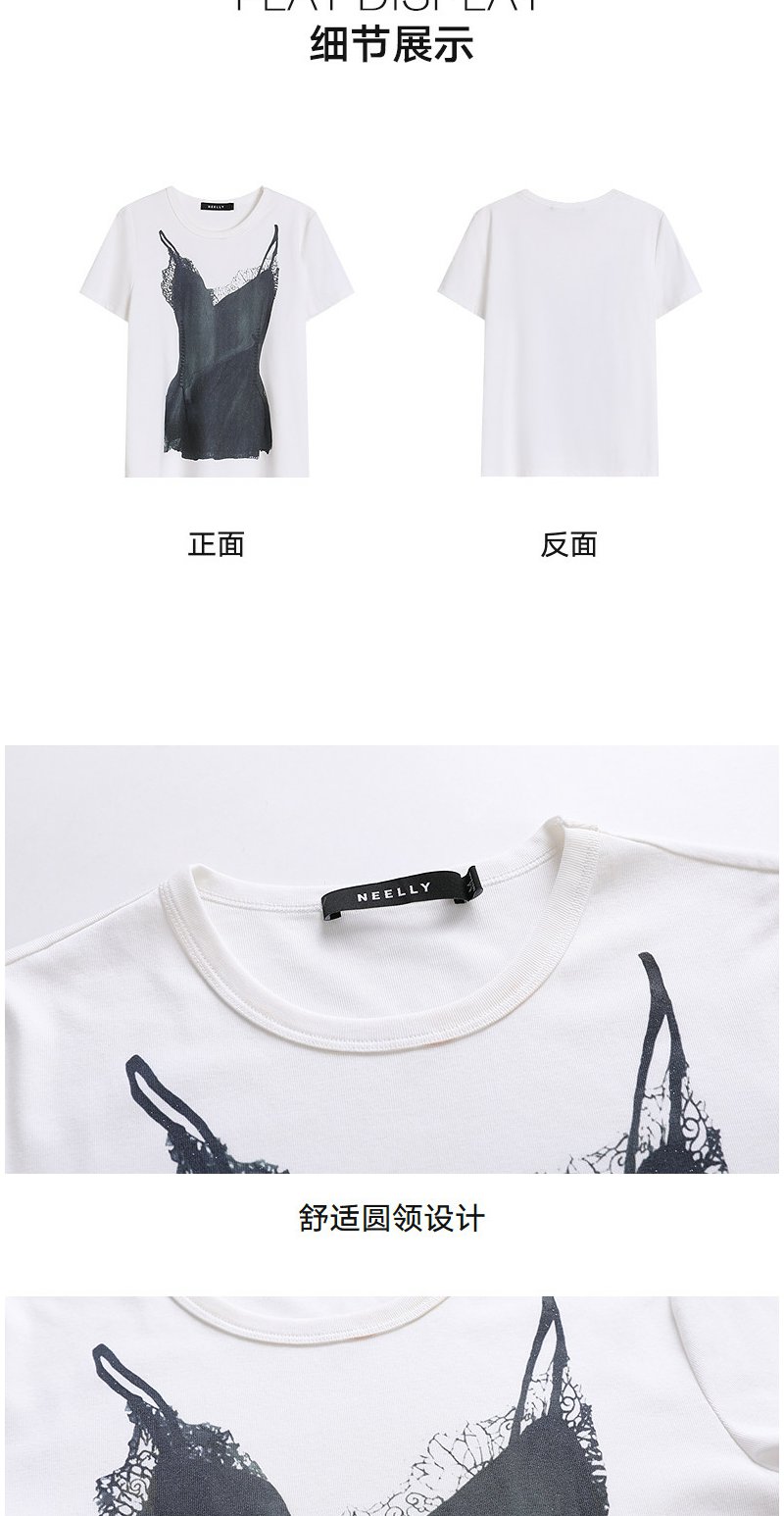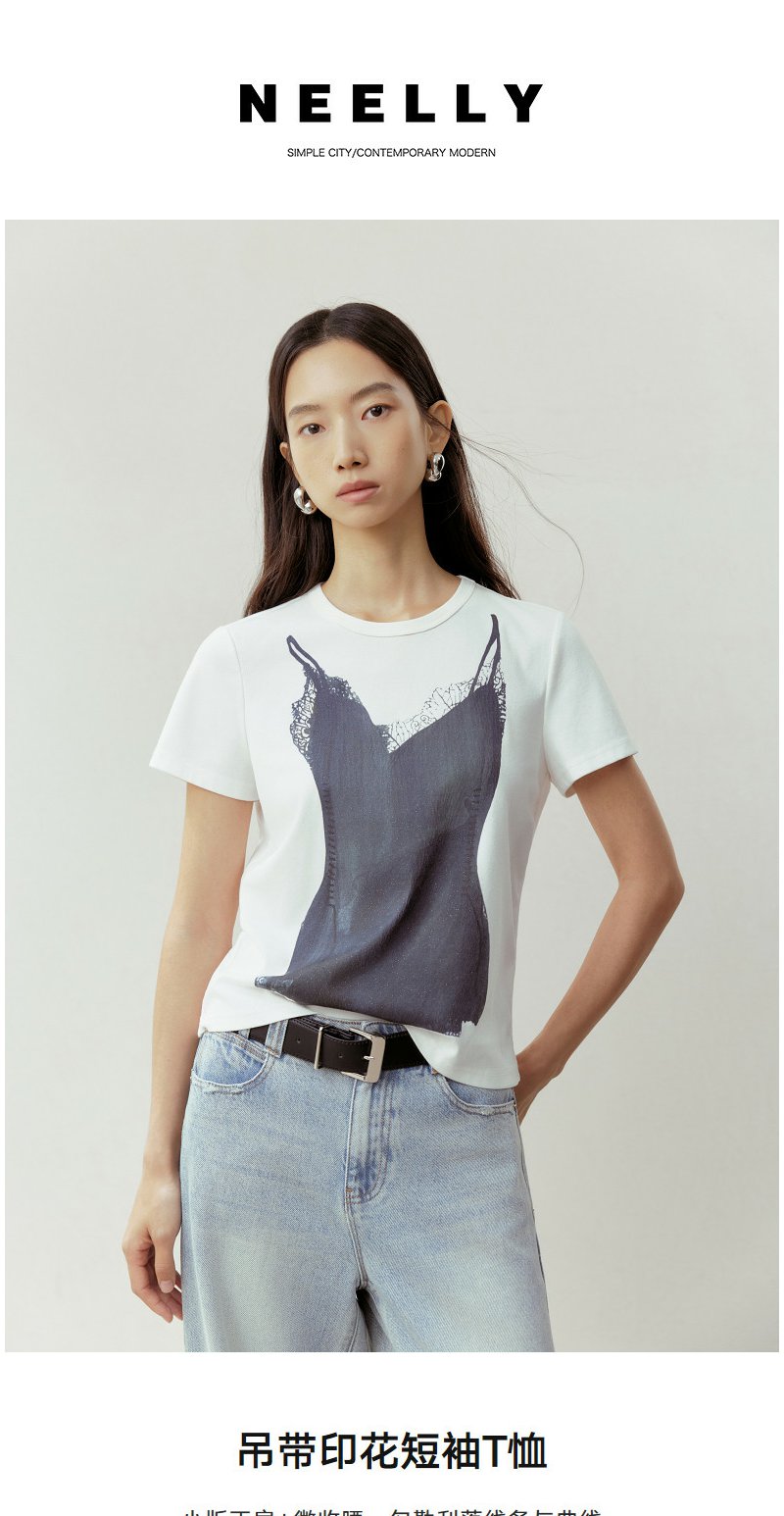 NEELLY纳俪商场同款春季新款时尚正肩印花T恤女通勤亲肤舒适上衣N26023T01083