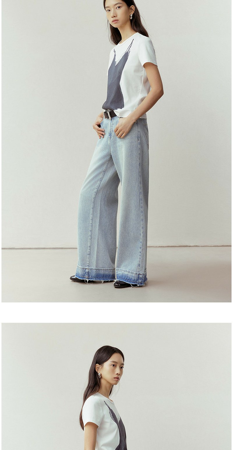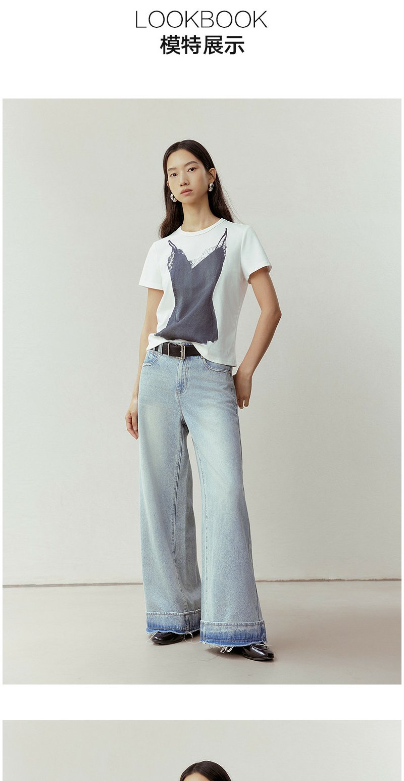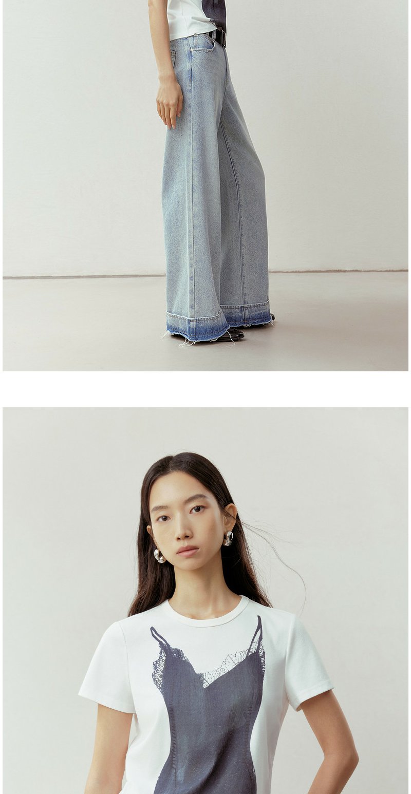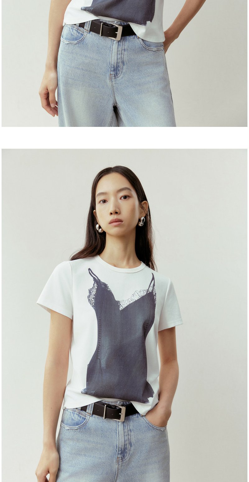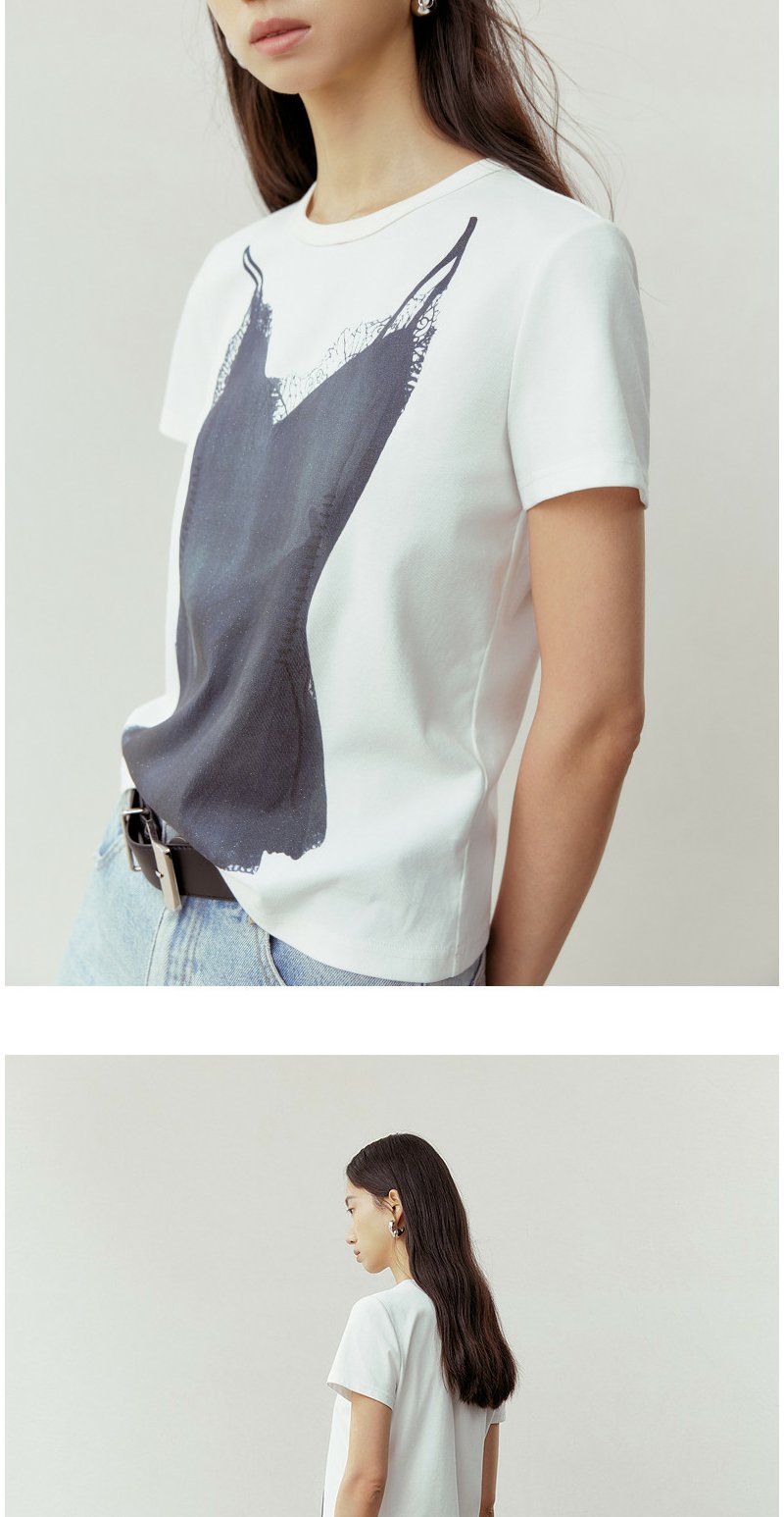 NEELLY纳俪商场同款春季新款时尚正肩印花T恤女通勤亲肤舒适上衣N26023T01083