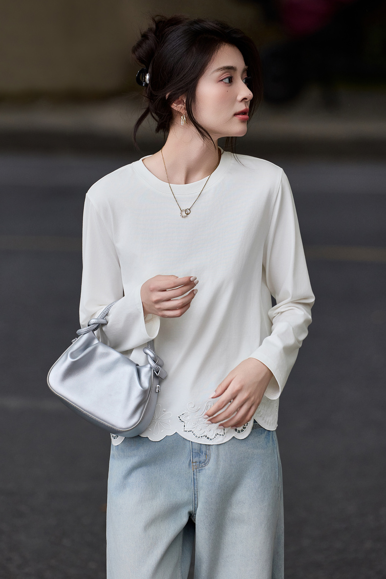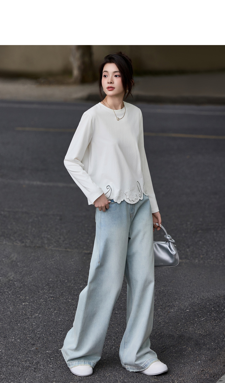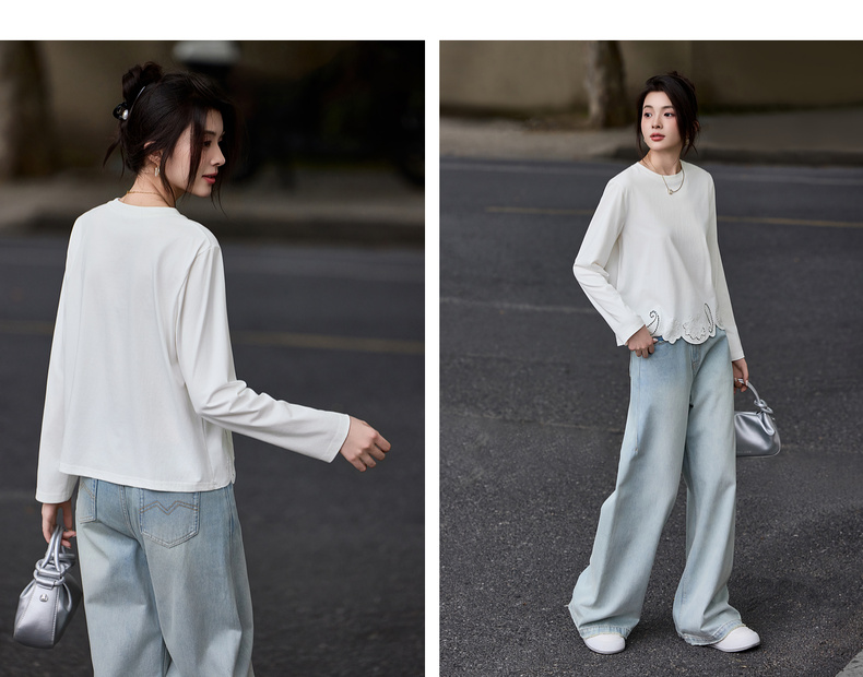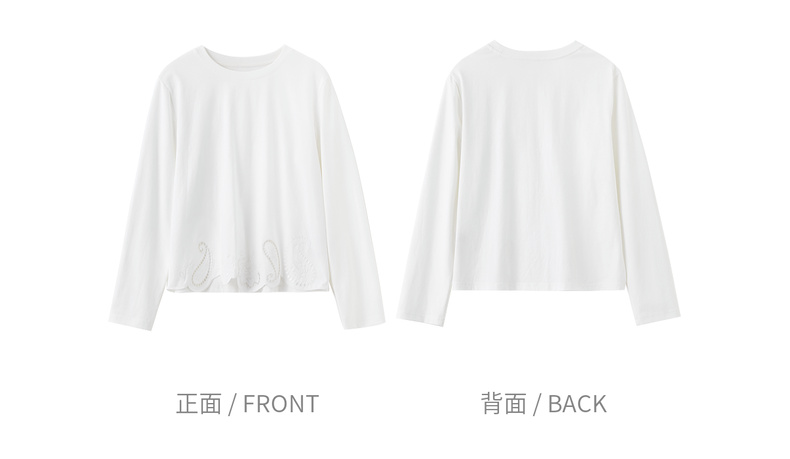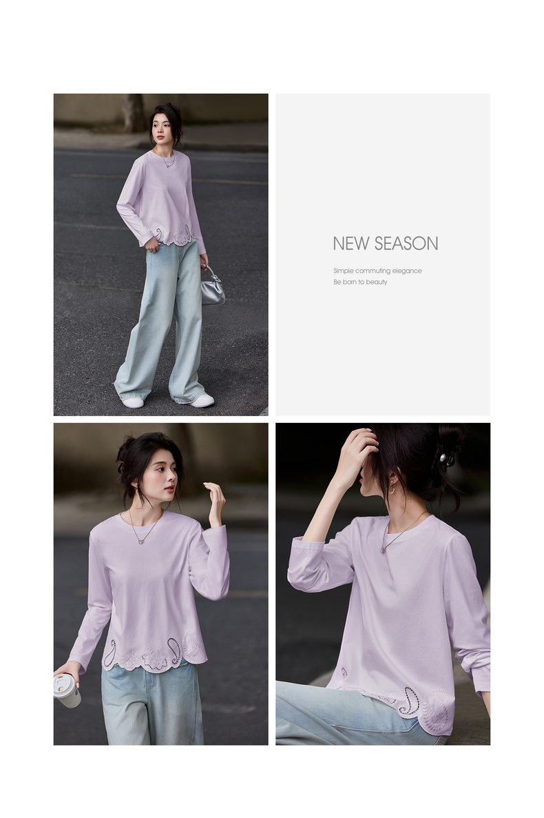 【内购】【镂空刺绣】简约通勤腰果花设计圆领直筒长袖40S精梳棉T恤-153TG2460