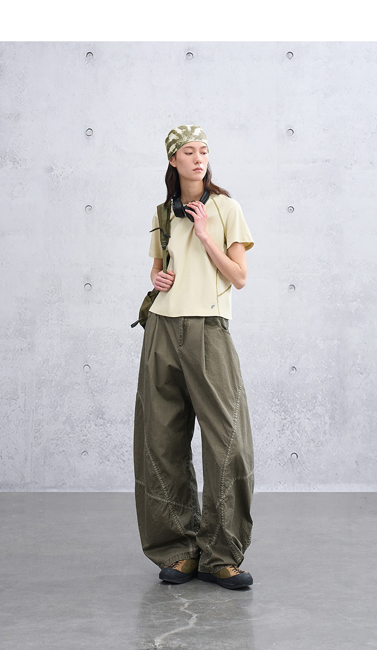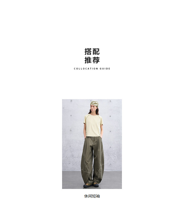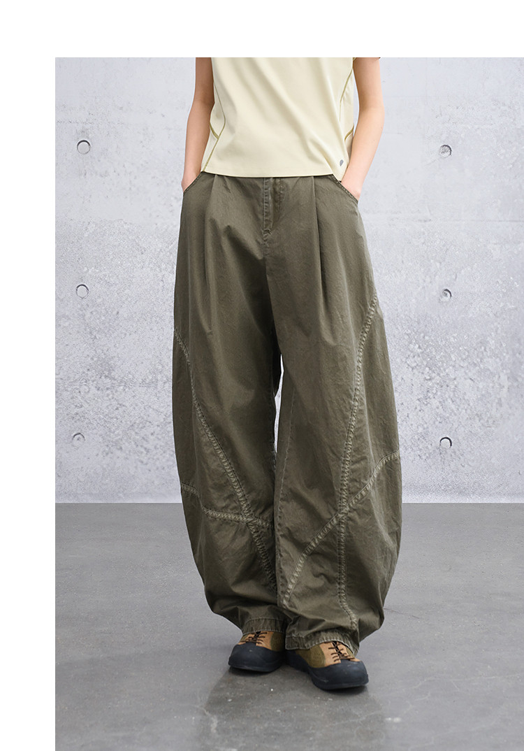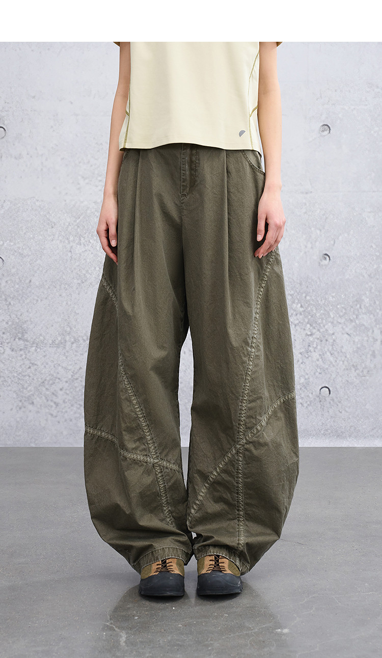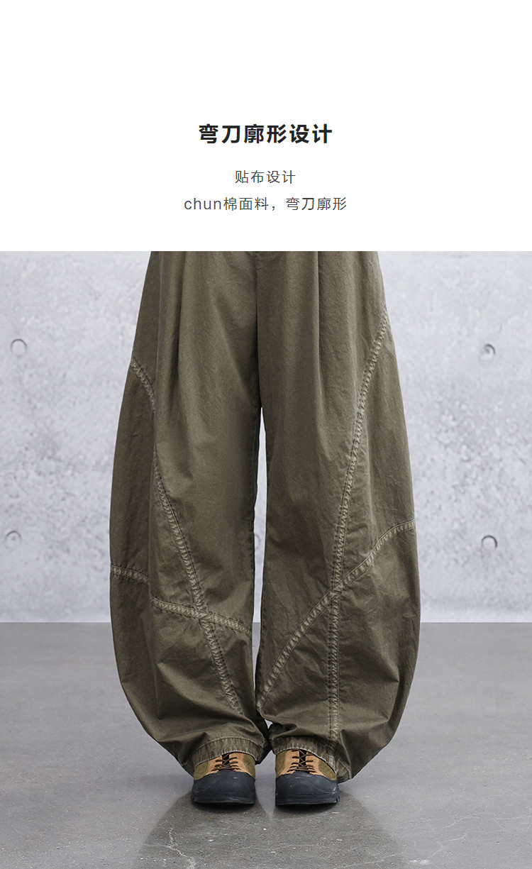 半圆/C6113029502S/拼贴宽松休闲弯刀裤