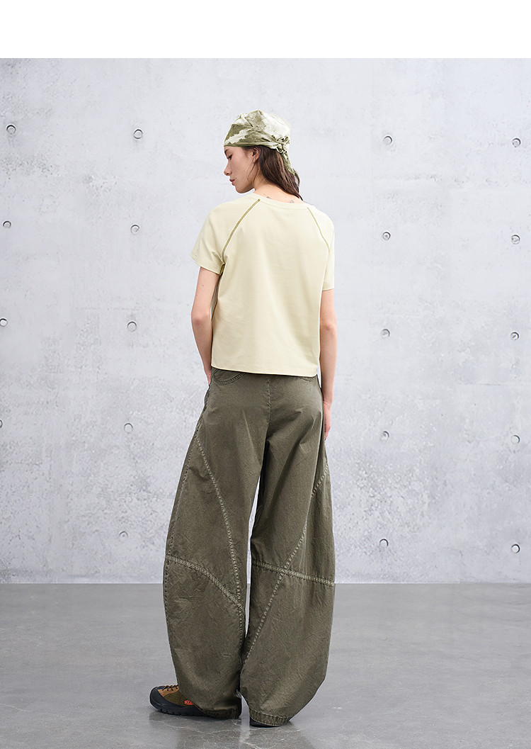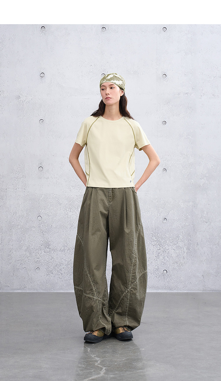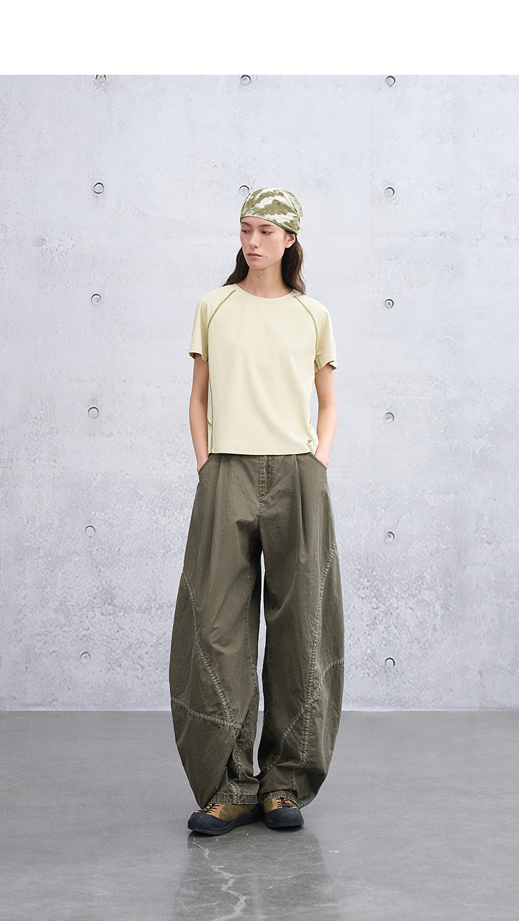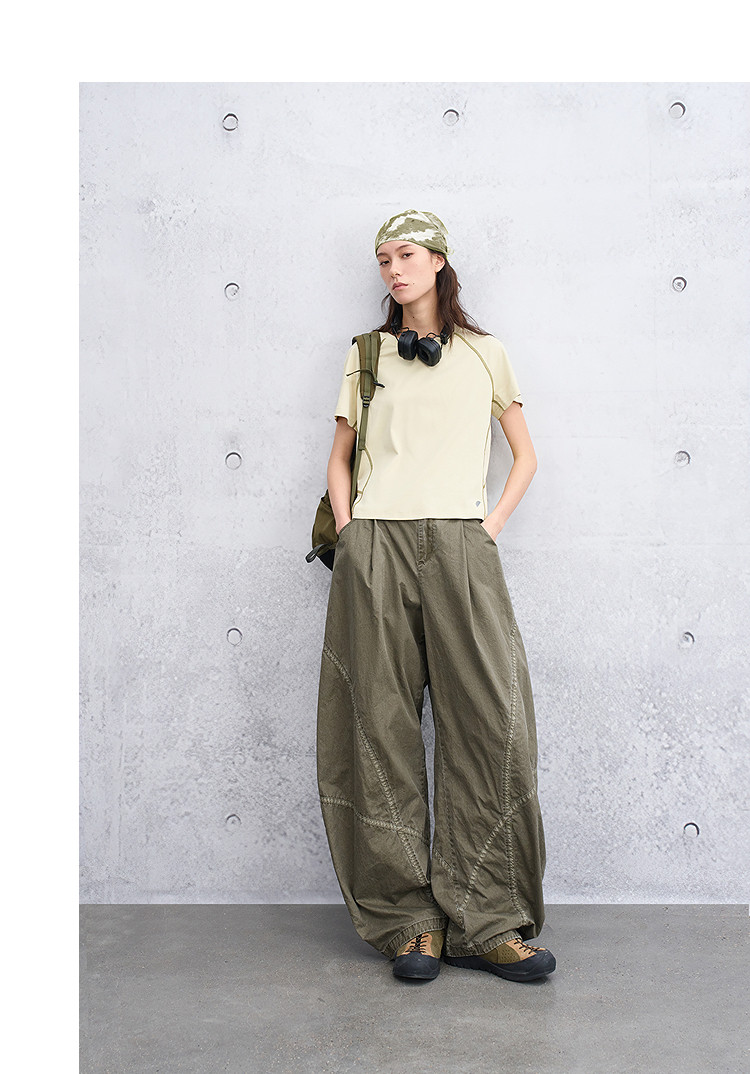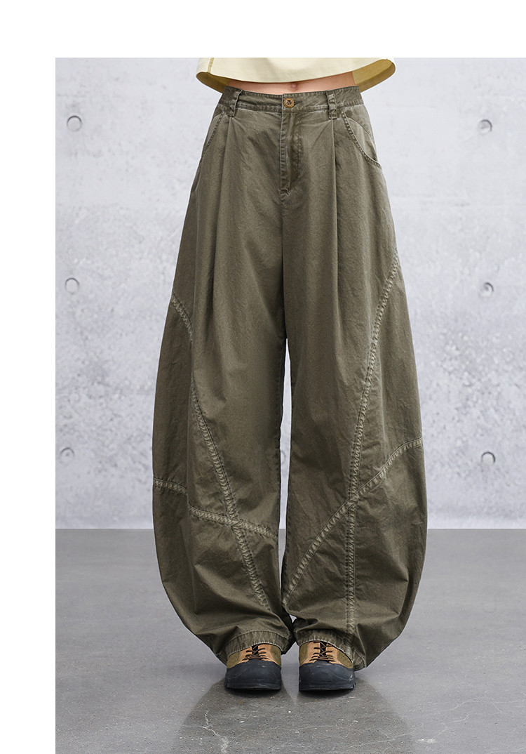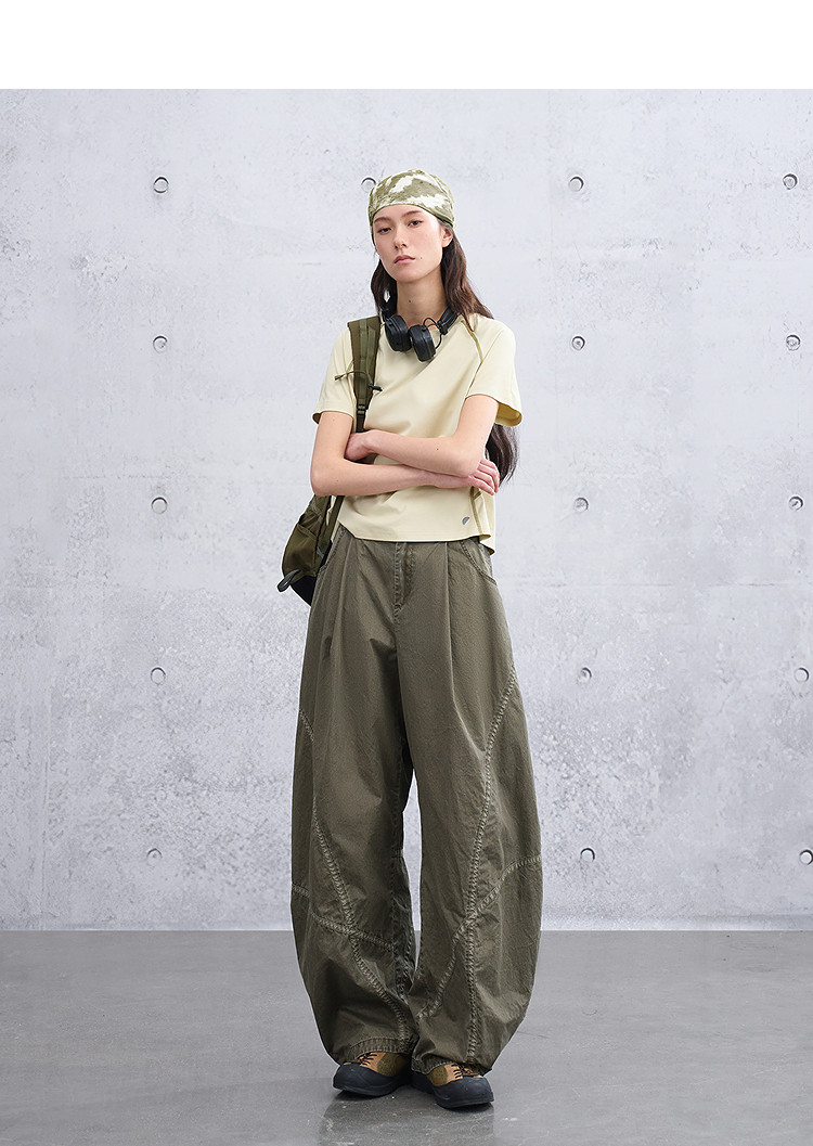 半圆/C6113029502S/拼贴宽松休闲弯刀裤