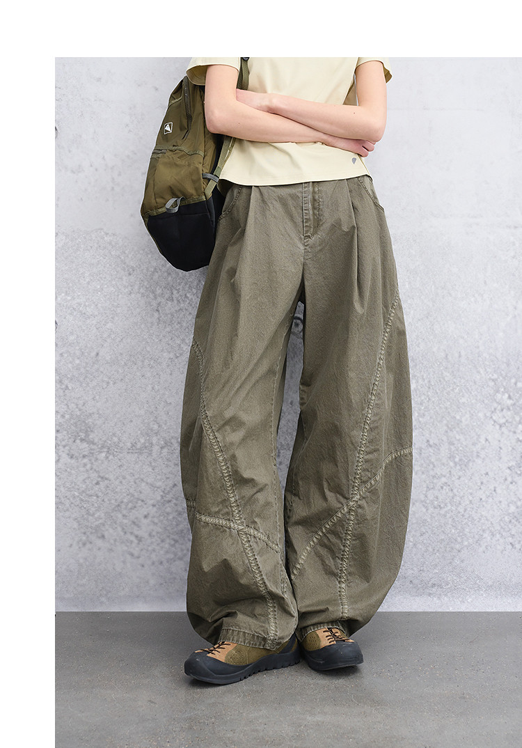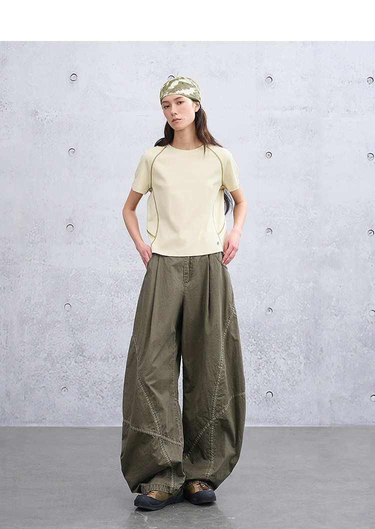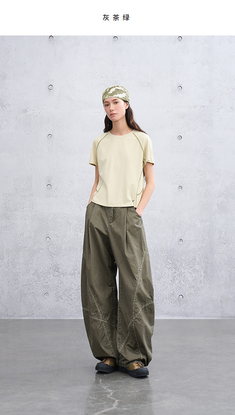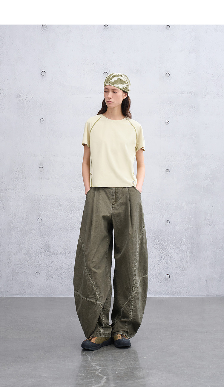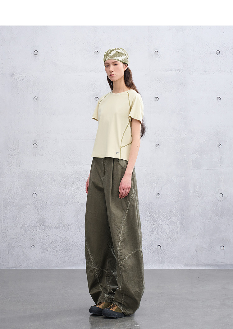 半圆/C6113029502S/拼贴宽松休闲弯刀裤