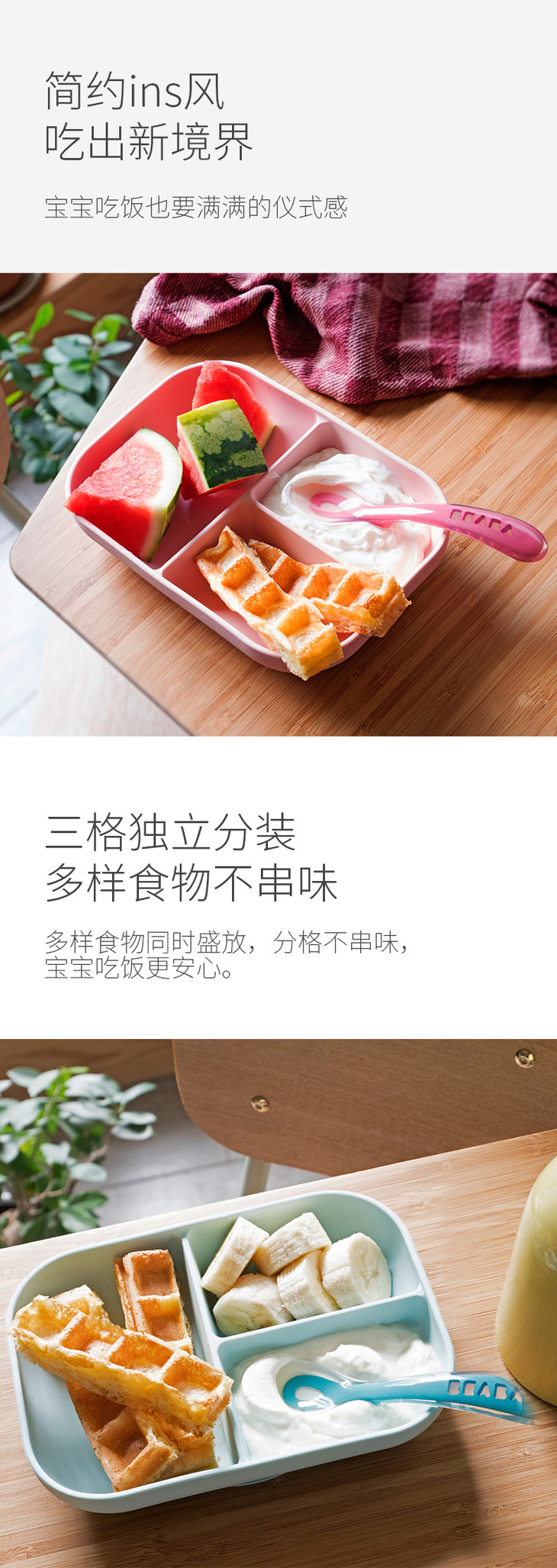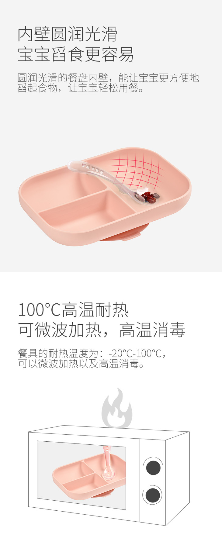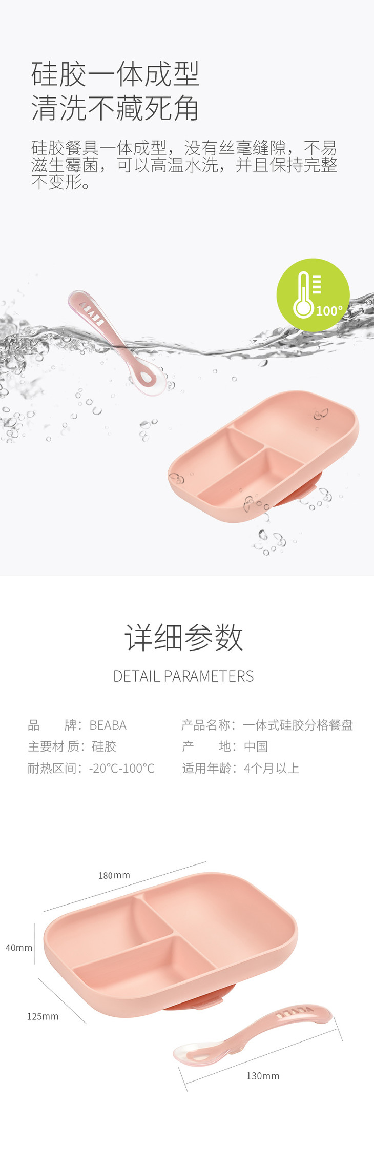 法国Beaba 硅胶餐具套装 硅胶分隔餐盘+勺子 婴儿辅食碗硅胶吸盘碗勺儿童餐具
