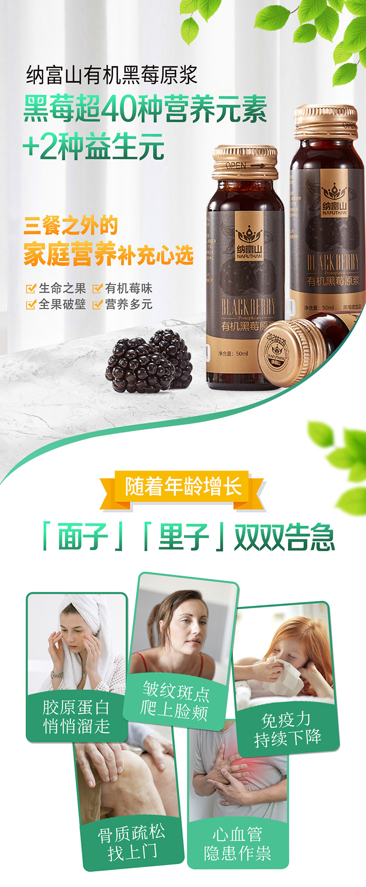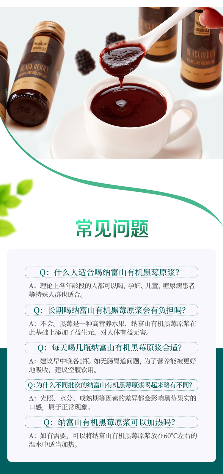 纳富山有机黑莓原浆50ml*15瓶/盒
