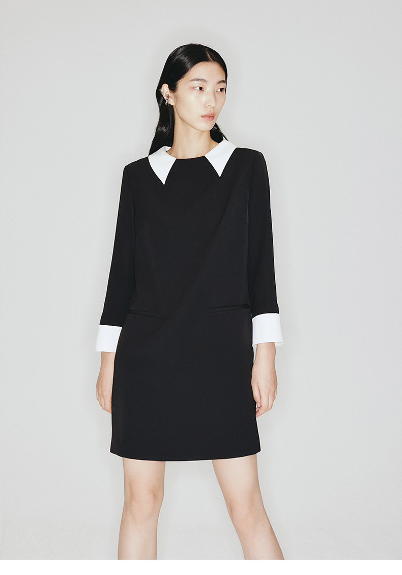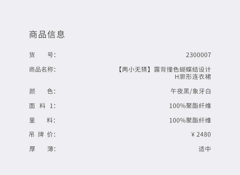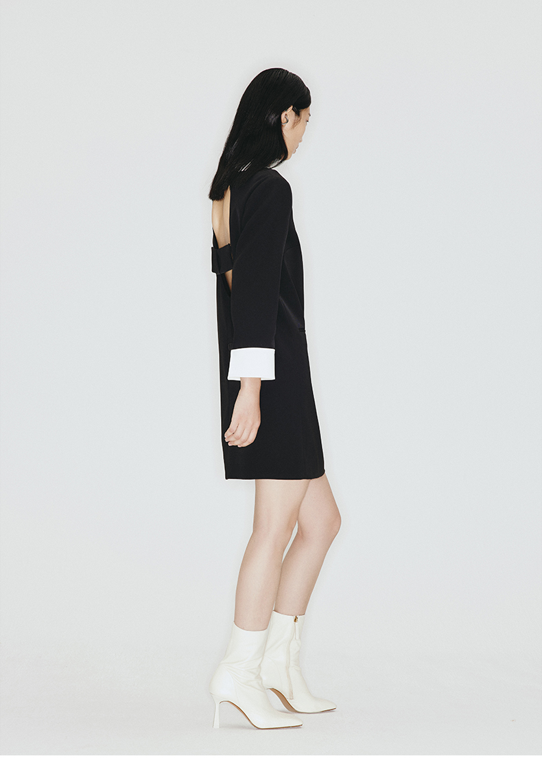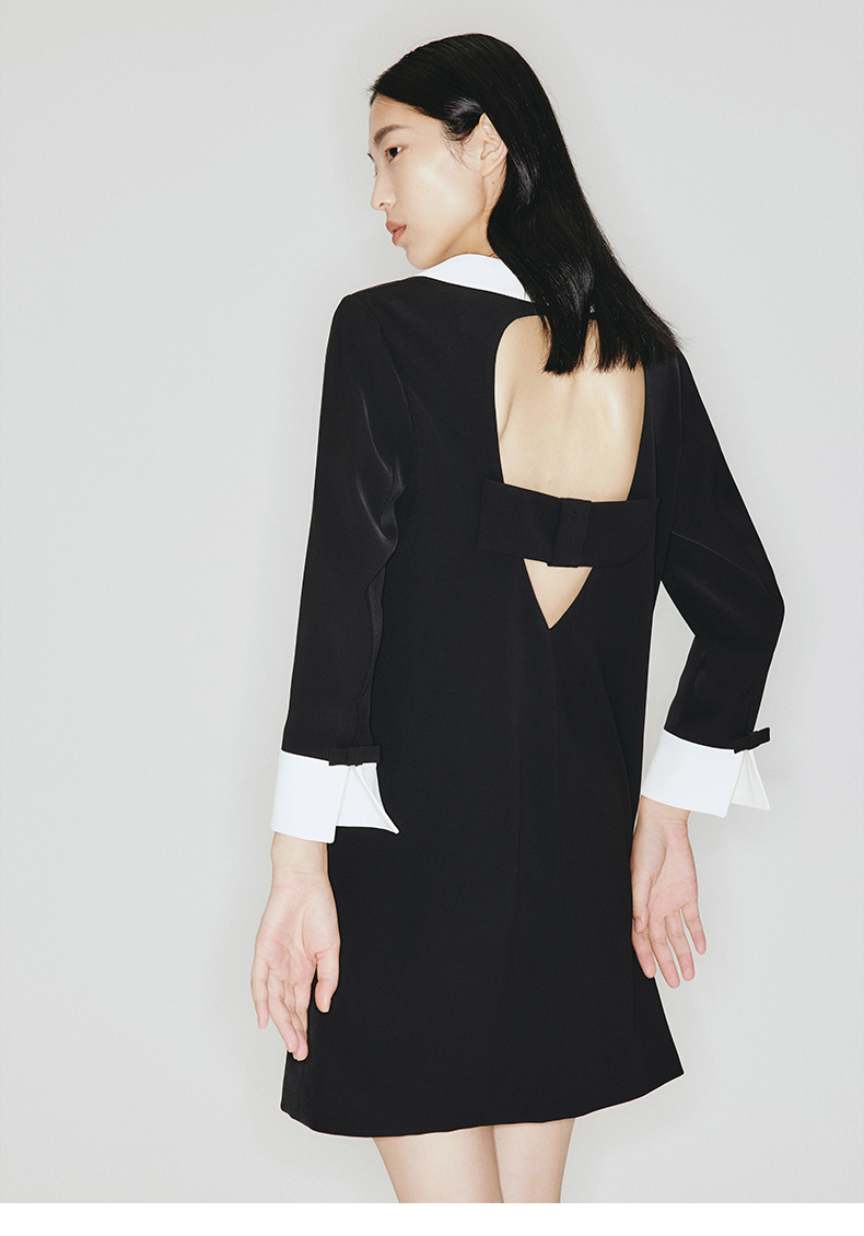 【两小无猜】露背撞色蝴蝶结设计H廓形连衣裙/2300007