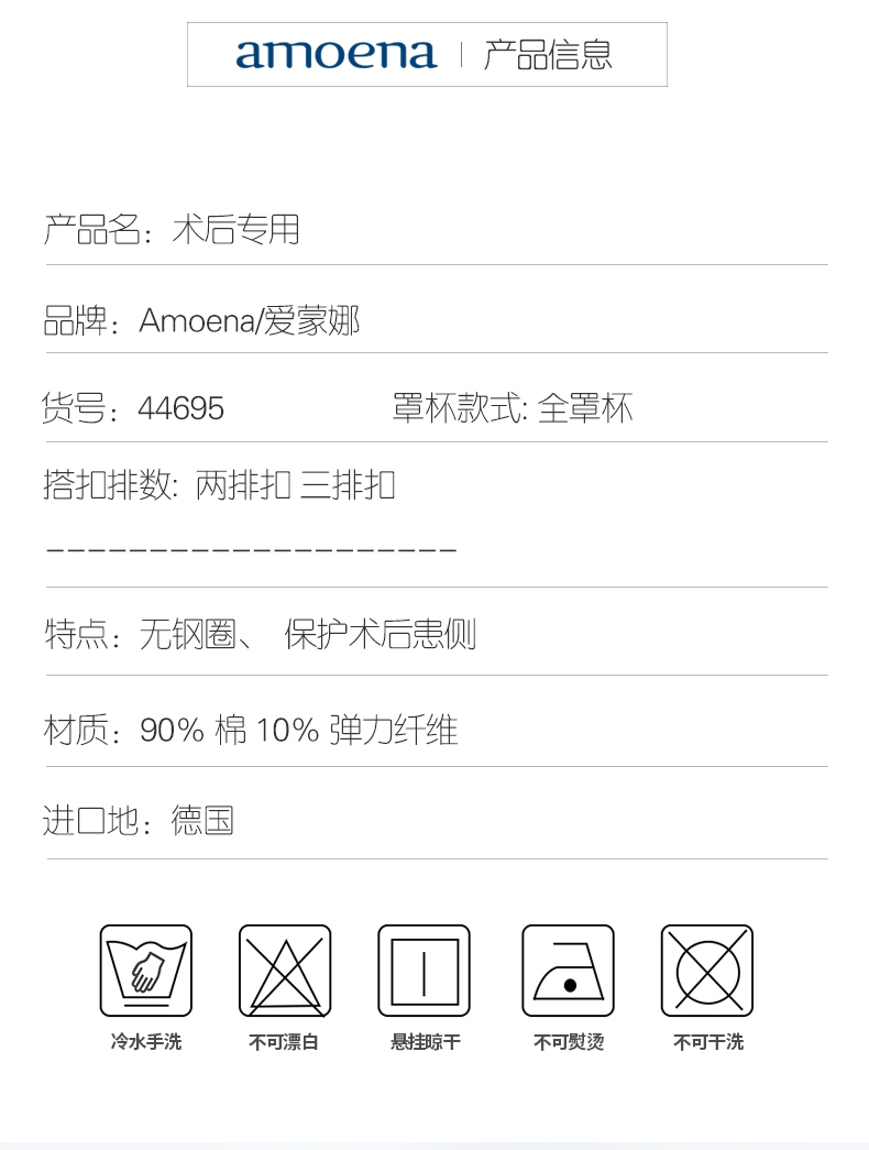 【优惠详情咨询客服】Amoena德国进口 爱蒙娜义乳文胸乳腺术后胸罩无钢圈舒适 44695