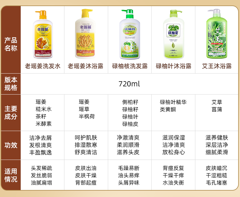 【香港直邮】万宁老瑶姜米酵素精华洗发水露 720ML 何首乌艾草控油去屑止痒生姜洗发露