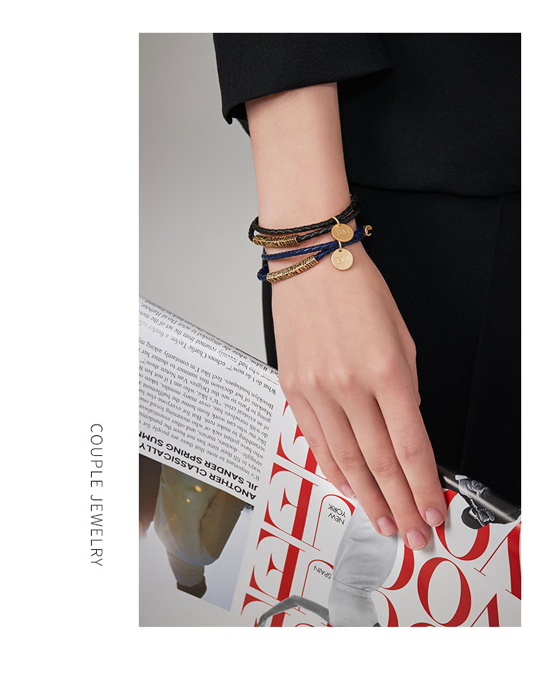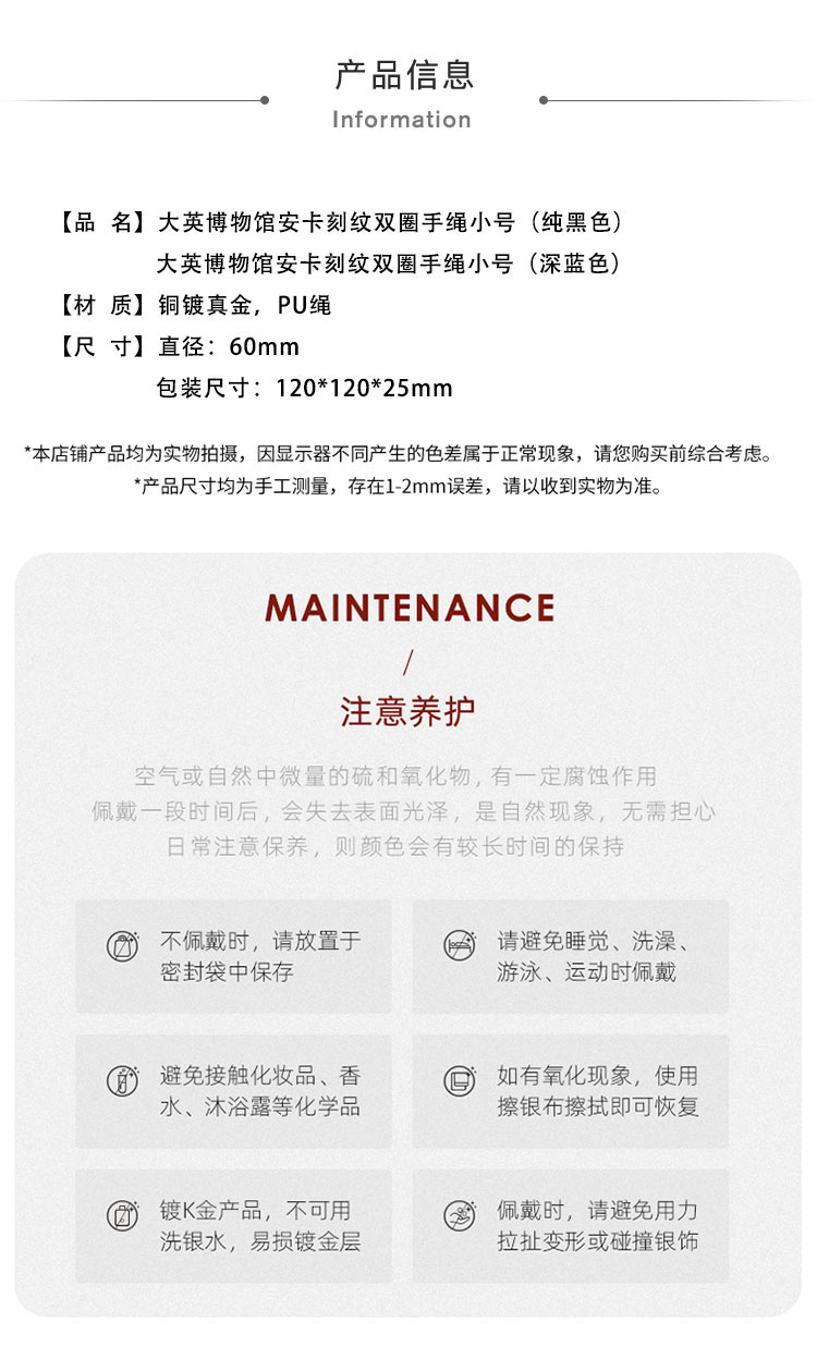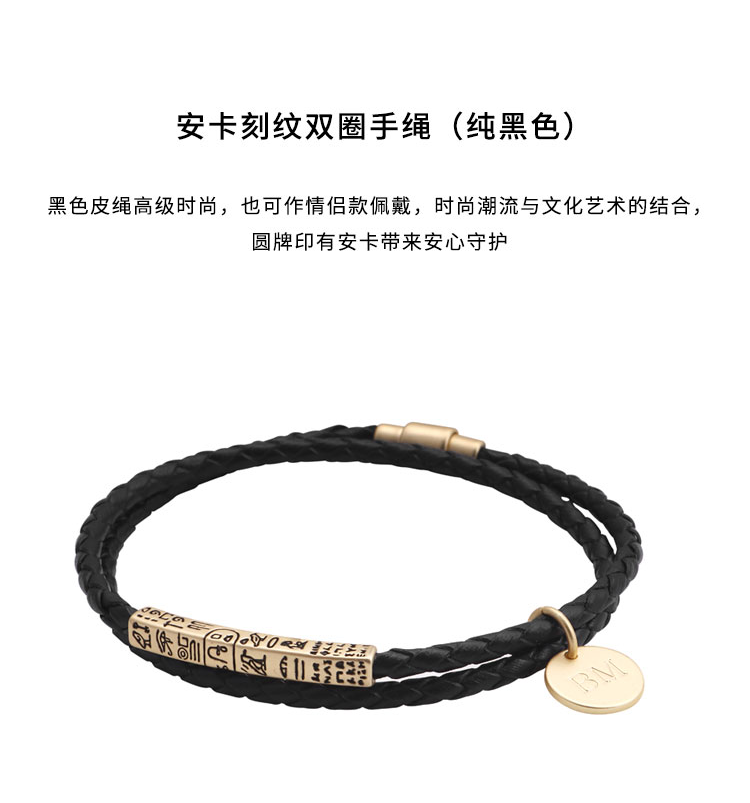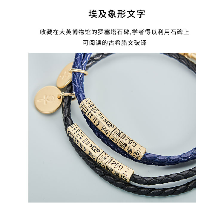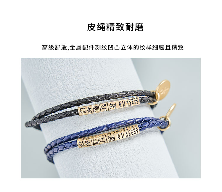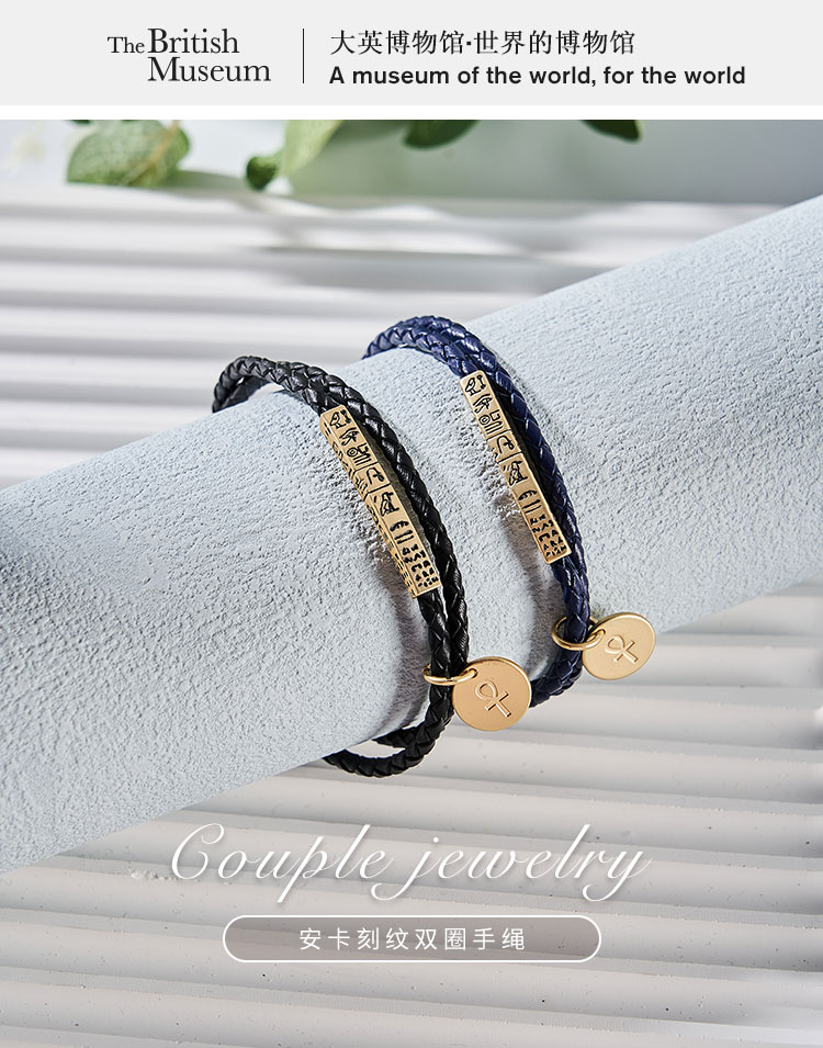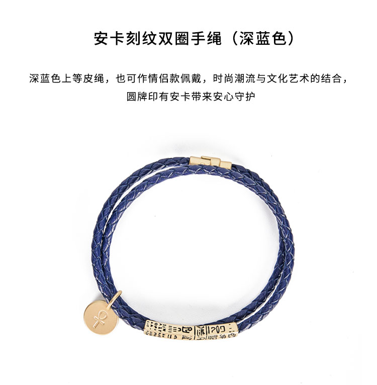 大英博物馆埃及系列 安卡刻纹双圈手绳 潮流款手链 深蓝色 黑色 男女通用款