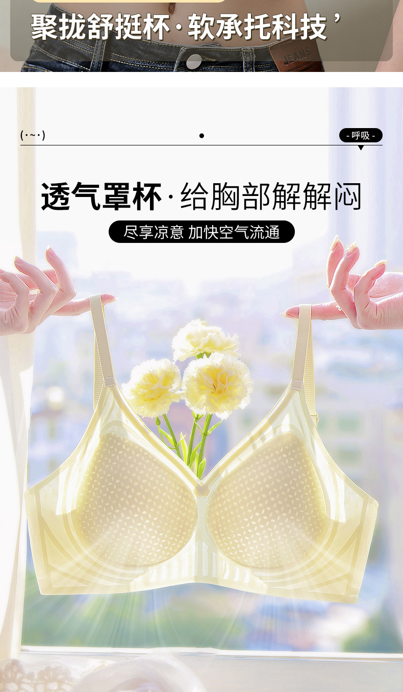 【透气罩杯!给胸部解解闷】无痕内衣女薄款夏季大胸显小胸聚拢无钢圈冰丝夏季凉感美背文胸罩。ry