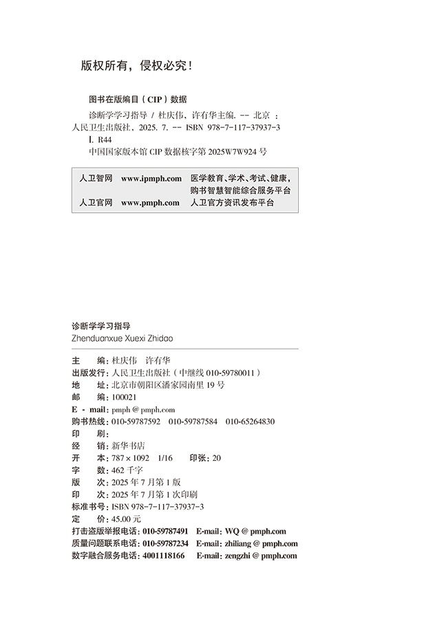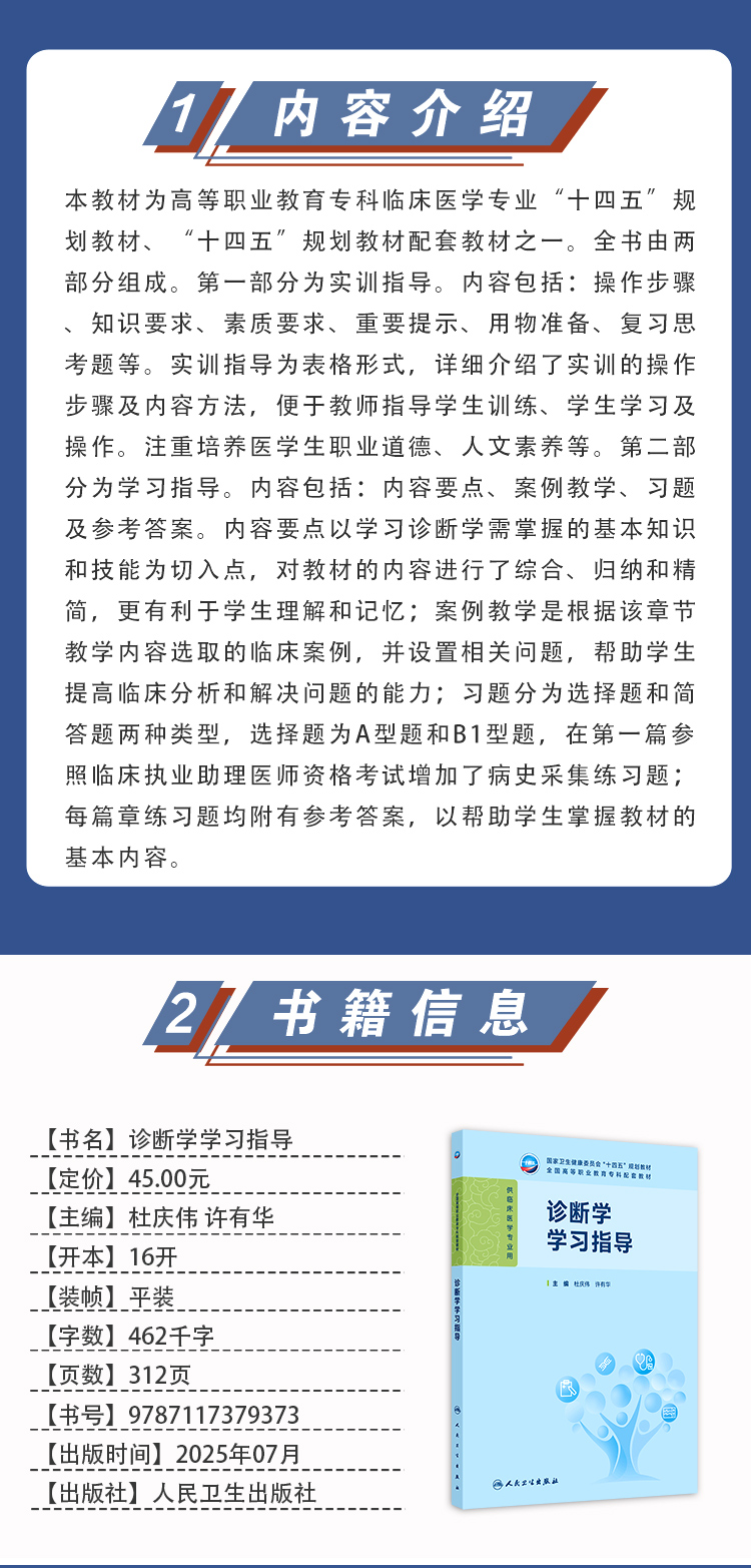 诊断学学习指导 十四五规划教材全国高等职业教育专科配套教材 杜庆伟 许有华 主编 供临床医学专业用9787117379373人民卫生出版社