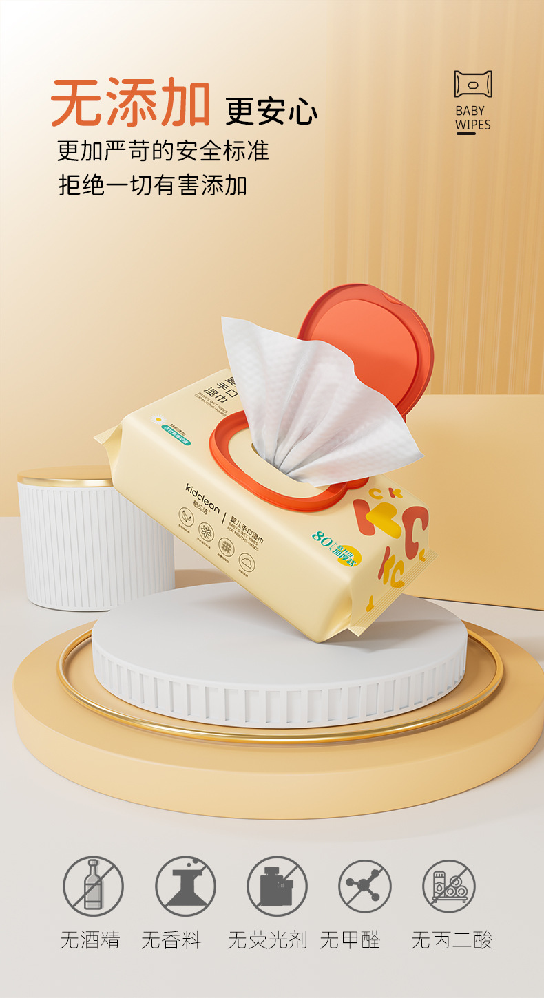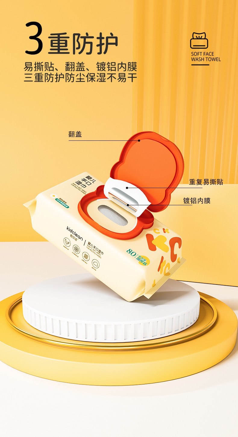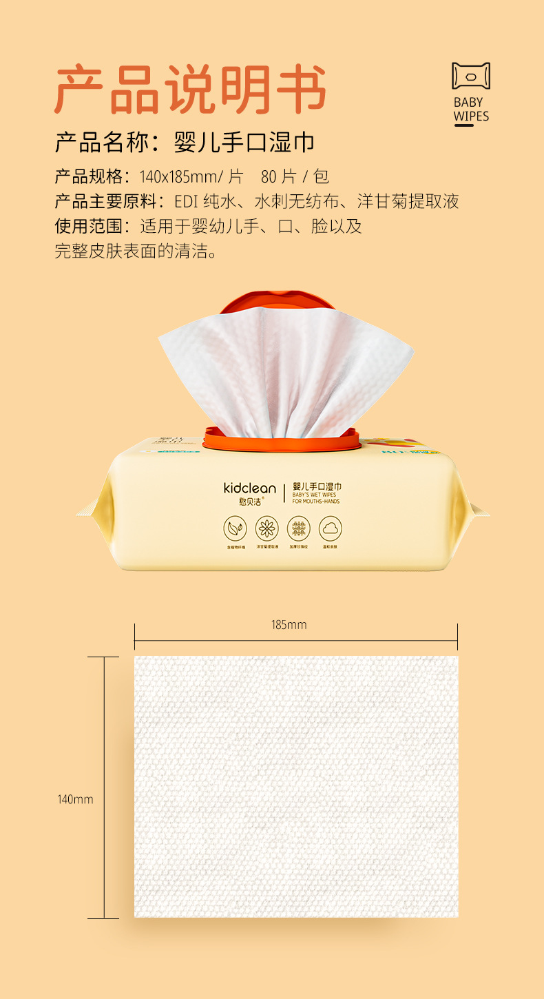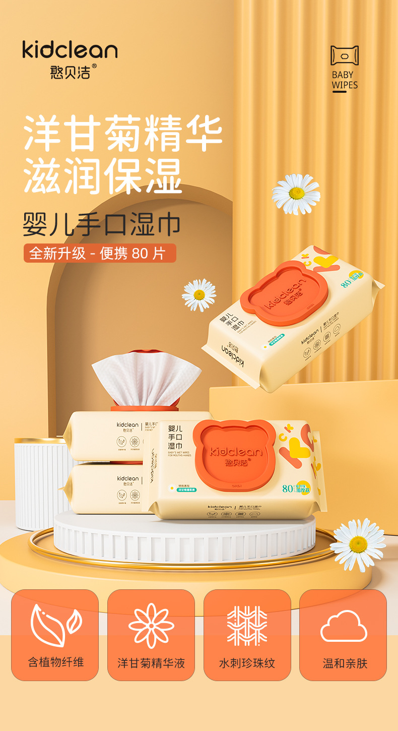 【3包装!憨贝洁80抽足数 婴儿手口湿巾】珍珠纹洋甘菊湿巾纸 宝宝湿纸巾