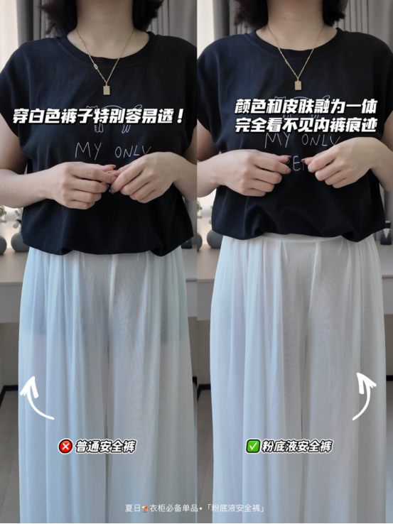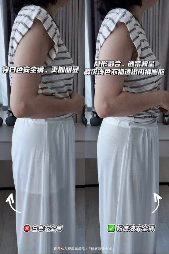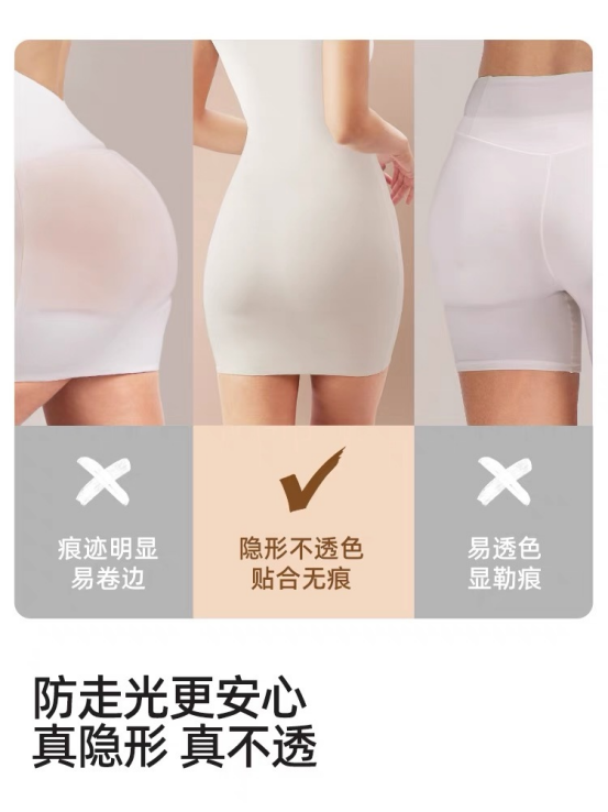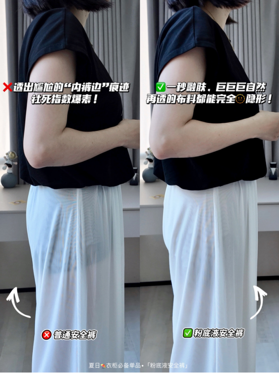 来看看👇 传统安全裤颜色突兀,透出🥹明显色差! 🤐同时透出尴尬的“内裤边”痕迹,社死指数爆表!