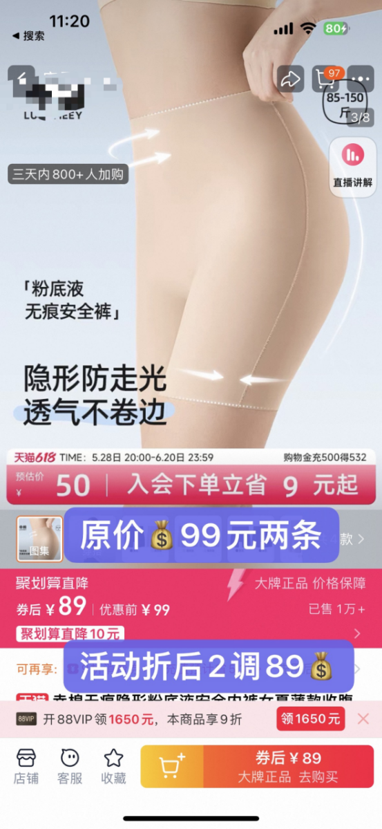 🔥📣“免叠穿”的粉底液安全裤,618🎁活动前2000名39.9💰🉐3件! ✅秒完截止‼️聚划算2条89还抢了10000+😂真的是……不拿白不拿!完完全全的福利🎁 粉底液安全裤 A/B/C组➕码数(L码80-120斤,XL码:120-160斤)