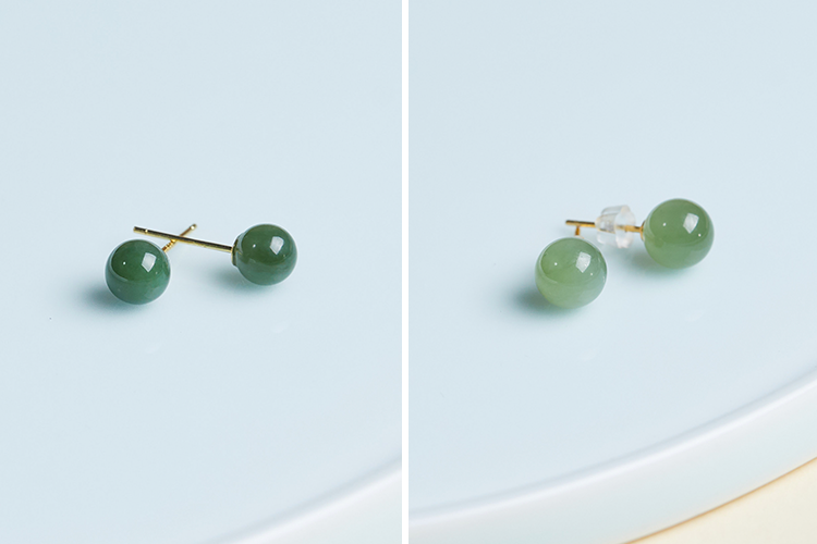 【无黑色矿点】碧玉菠菜绿素珠耳钉 (5.5mm)/(8mm)