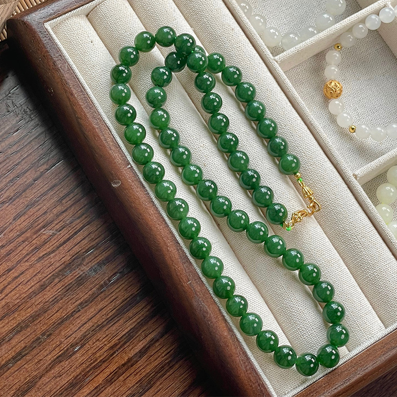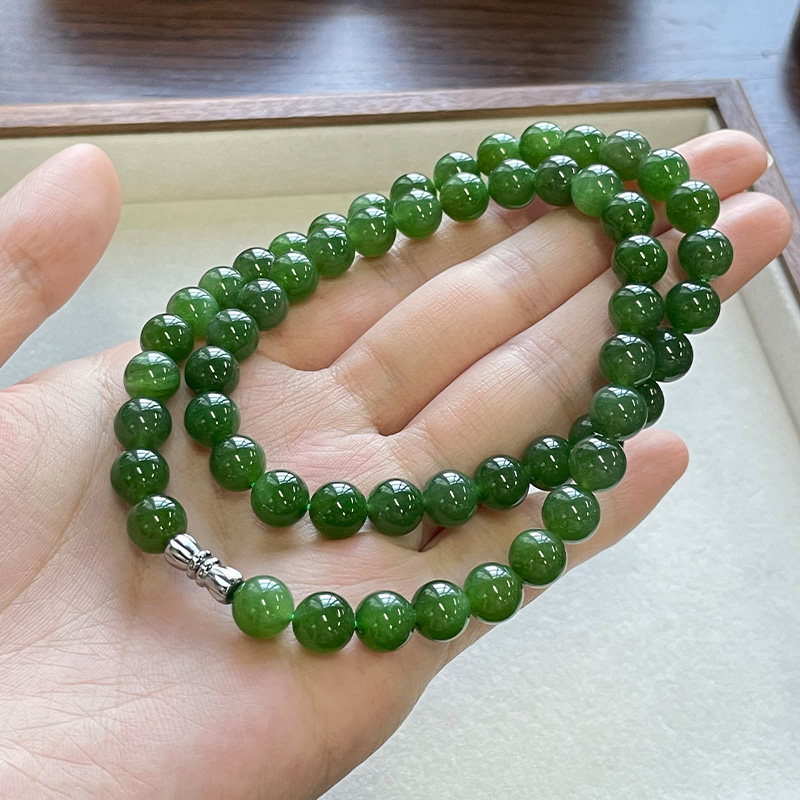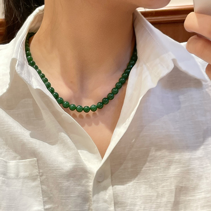 【无黑色矿点】碧玉素圈珠链(8mm)