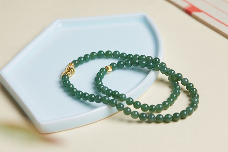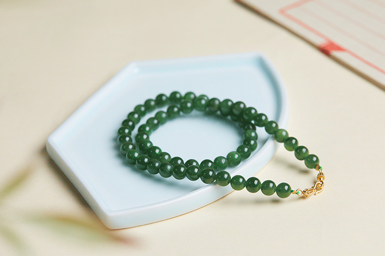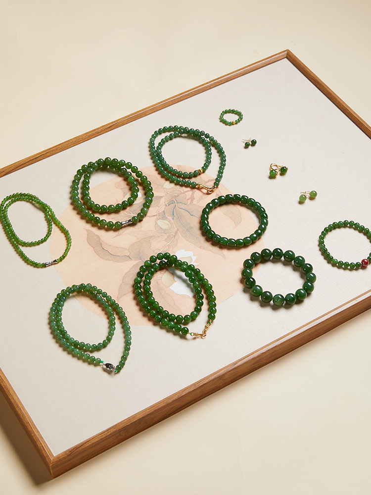 这次我们所选的碧玉颗颗饱满油润,没有裂痕,绿得内敛稳重,透着一股盎然的生命力。