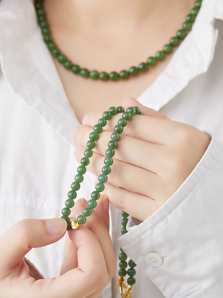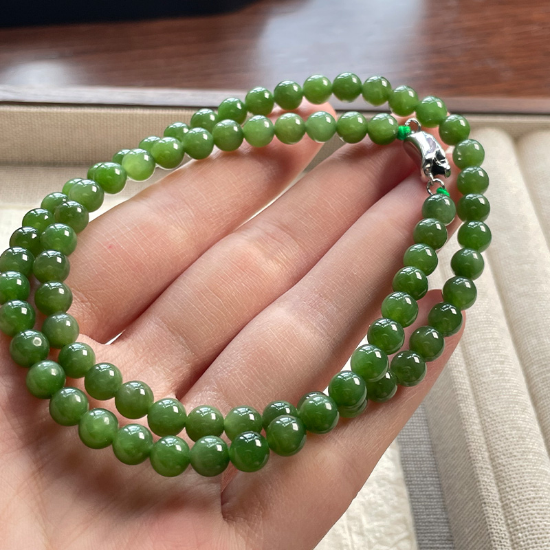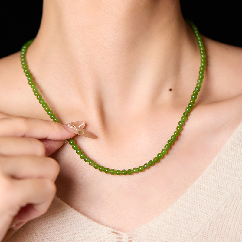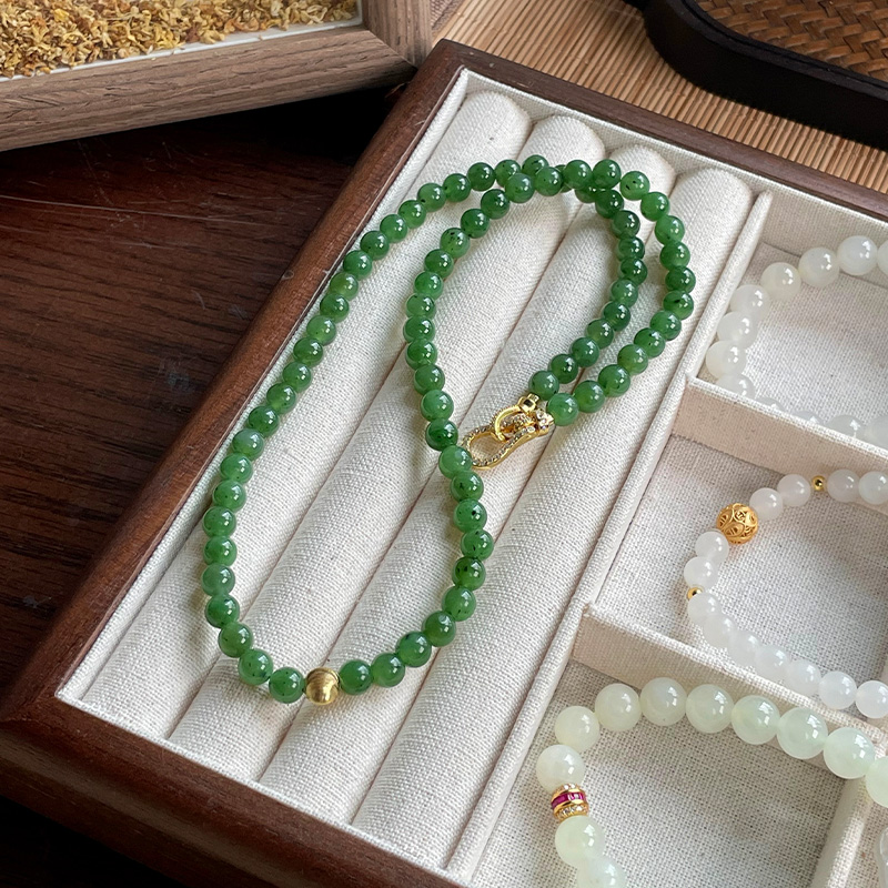 【无黑色矿点】碧玉素圈珠链(6mm)