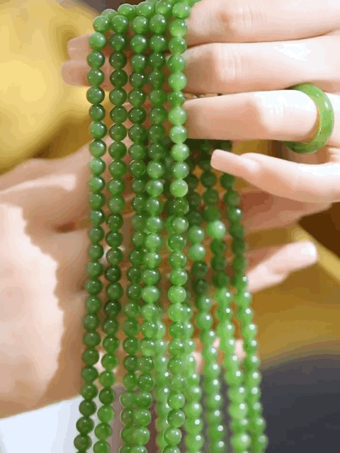 但对于碧玉,一旦有丁点裂纹,肉眼立马可见。这批积攒了多年好料,颗颗细选,打磨出出几乎没有裂纹玉珠。