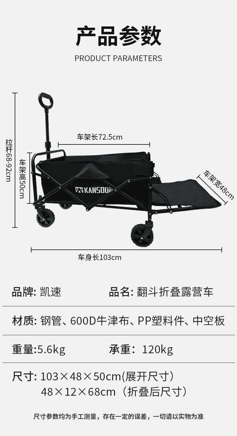 凯速 户外翻斗折叠野营推车HLC06