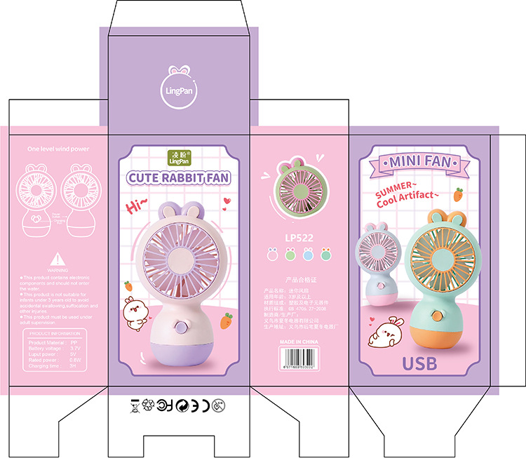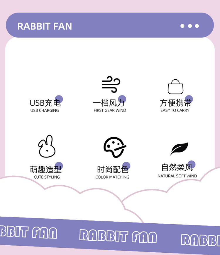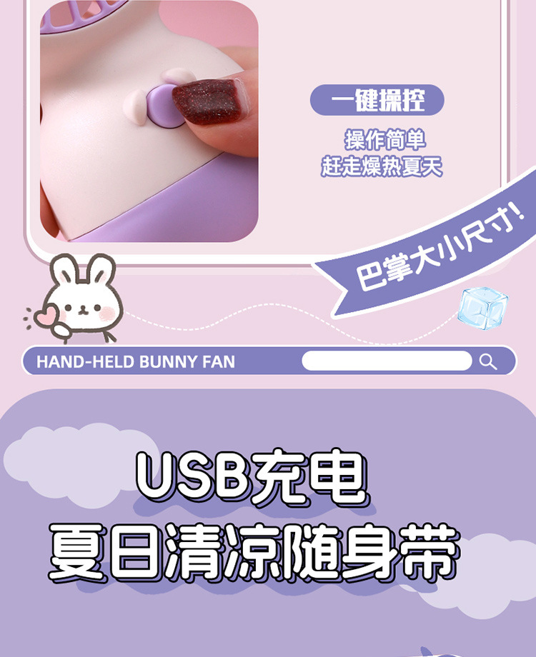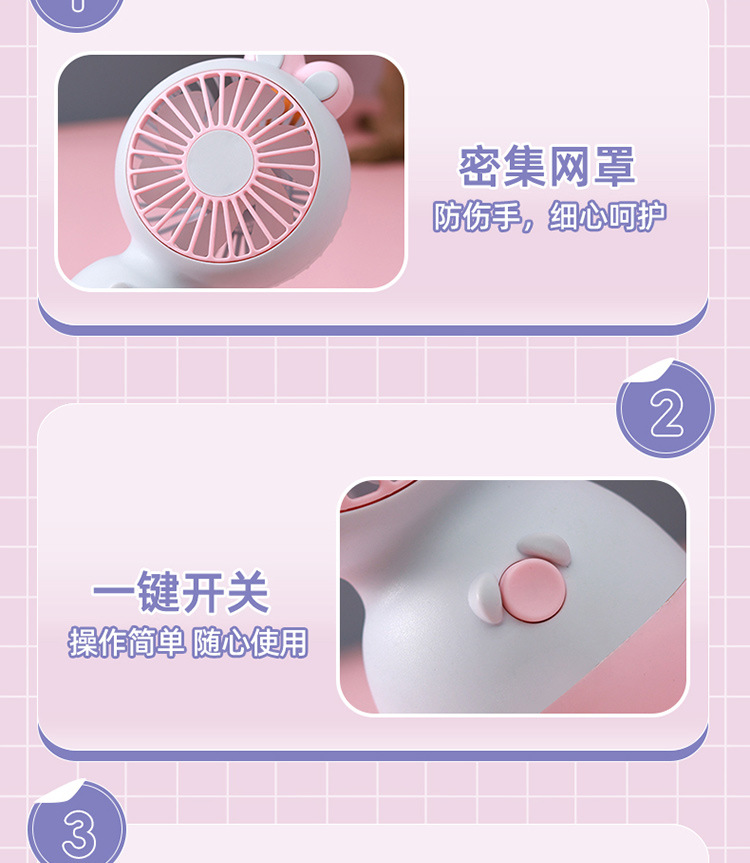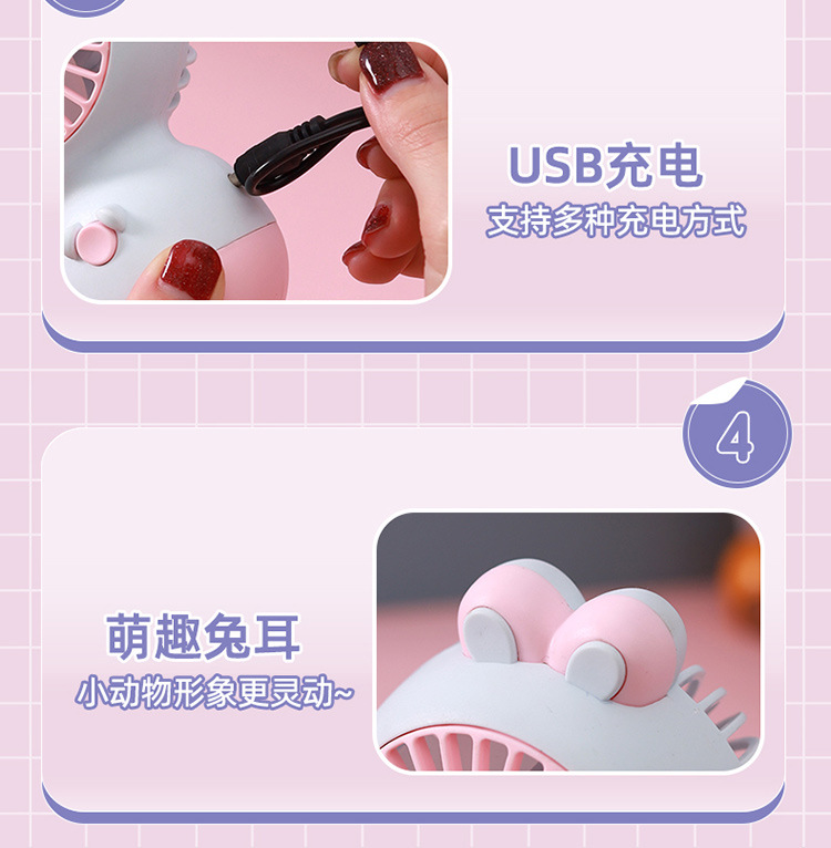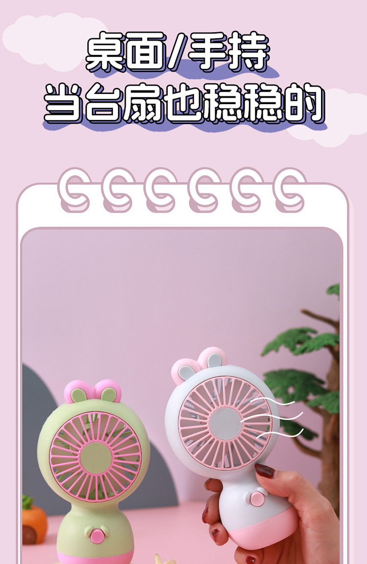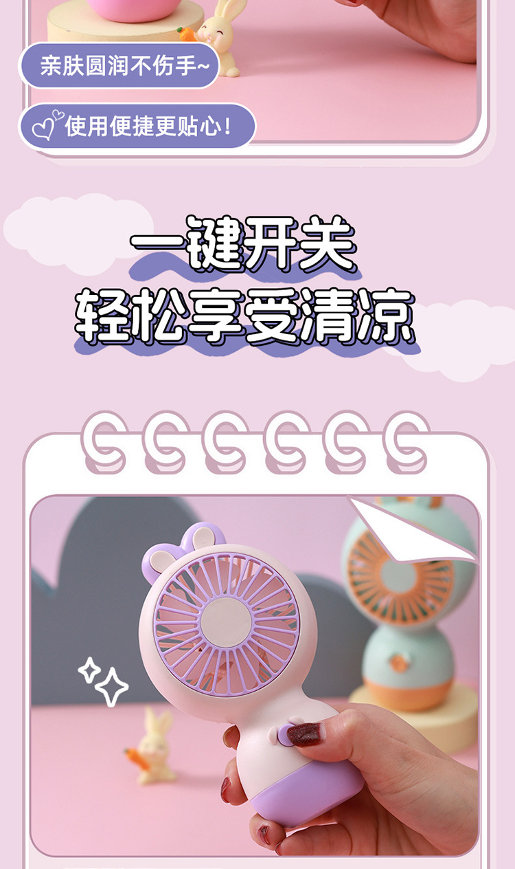 【小巧轻便!噪音小】马卡龙色软萌兔子手持小风扇 学生夏季节日奖品小礼品电风扇。xb