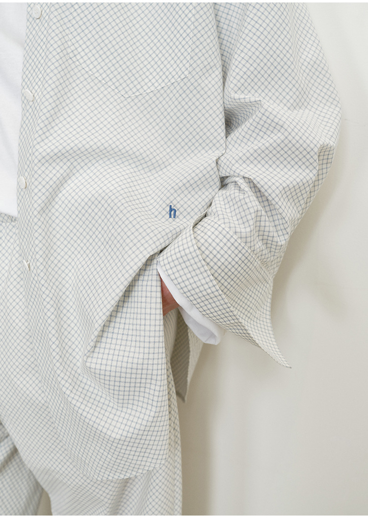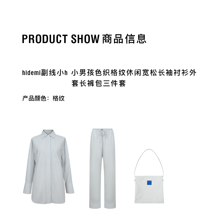 hidemi副线小h 小男孩色织格纹休闲宽松长袖衬衫外套长裤包三件套