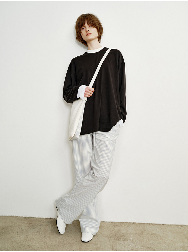 hidemi副线小h 简约U领松弛宽松T恤上衣
