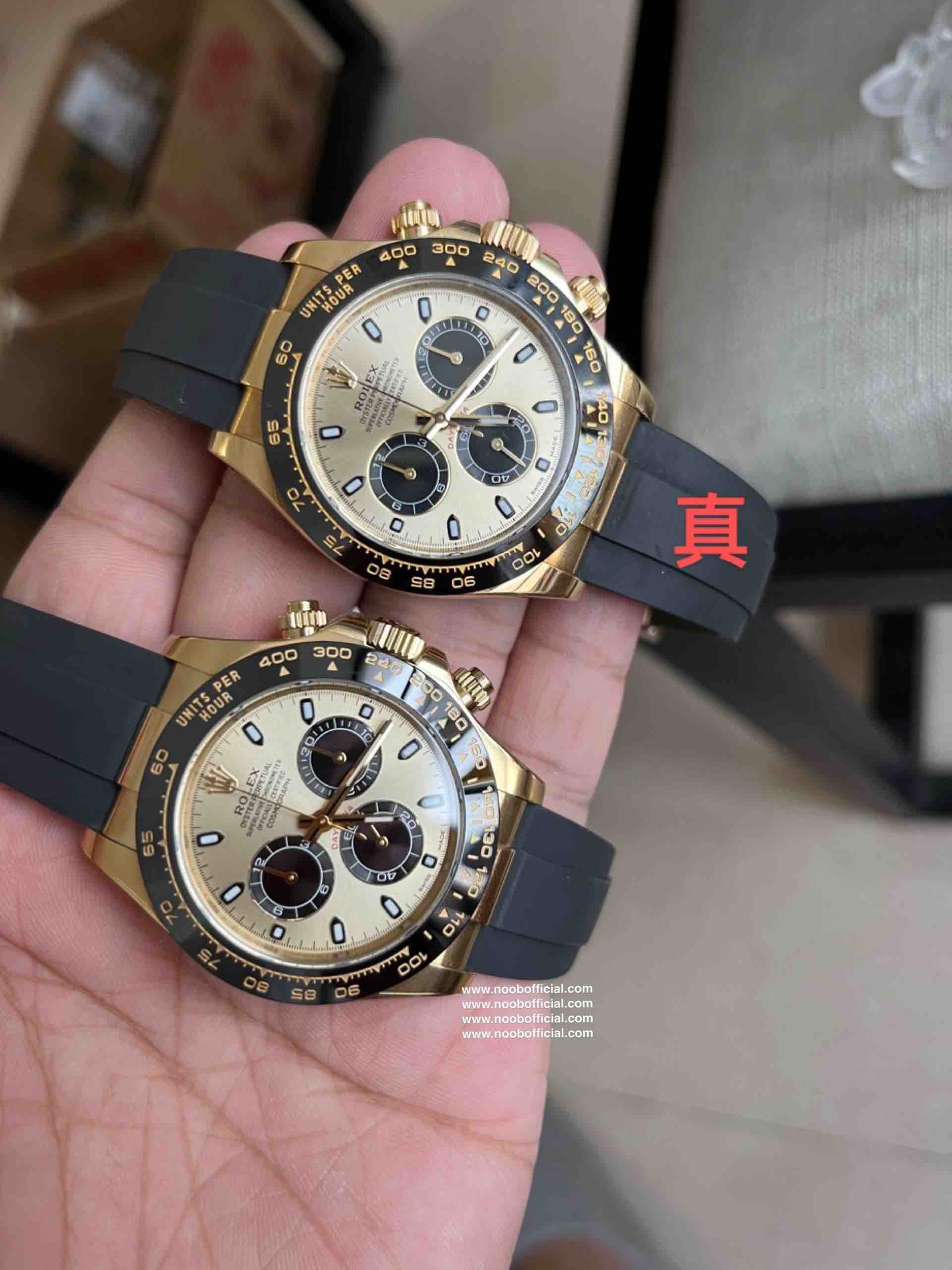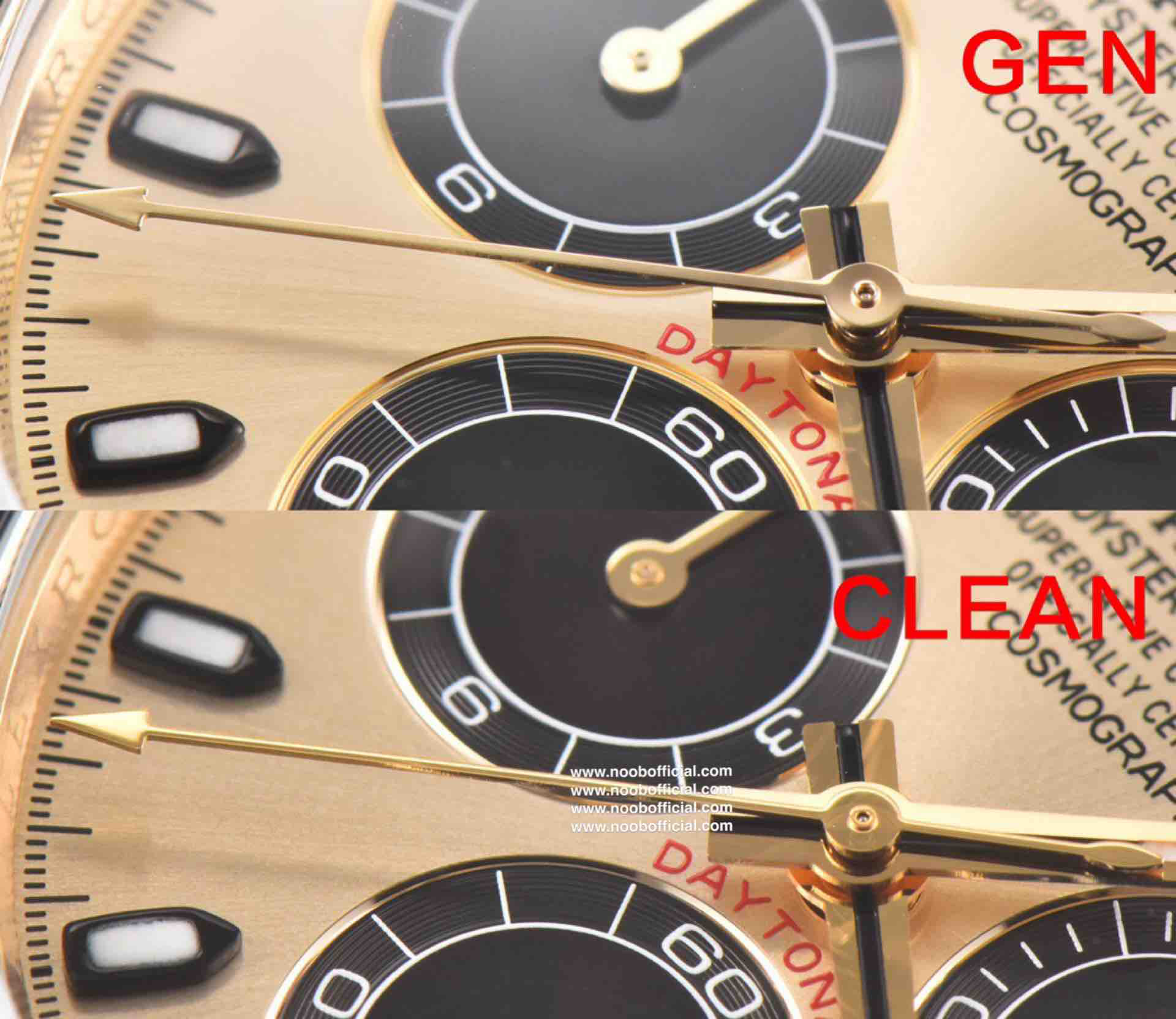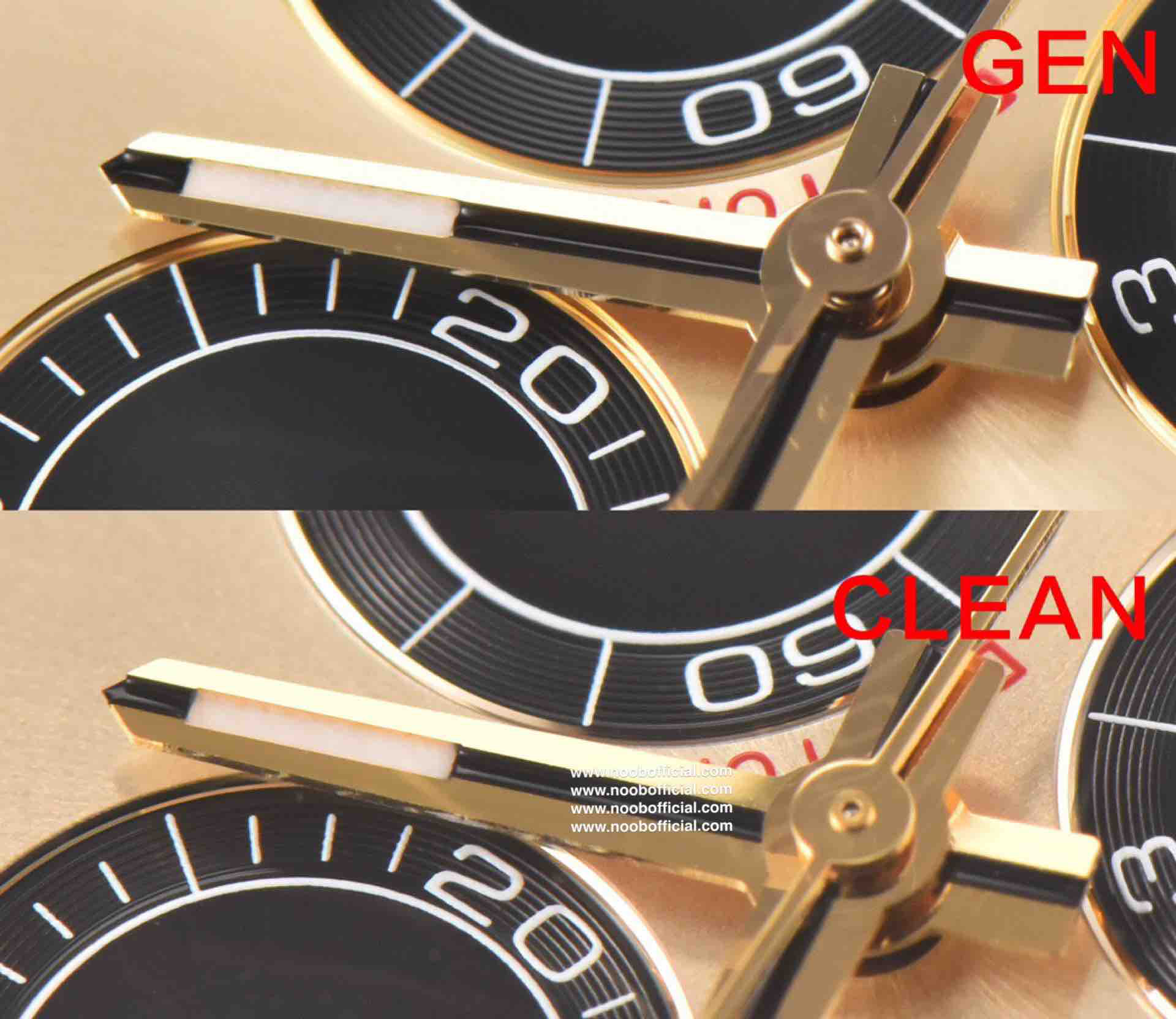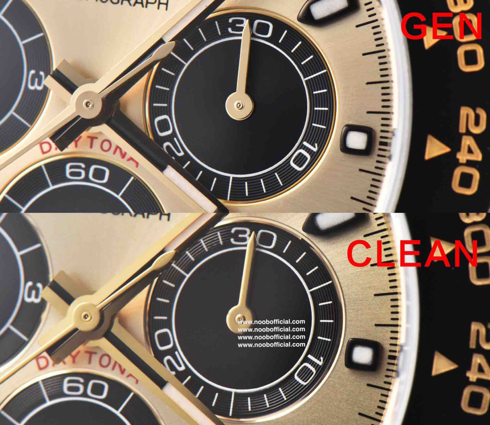 热门的 黄金余文乐胶带迪通拿 本次116519特点 1: 购买两只同款水泥灰迪通拿开模 一只拆散抄数,另外一只备用,这个白金熊猫的数字刻度工艺异常复杂所以成本非常之高 3:字钉全面升级,平面位置做的足够平,侧面位置保留圆角,完全跟足原装。 4:玻璃问题,原装玻璃并非高透,因为是平面玻璃所以非常容易粘指纹。所以玻璃太透反而显得很假,后续可能会升级成高透玻璃,毕竟客户喜欢,这可能是最后的倔强了吧。 5:表壳因为是贵金属款,所以底面4个角有750/圣伯纳狗头刻印。这个部分这次也是铆足了劲去还原。像不像下方也有详细的对比图。唯一欠缺的是圣伯纳狗头上面有一撮狗毛,目前还无法做到。这也是一个缺憾吧。 6:表壳两侧为单独制作的头粒。相对普通116500钢壳款式,这个地方无疑是增加成本最多的地方,完全拆卸原装 一比一制作。完美互换。 7:胶带部分 使用c厂胶带。并非噱头。下方也有详细对比图。 8:胶带扣部分 依旧使用ar表扣。开合手感以及细节同钢带一致。 c厂做东西出奇的慢,但是我们是在用心的做好每一个配件,不会照着官方彩图依葫芦画瓢。包括本次也只计划出水泥灰这一个款式。因为后面每出一个配色都会附上真假对比图来显示对于迪通拿这个款式的慎重。希望大家可以耐心等待。因为后面的款式 款款皆为精品。包括单价也会比同行高处一些,仁者见仁智者见智吧。希望各位表友在选择产品的时候 可以买到最中意的那只表,即便不是c厂出品。
