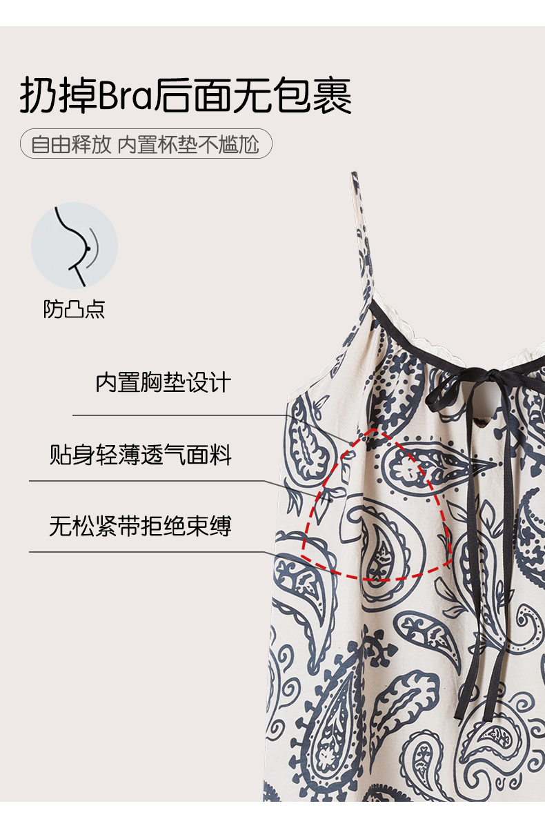 可人儿带bra睡衣夏季凉感莫代尔女士吊带阔腿长裤可外穿家居服