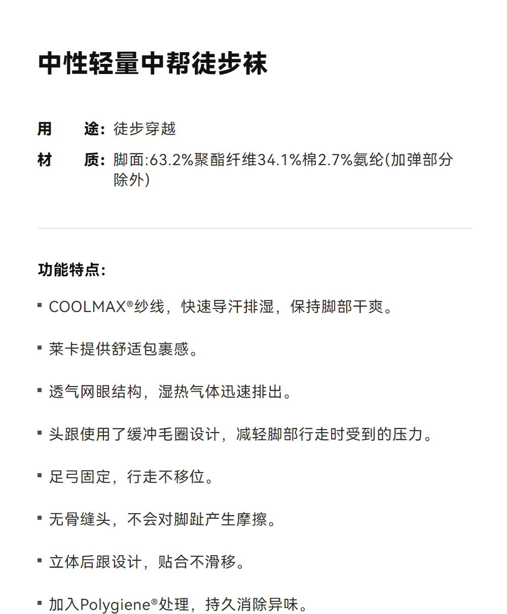 KAILAS凯乐石 中性轻量中帮徒步袜 KH2502001【Z】