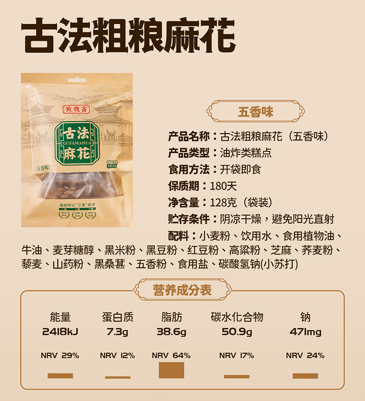 致魏斋古法粗粮麻花(五香味)
