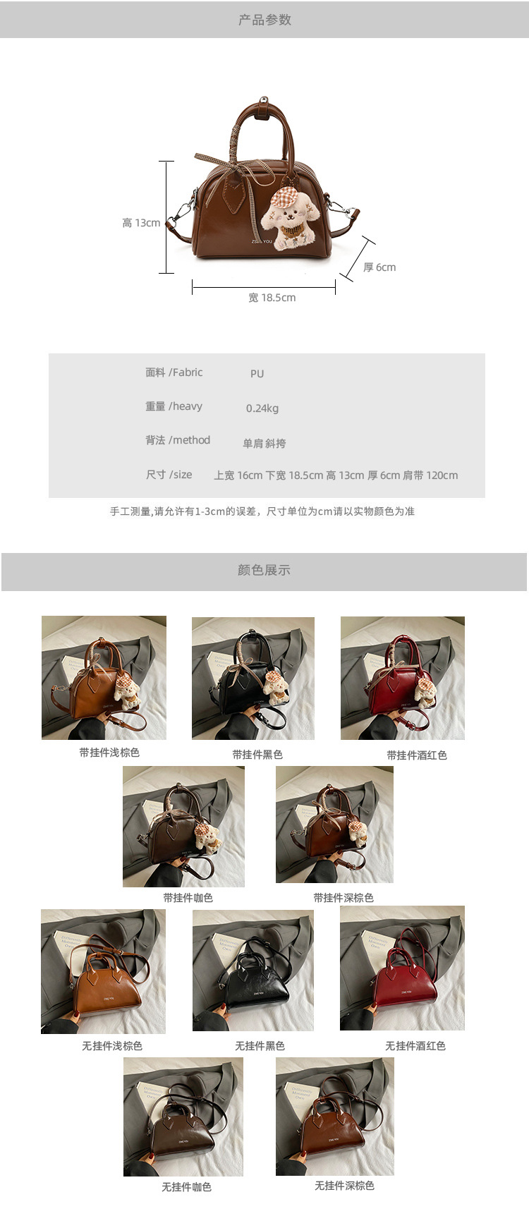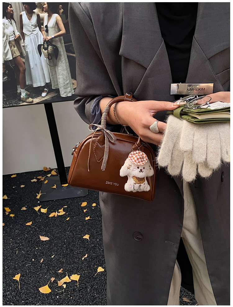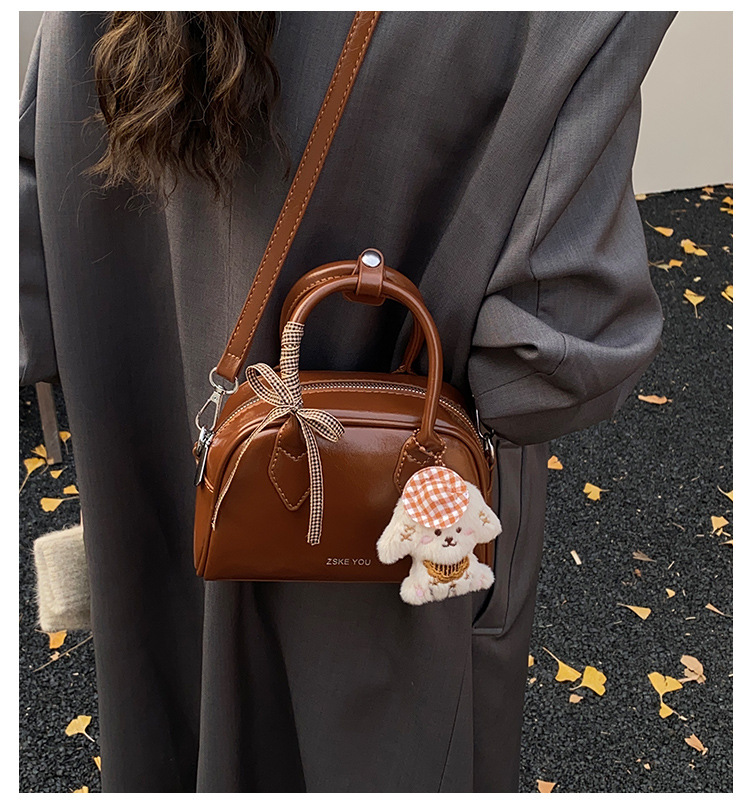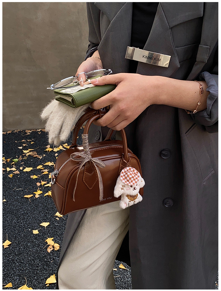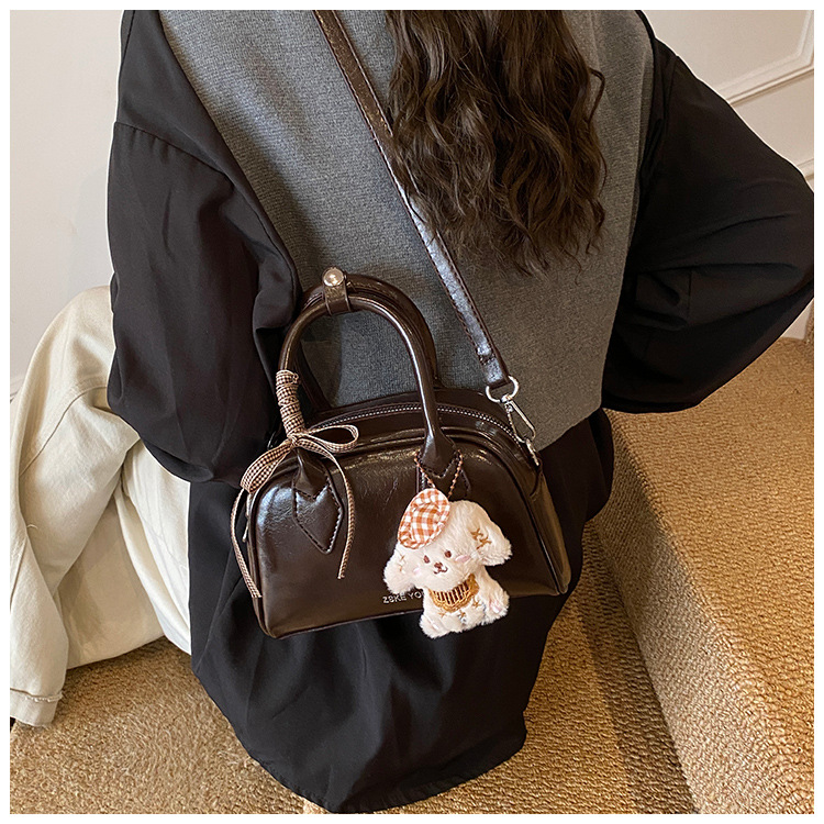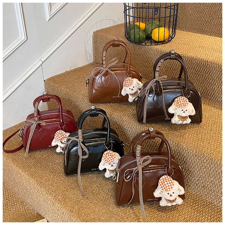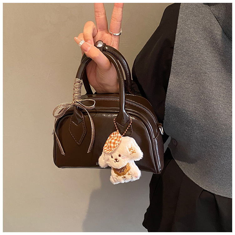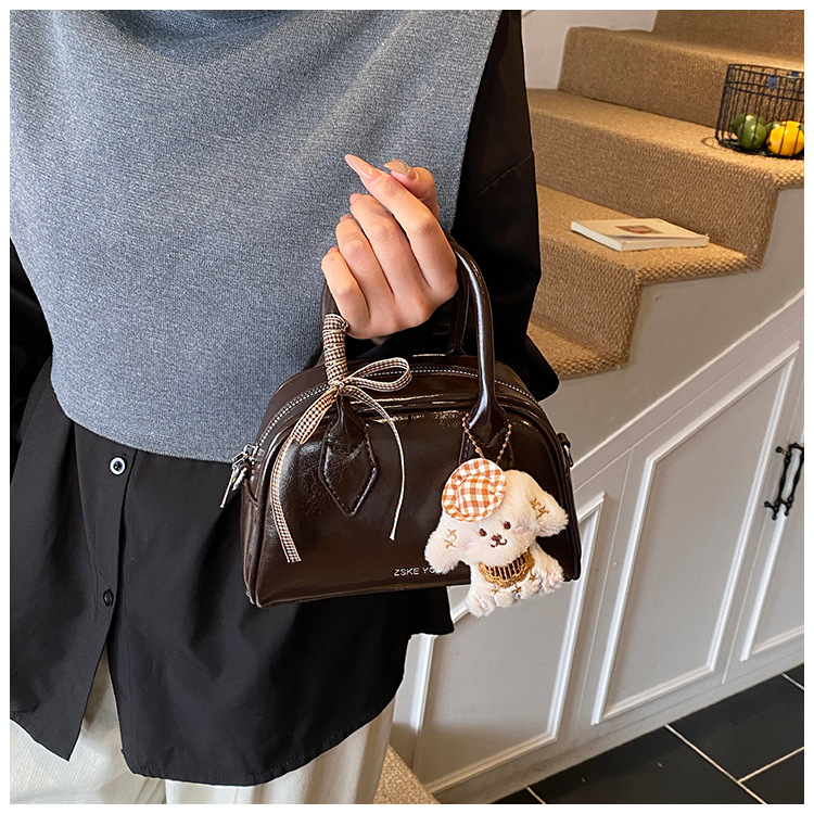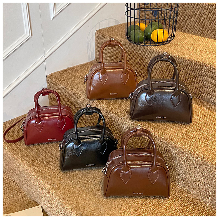 【YW】无忧购高级感油蜡皮小包包女百搭斜挎包百搭手提保龄球包(截单后5-7天发货)