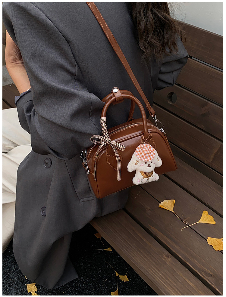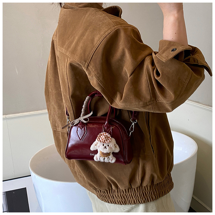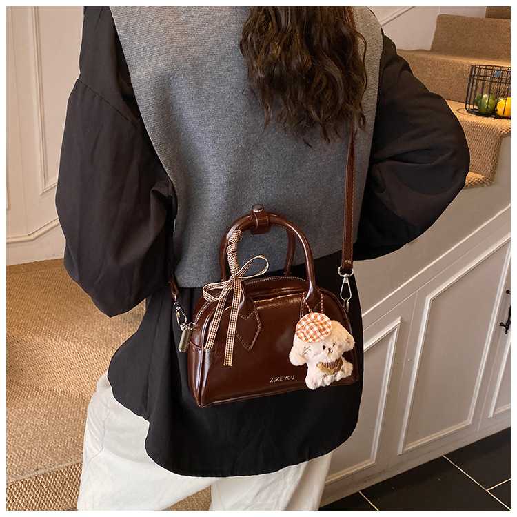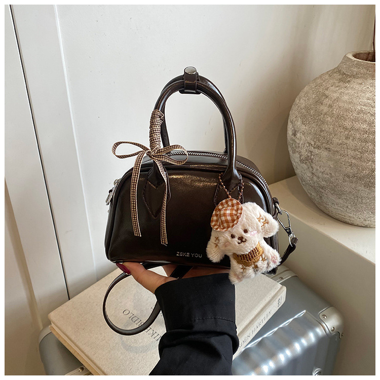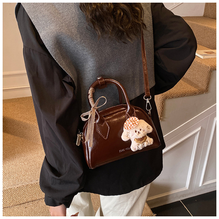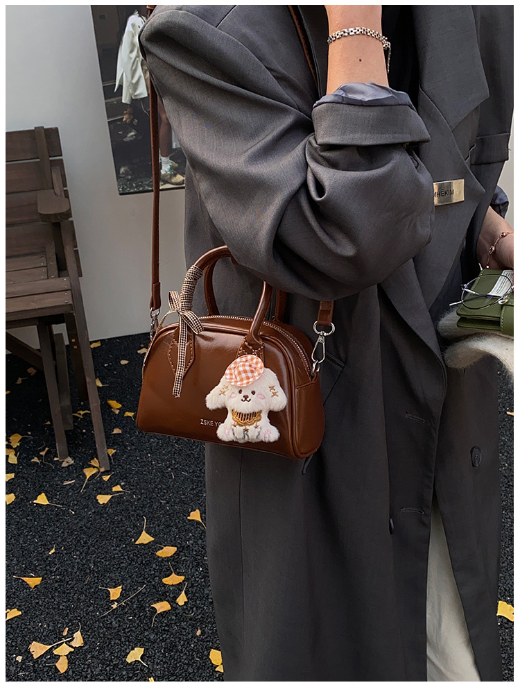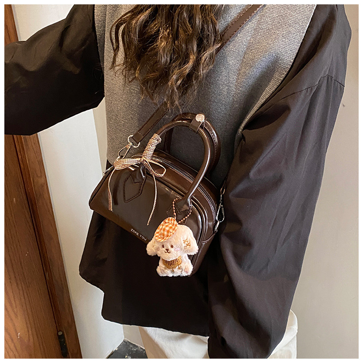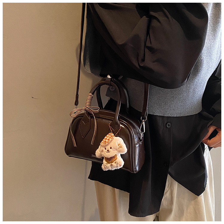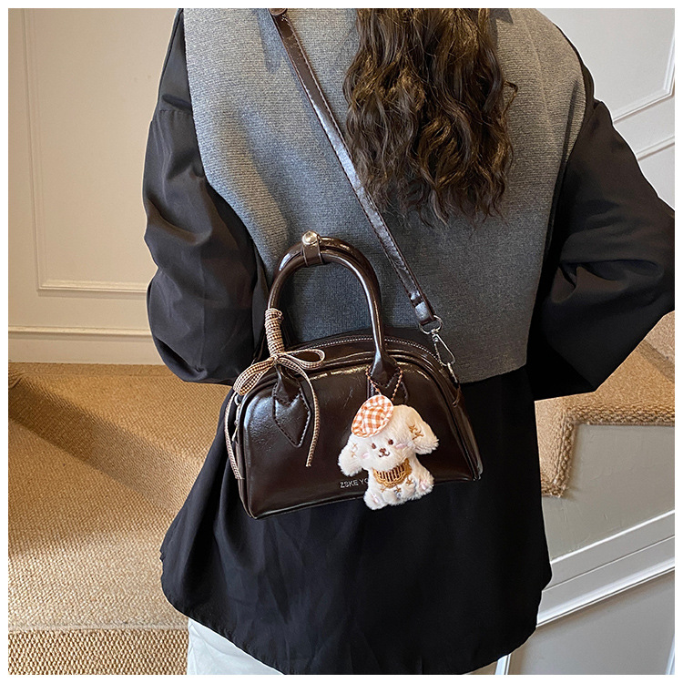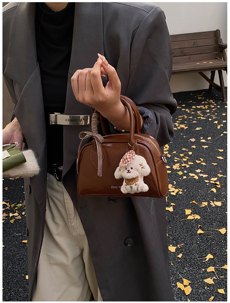 【YW】无忧购高级感油蜡皮小包包女百搭斜挎包百搭手提保龄球包(截单后5-7天发货)