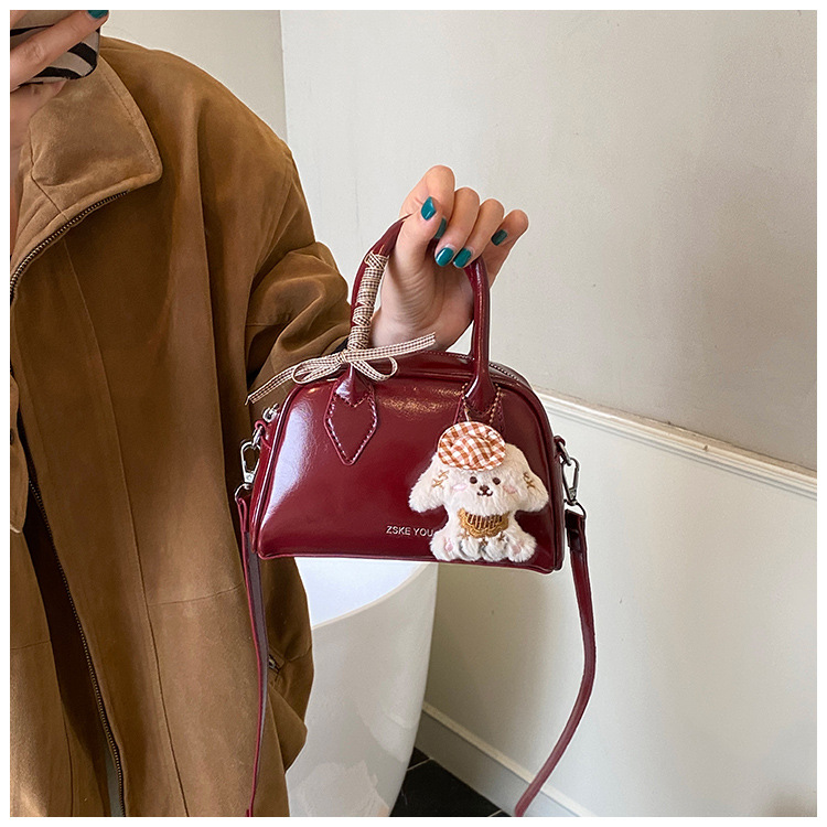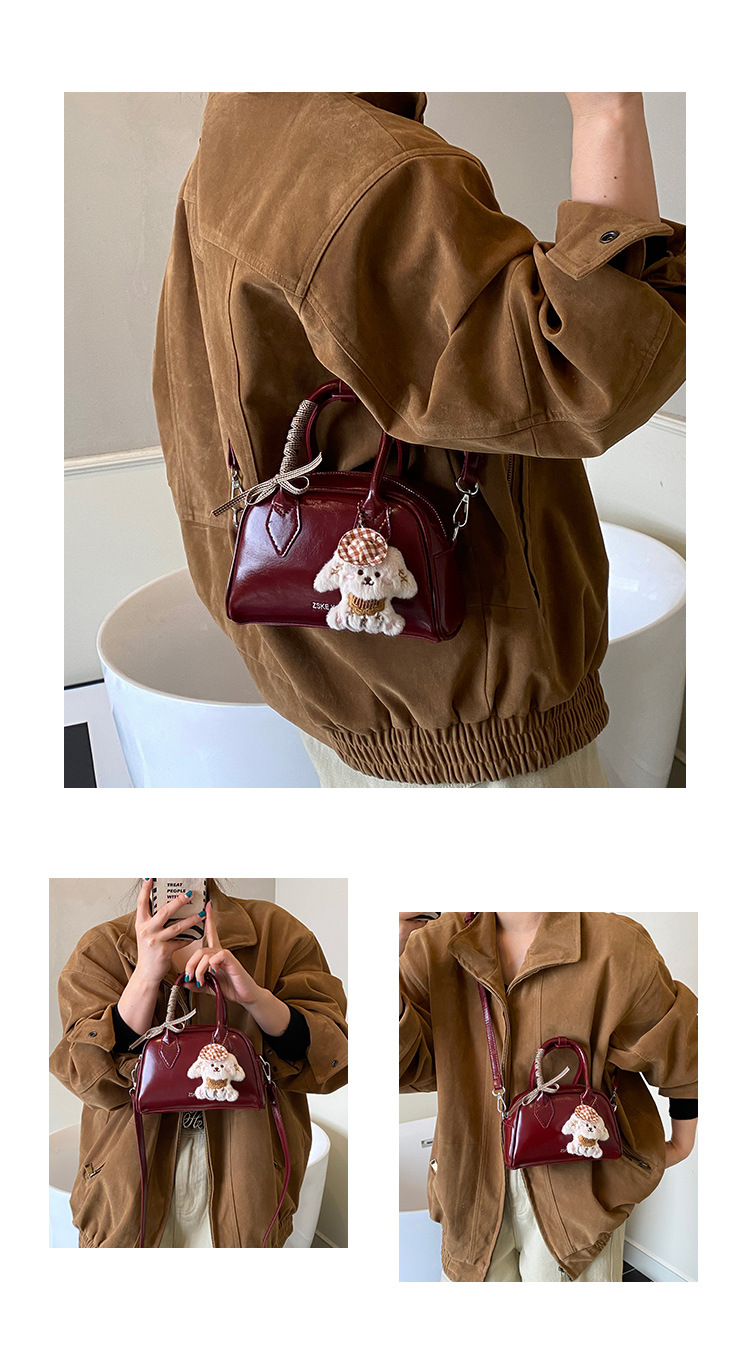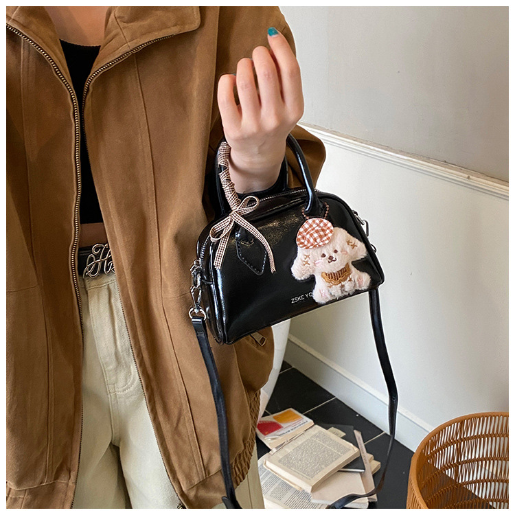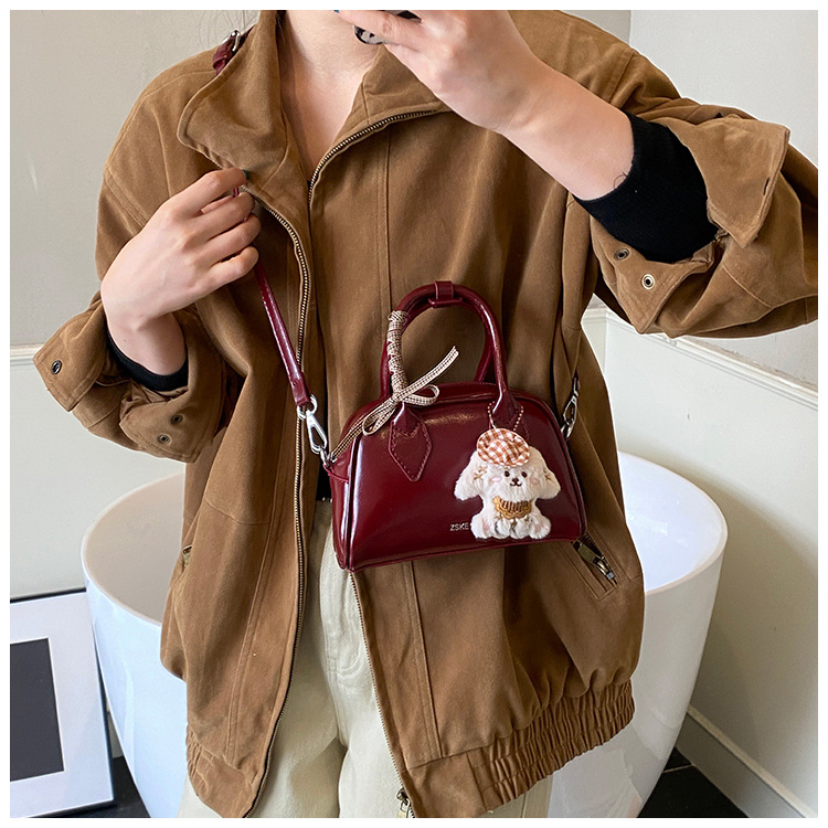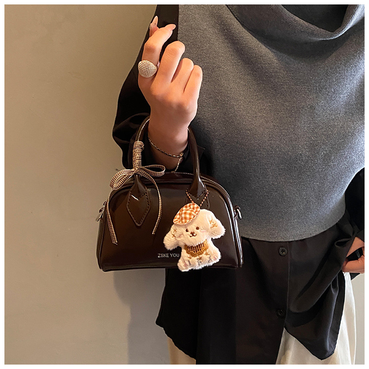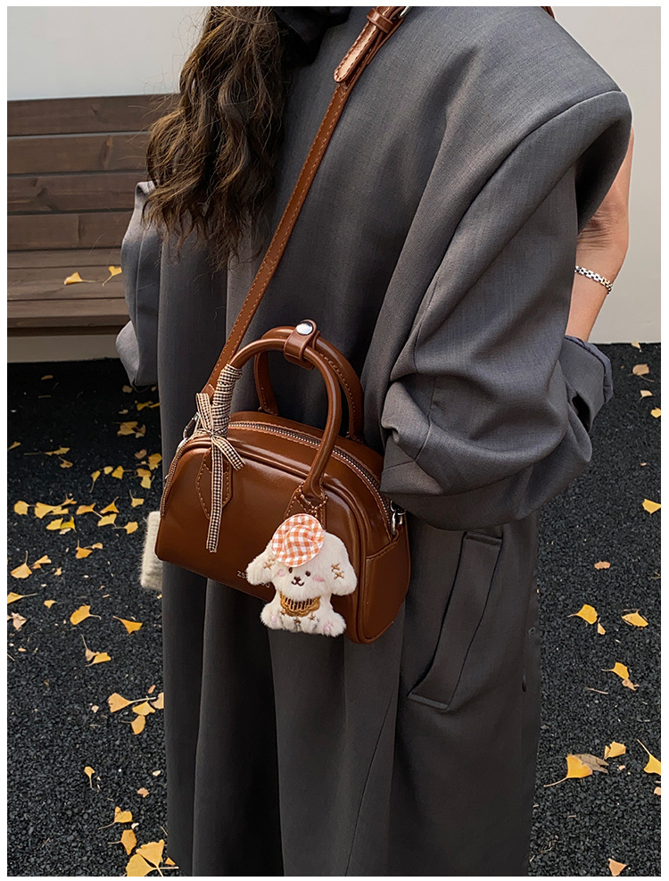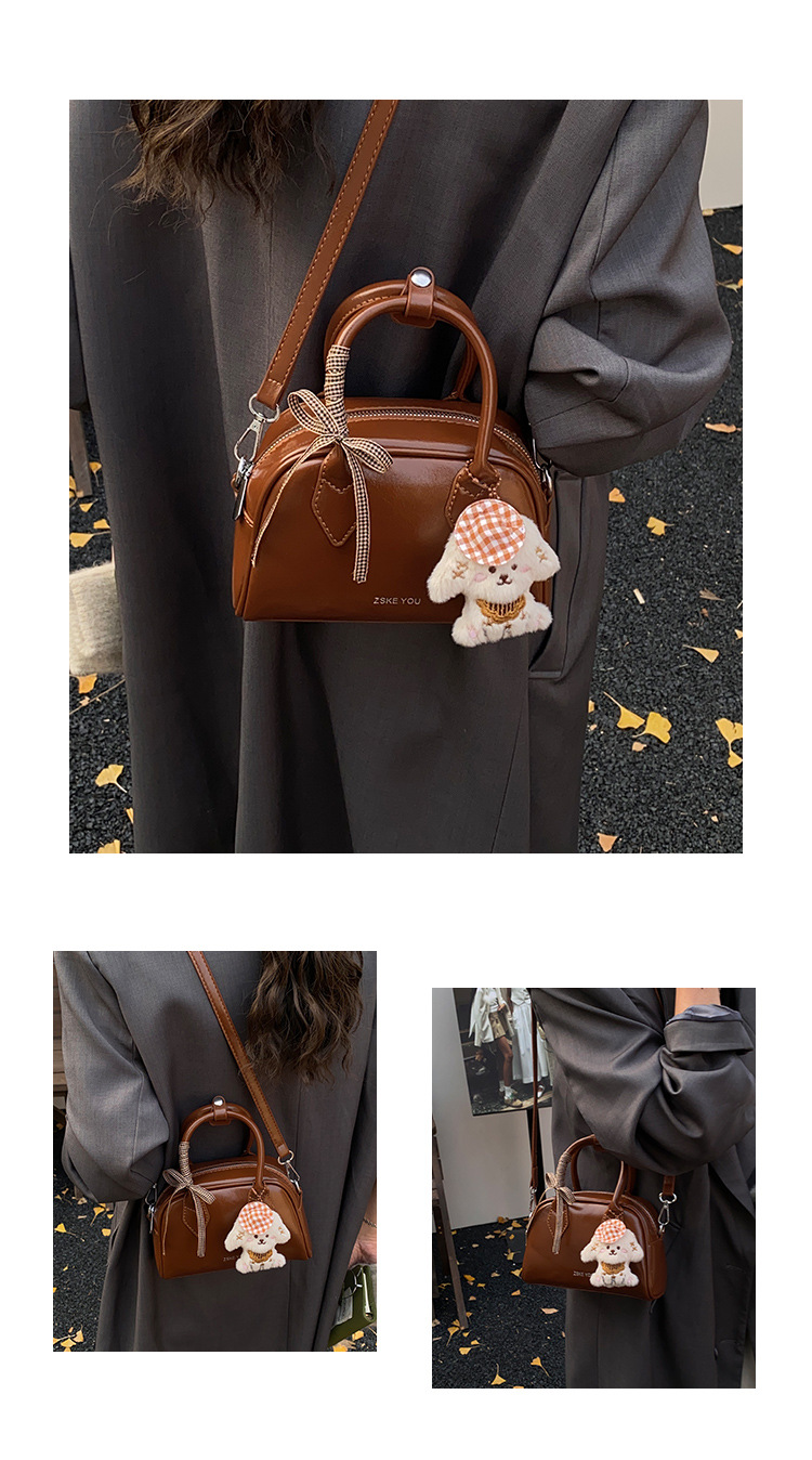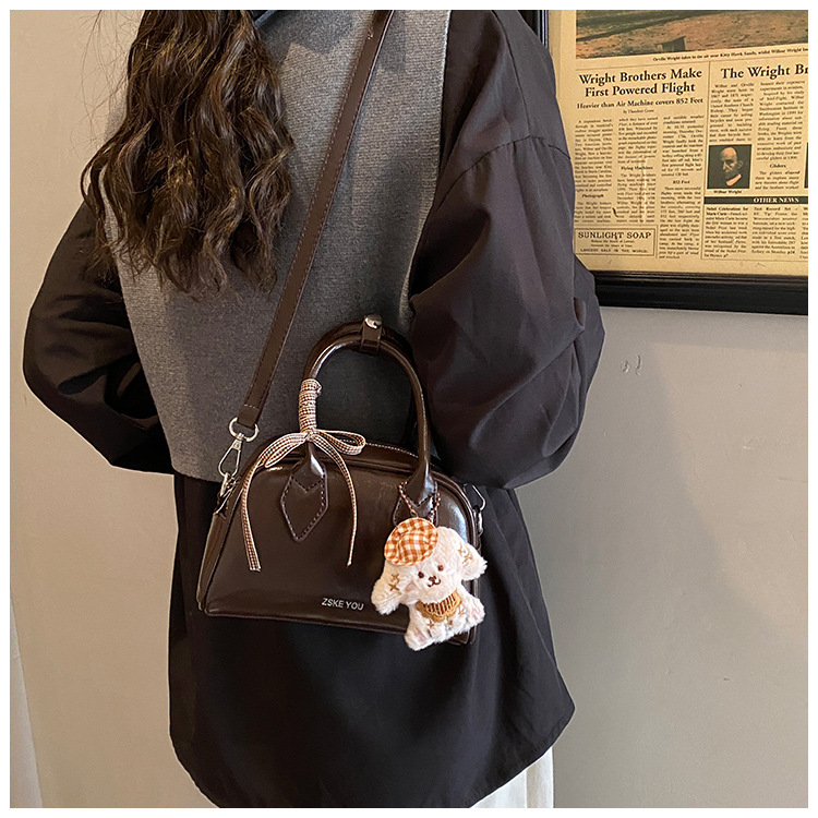 【YW】无忧购高级感油蜡皮小包包女百搭斜挎包百搭手提保龄球包(截单后5-7天发货)