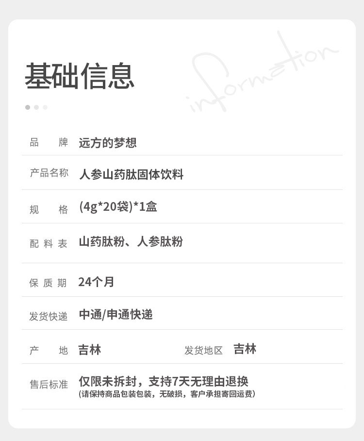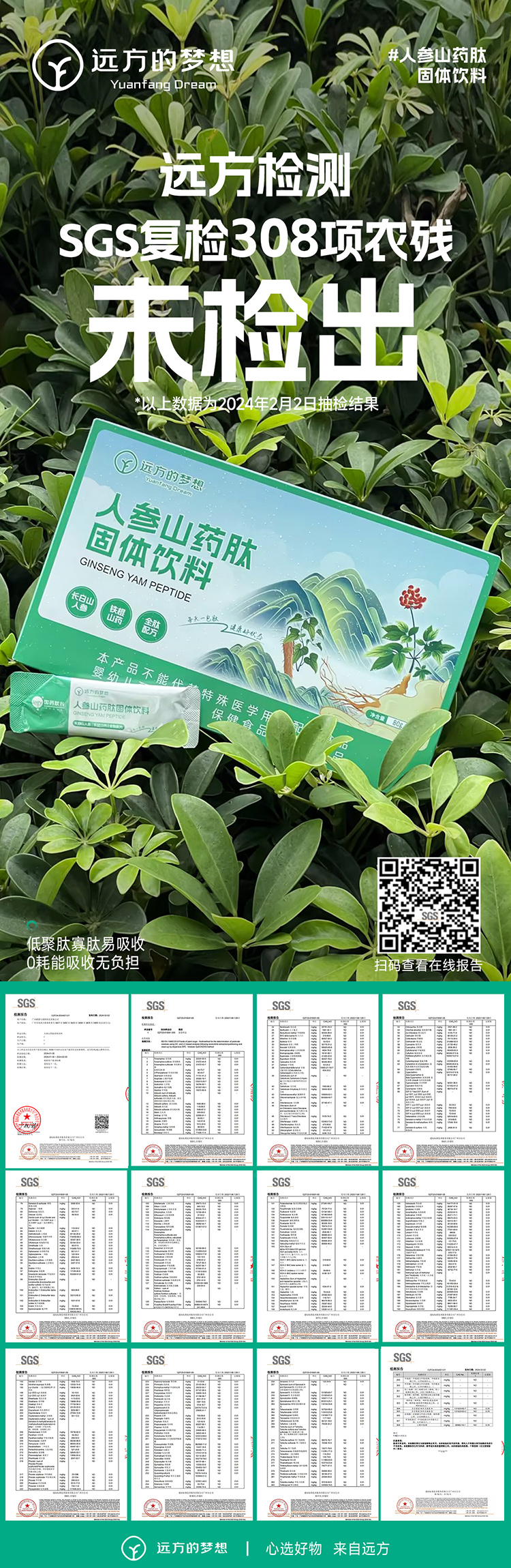 【检测308项农残未检出人参山药肽】小分子低聚肽 分子量1000道尔顿以下低聚肽寡肽易吸收 选用国家地理标志产品长白山人参+铁棍山药