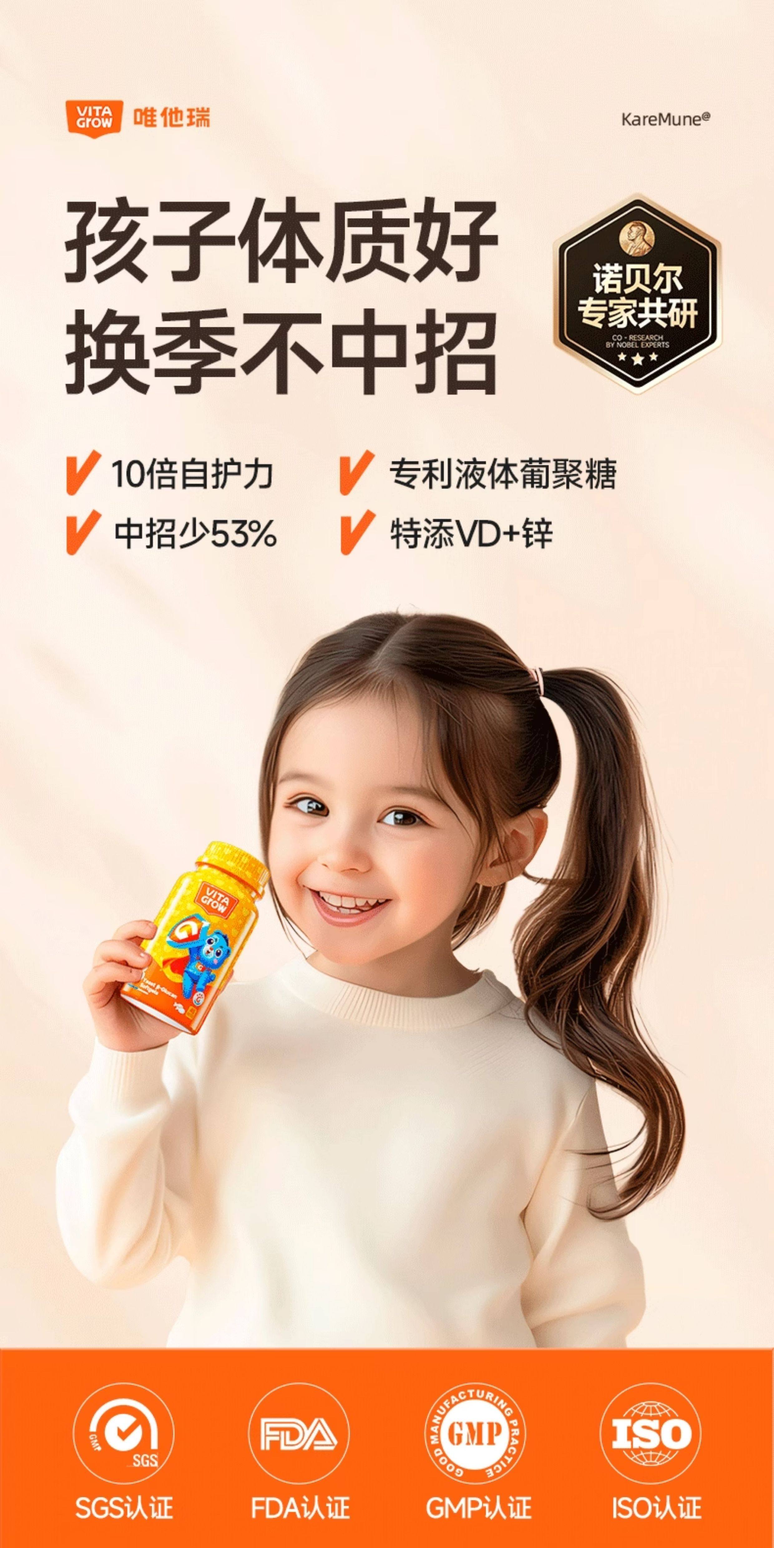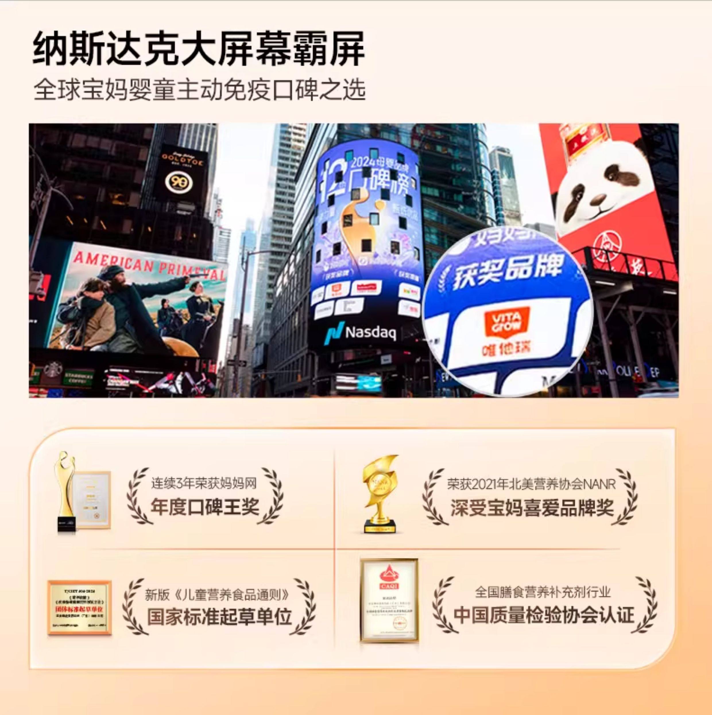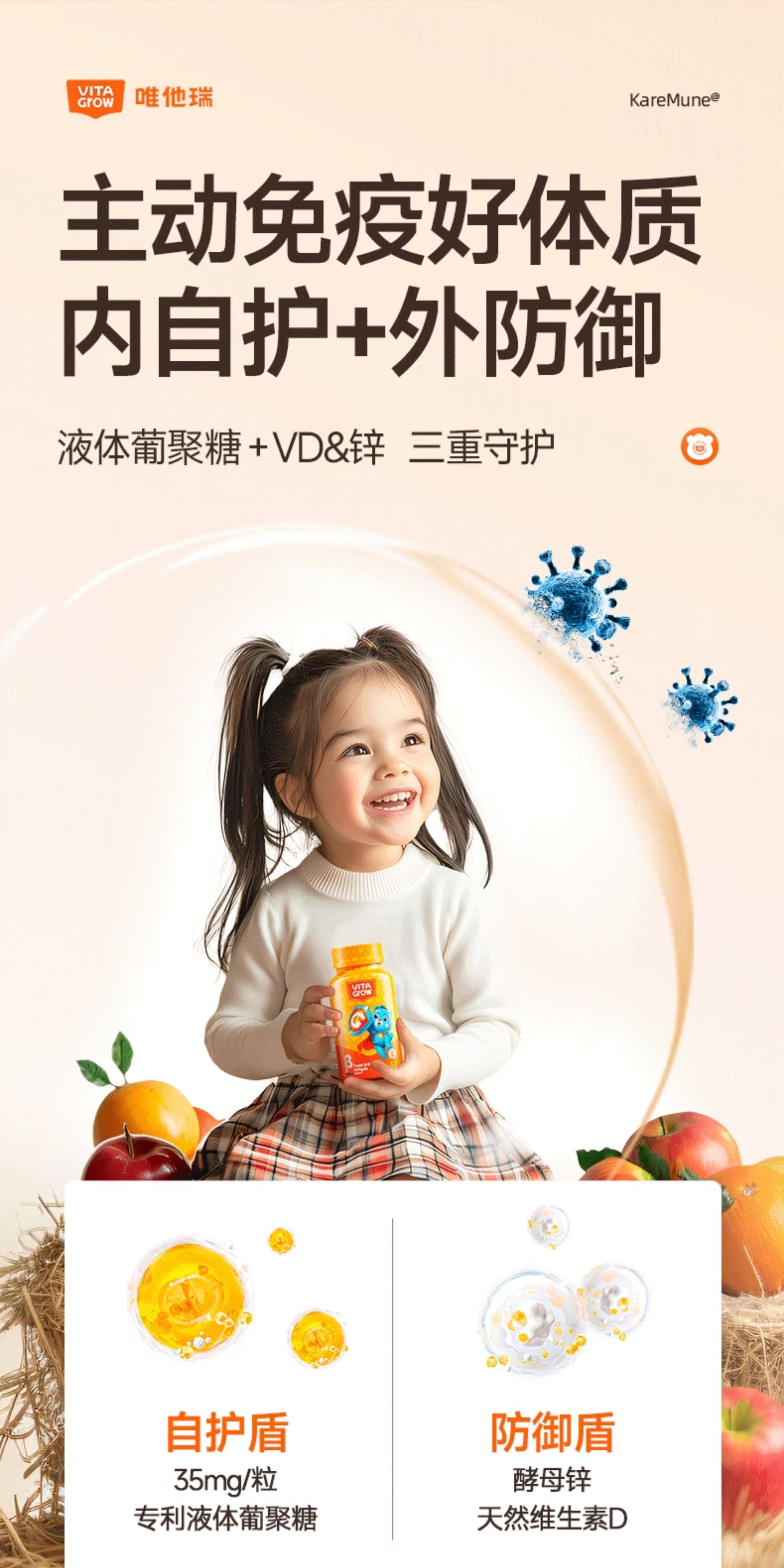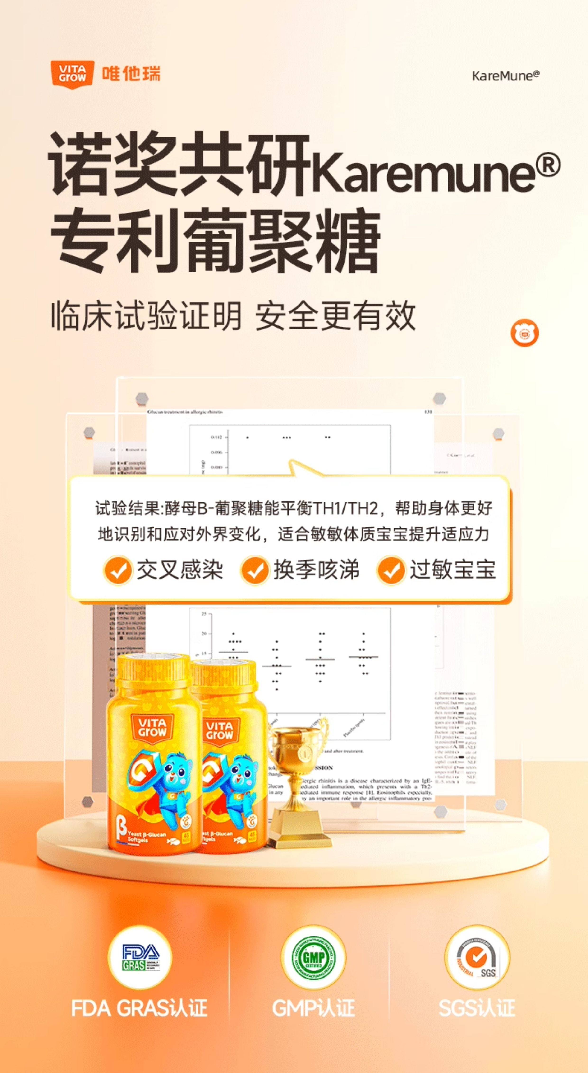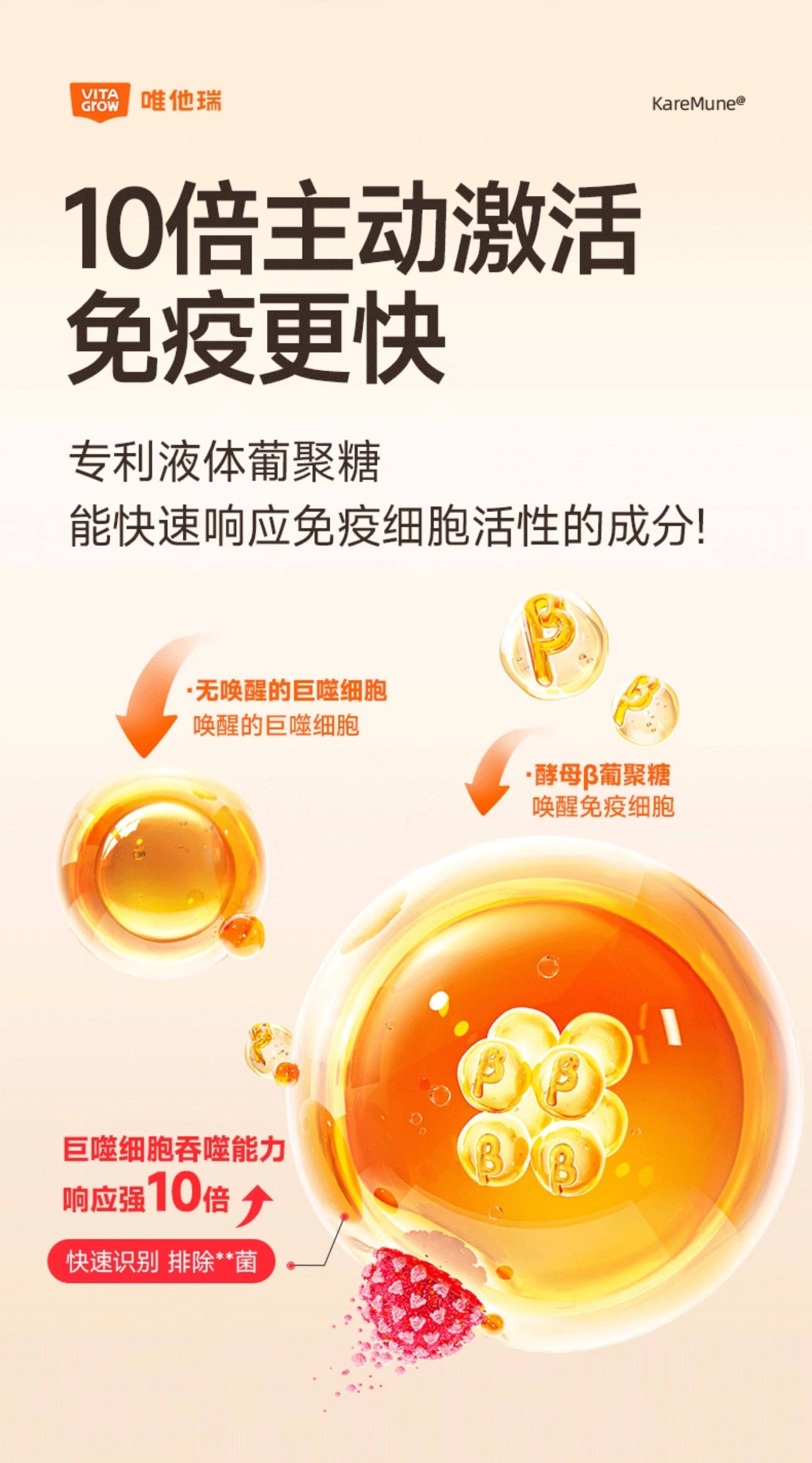 【斑马专属】 VITA Grow 唯他瑞 葡聚糖胶囊 免疫力液体酵母β葡聚糖儿童青少年抵抗力(效期至2027-02-21)