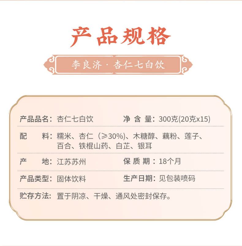 李良济杏仁七白饮300g/盒(20g*15条)